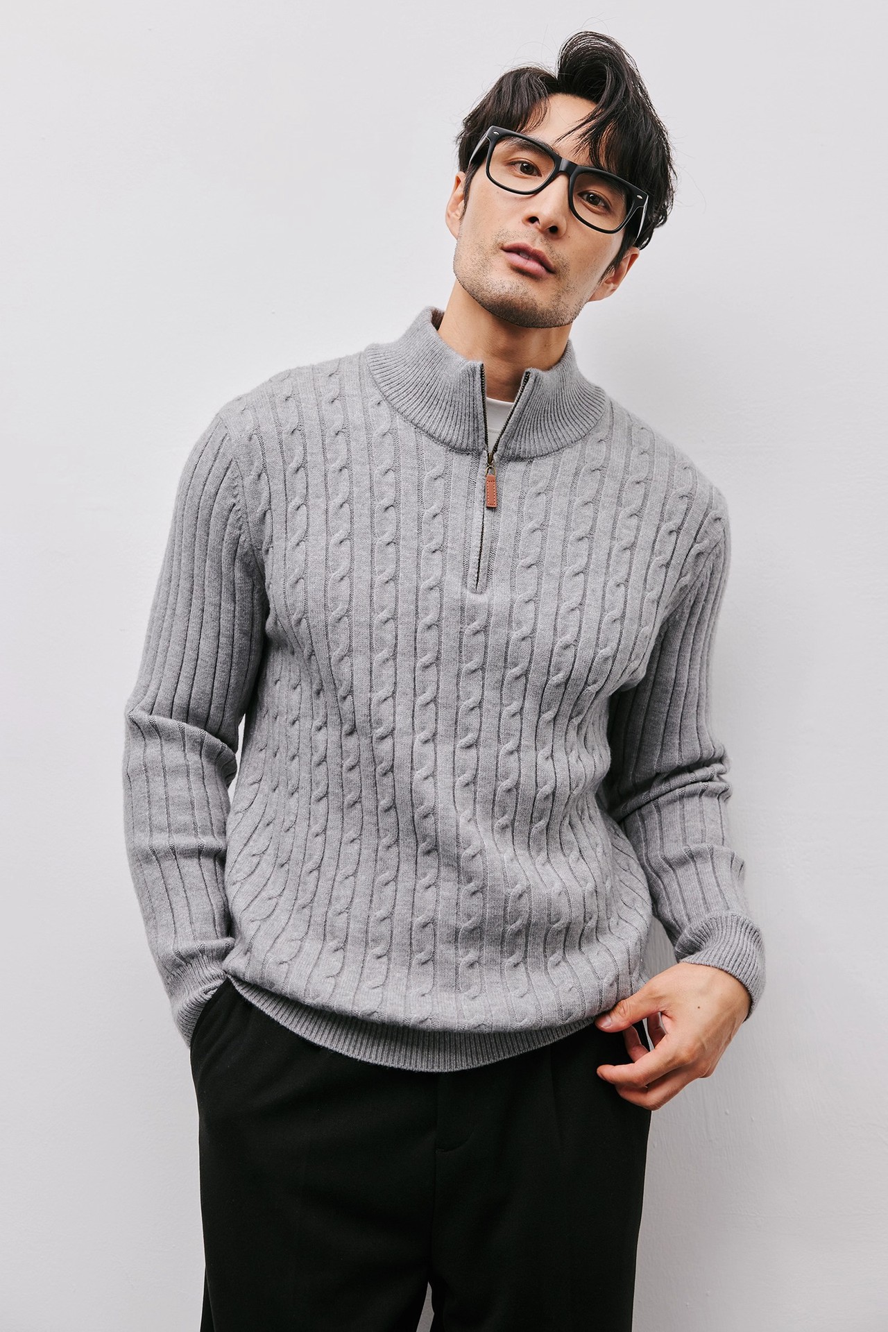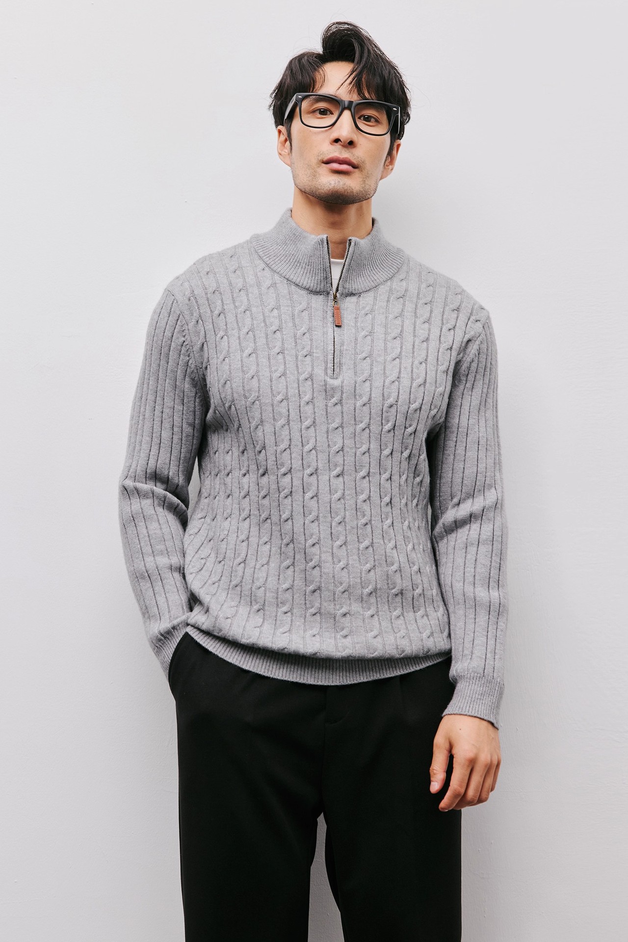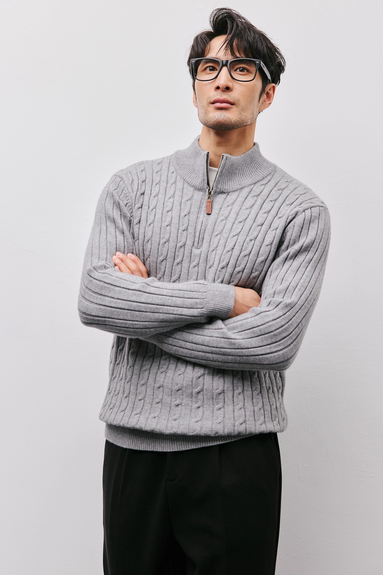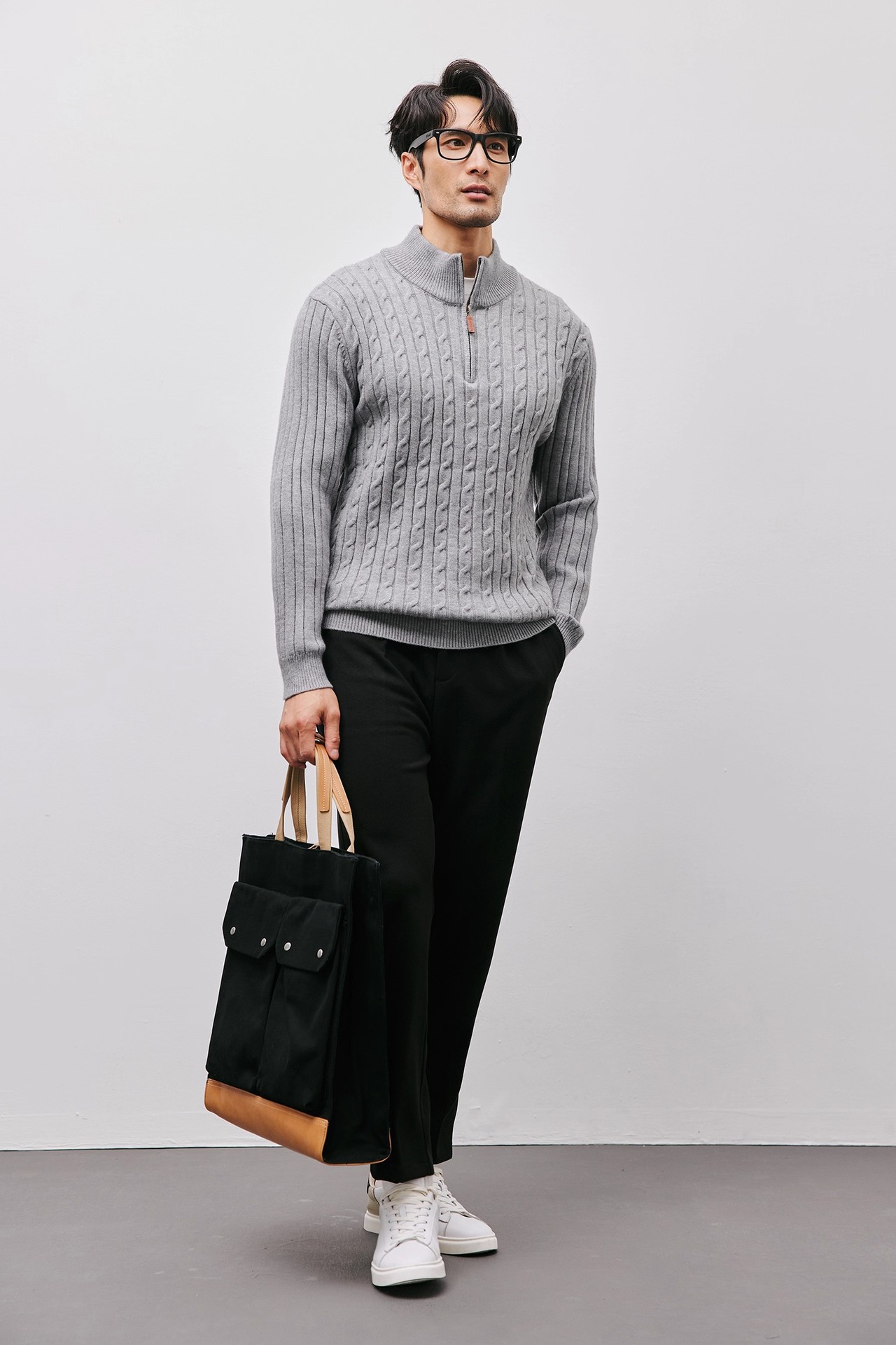 Explosiones transfronterizas de tamaño europeo medio cremallera jersey de hilado suéter hombre viejo viento de negocios otoño invierno fábrica al por mayor