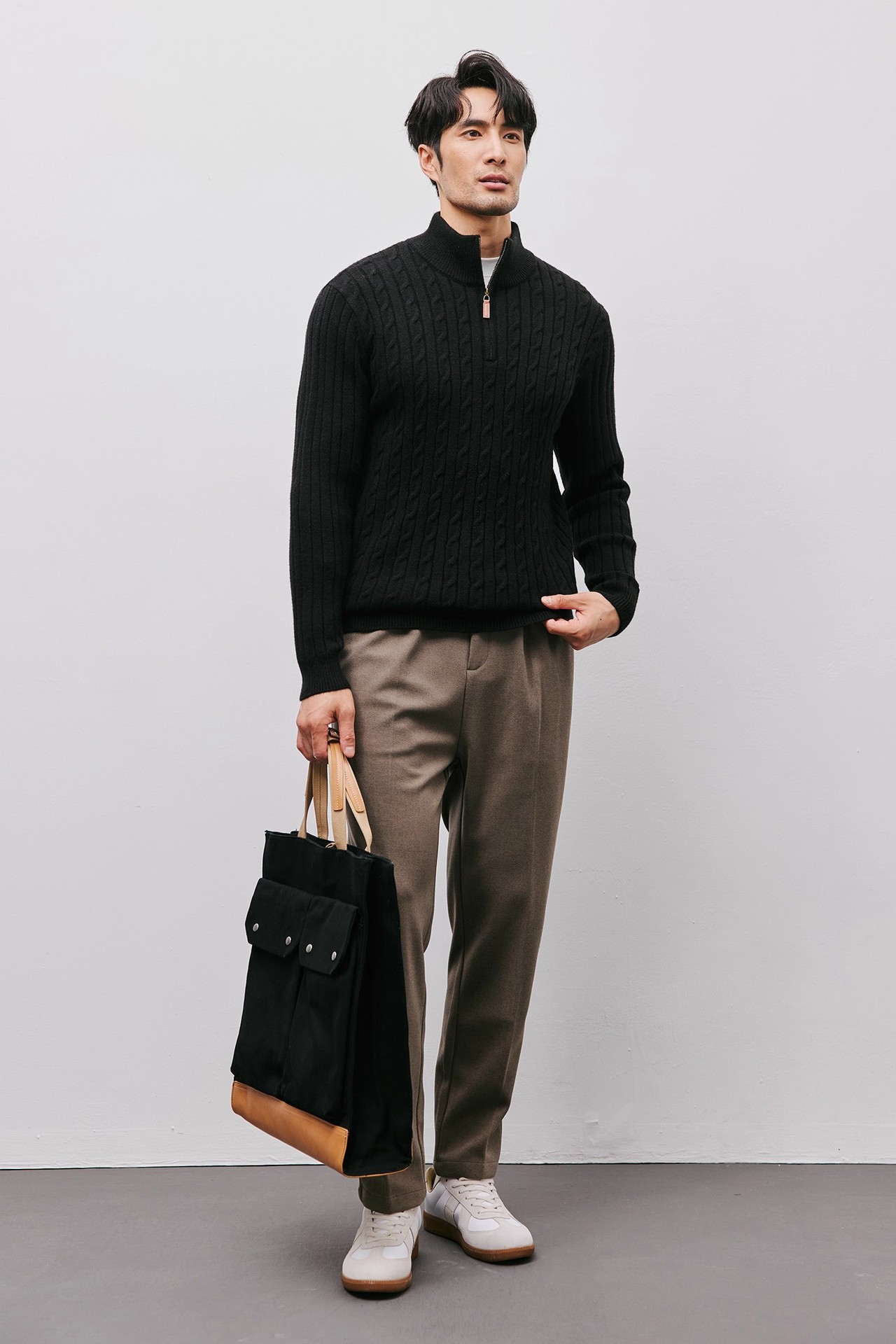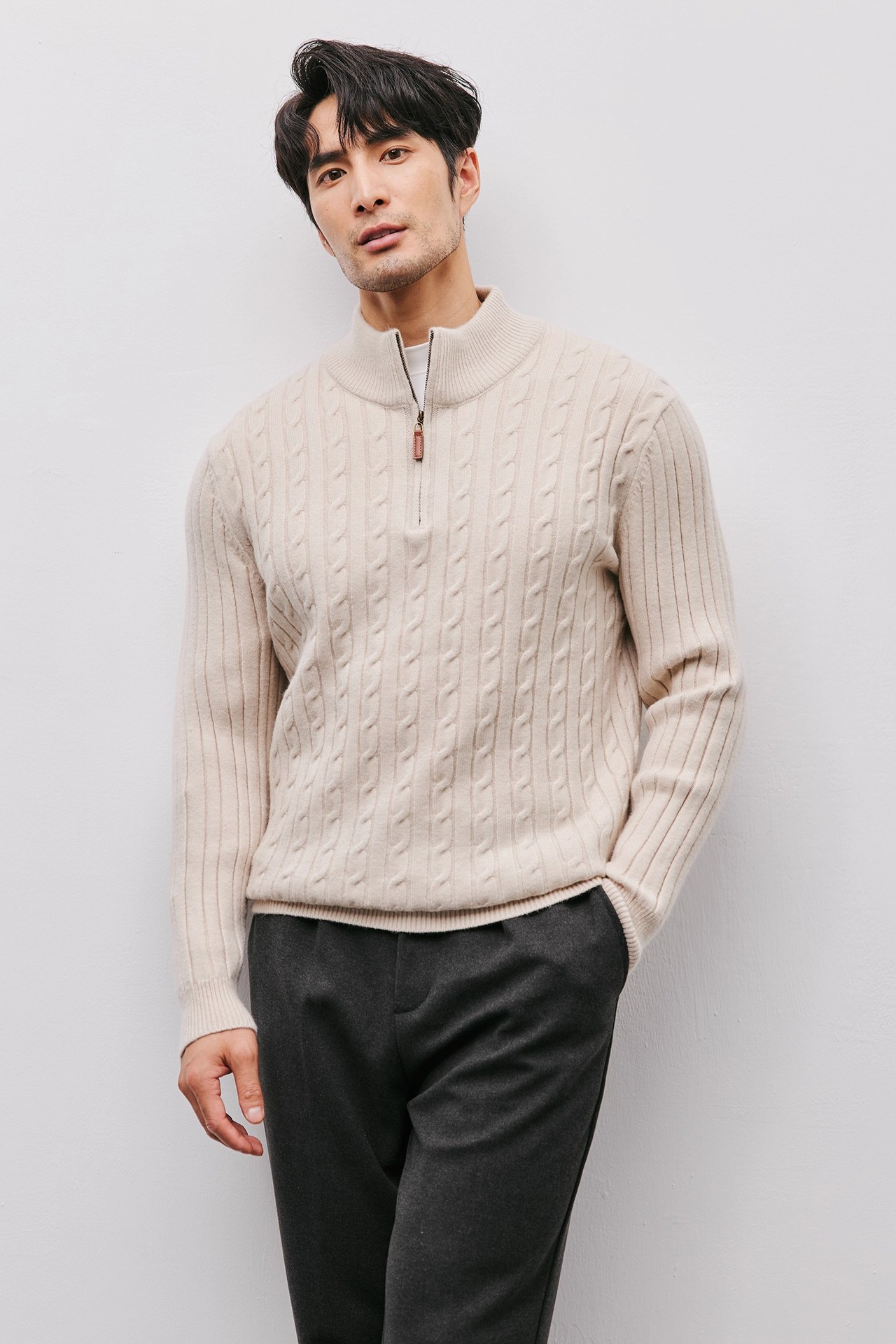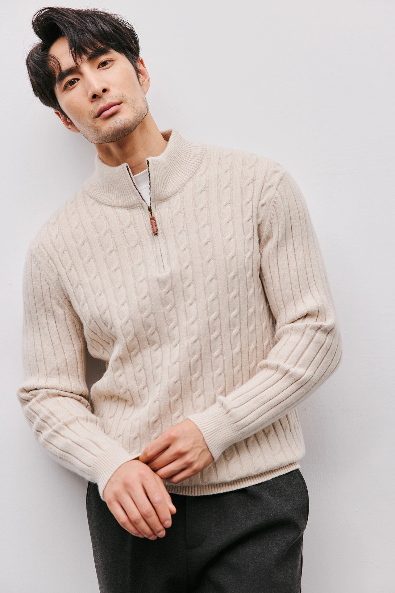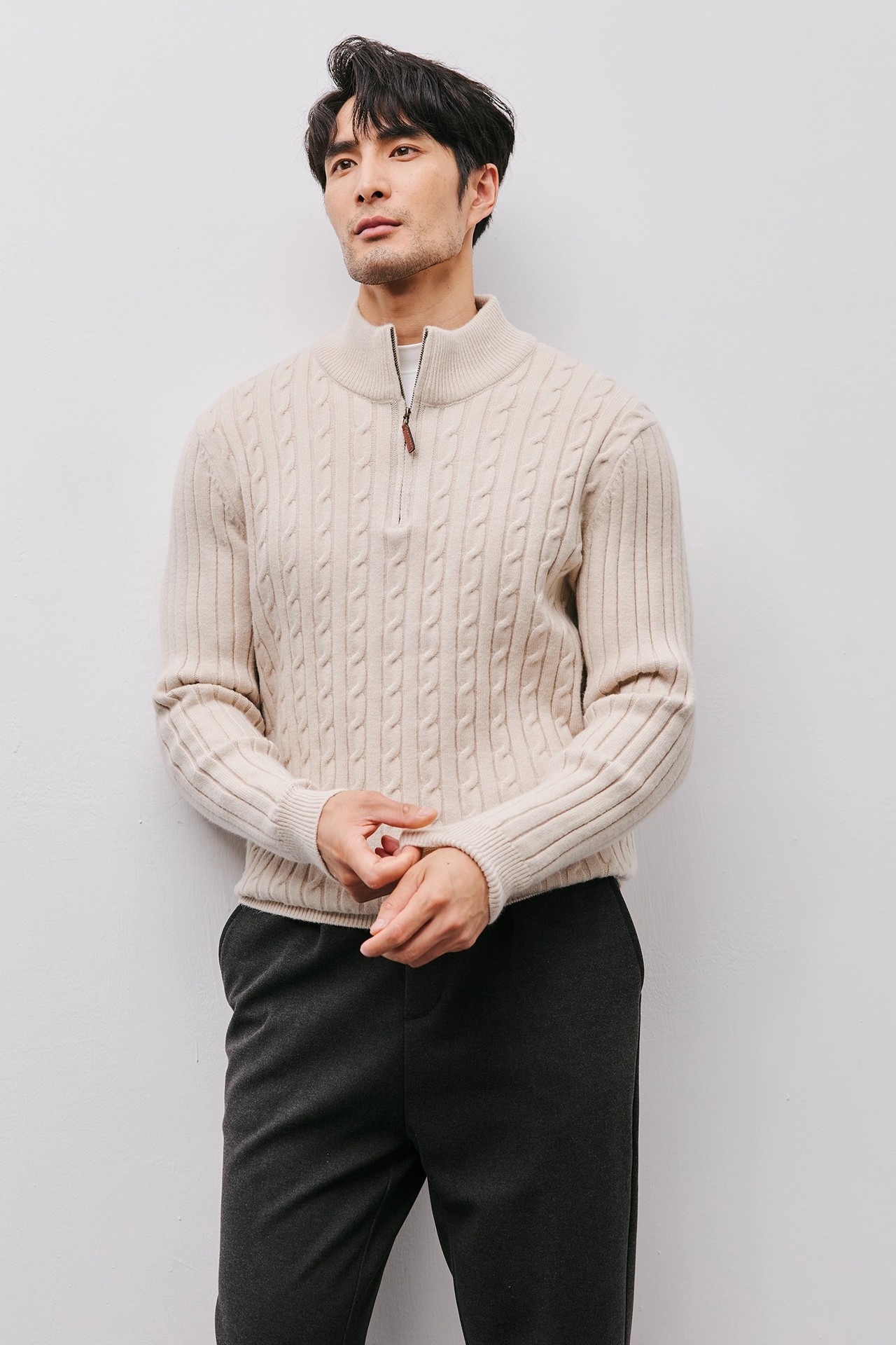 Explosiones transfronterizas de tamaño europeo medio cremallera jersey de hilado suéter hombre viejo viento de negocios otoño invierno fábrica al por mayor