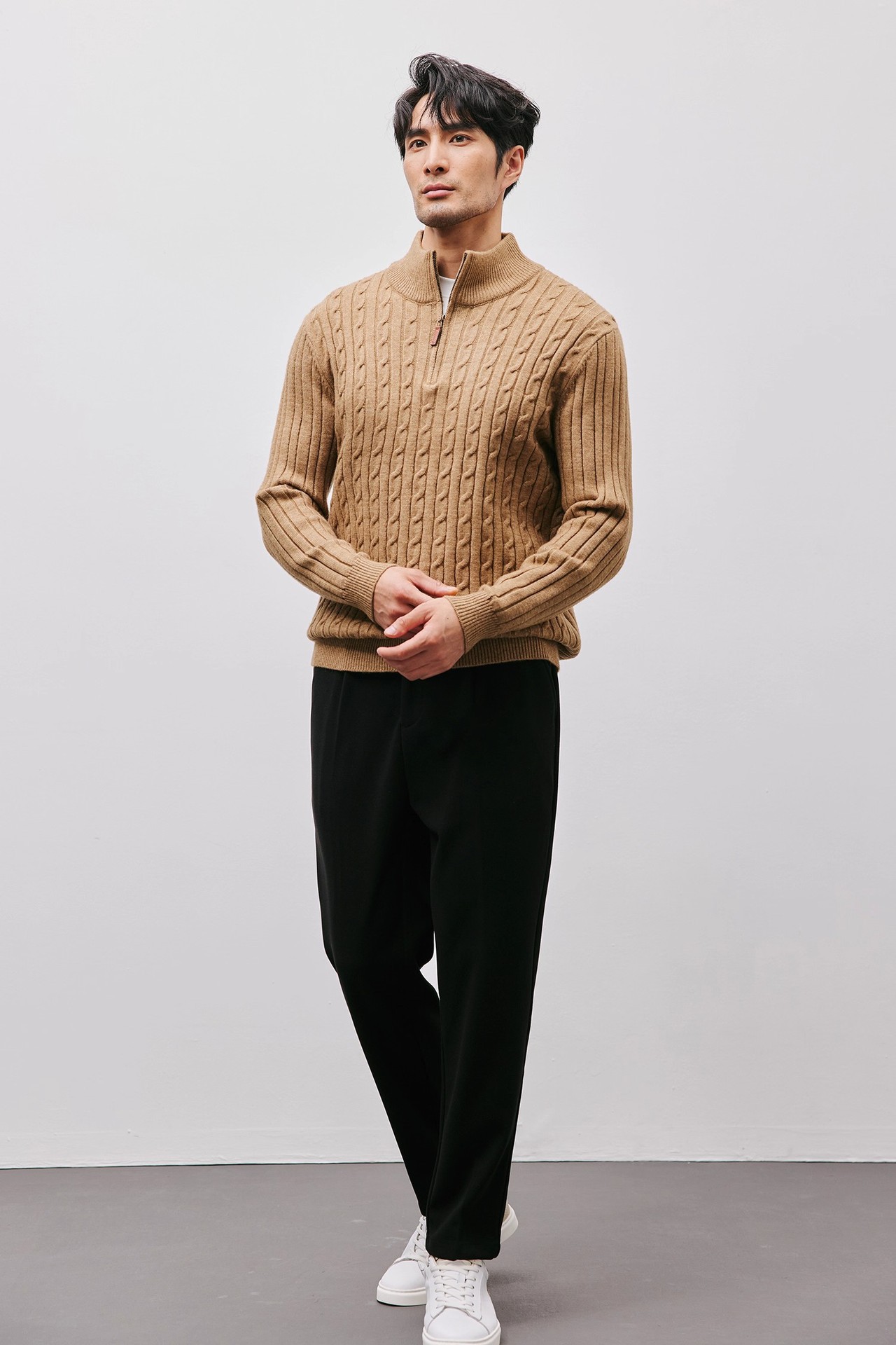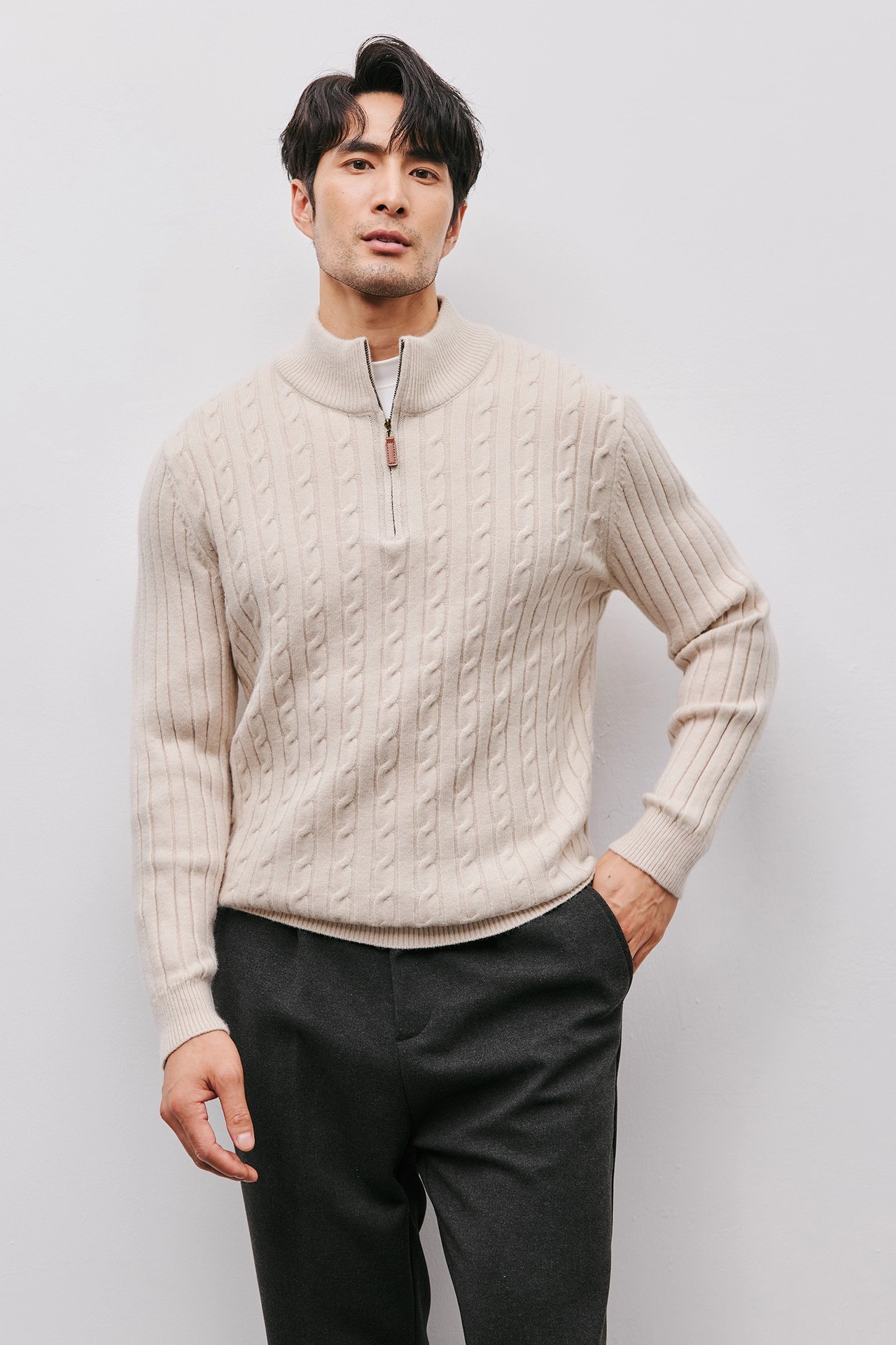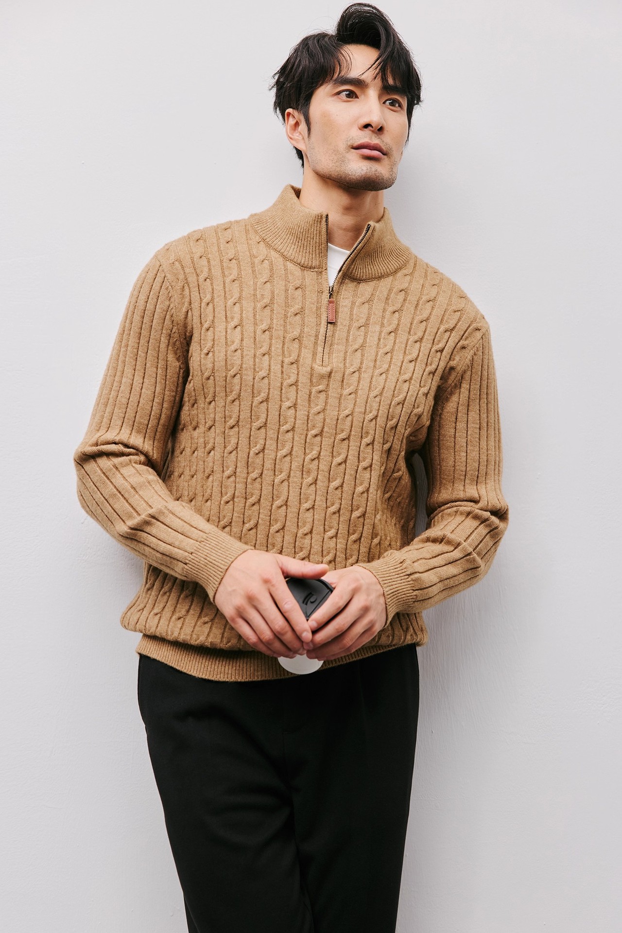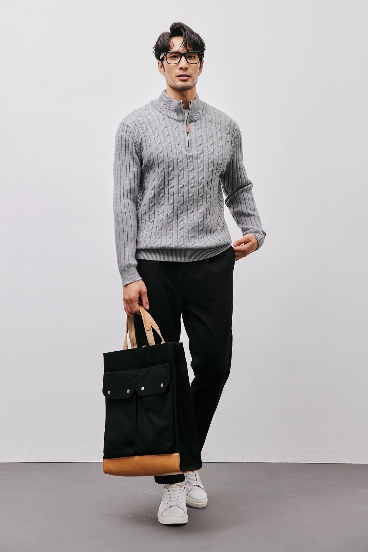 Explosiones transfronterizas de tamaño europeo medio cremallera jersey de hilado suéter hombre viejo viento de negocios otoño invierno fábrica al por mayor