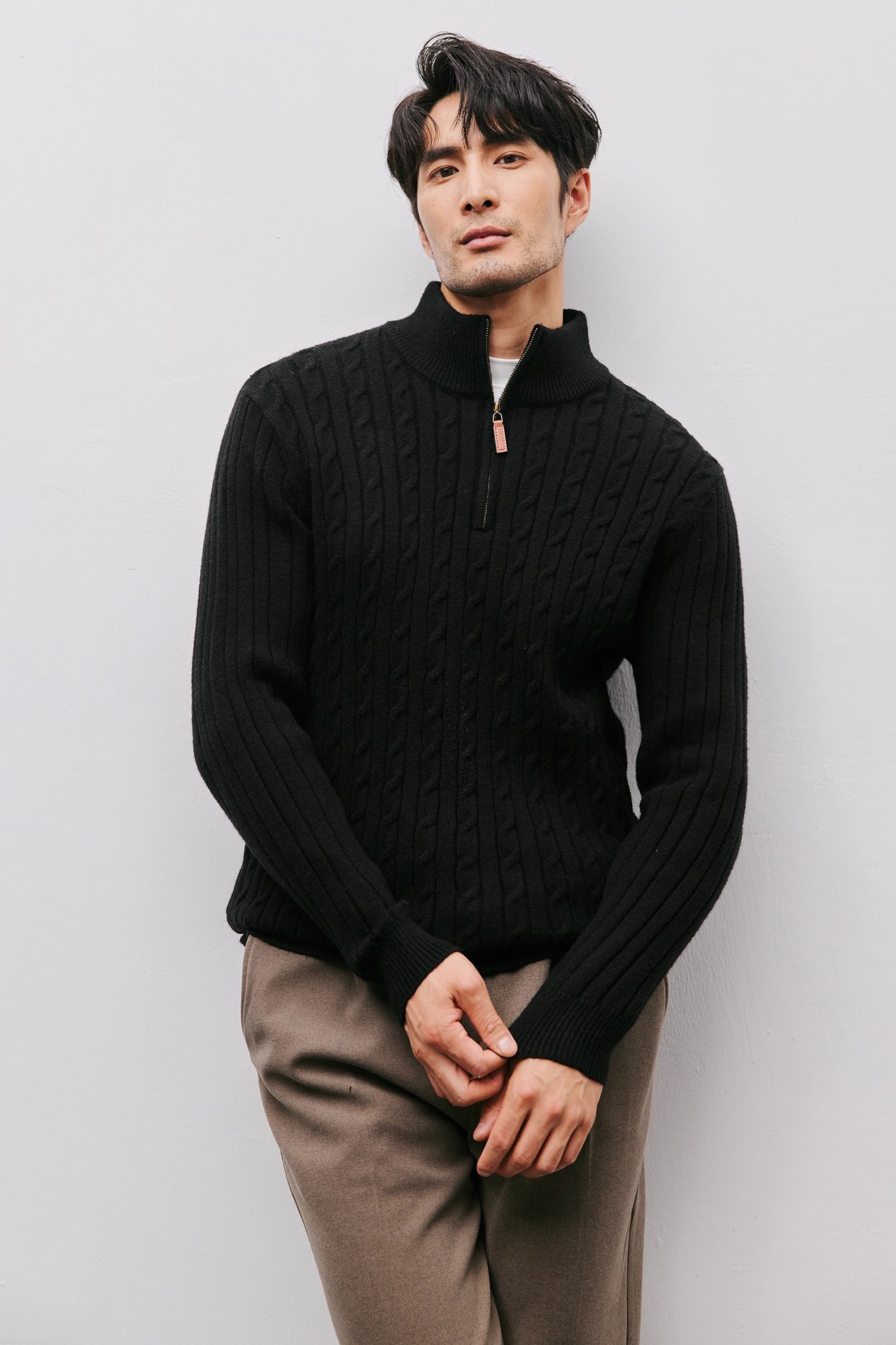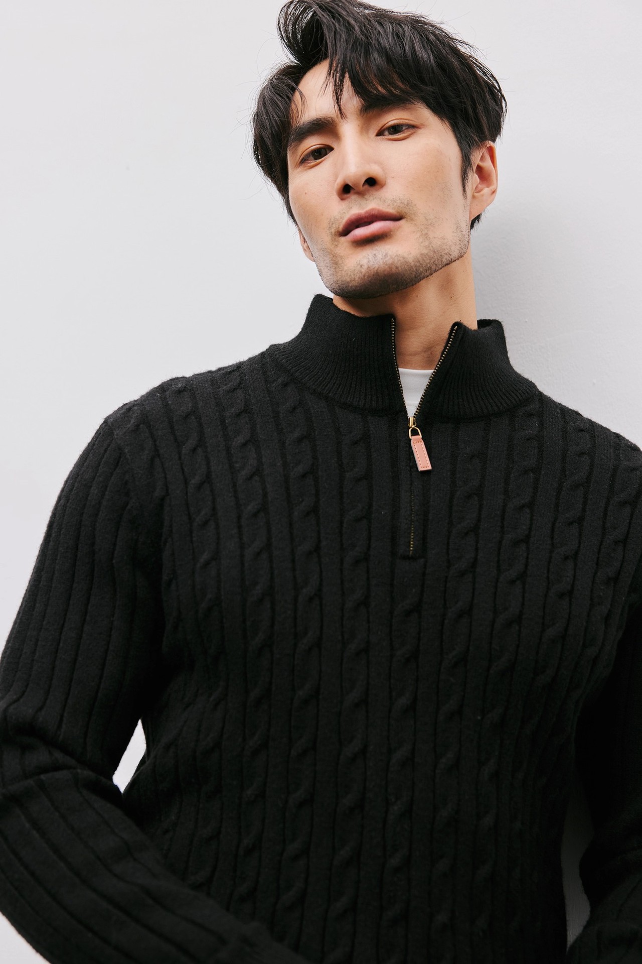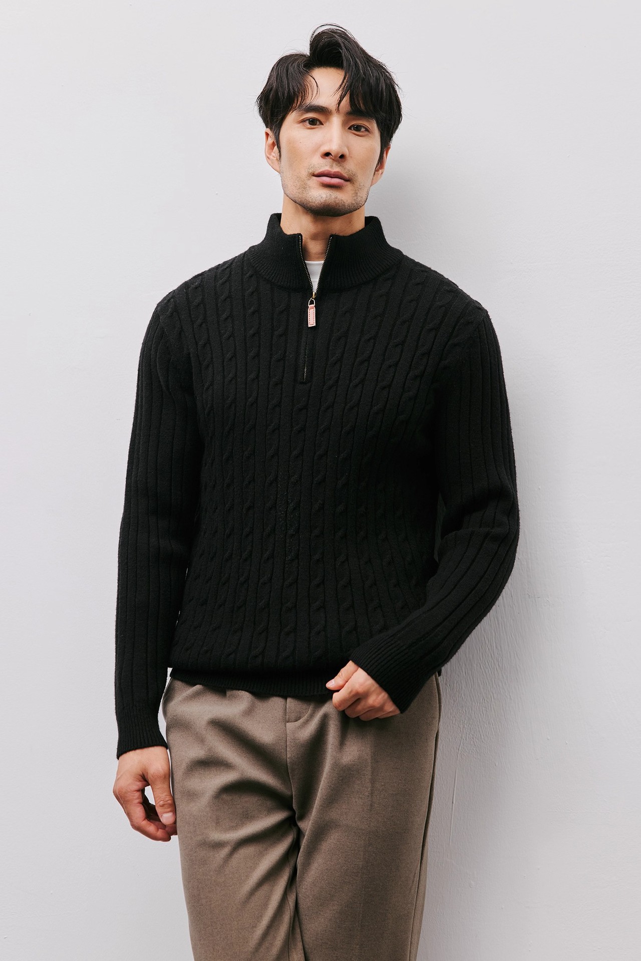 Otoño y invierno, suéter de cuello polo, suéter de invierno negro lavable a máquina, camiseta de punto de fondo de alta calidad