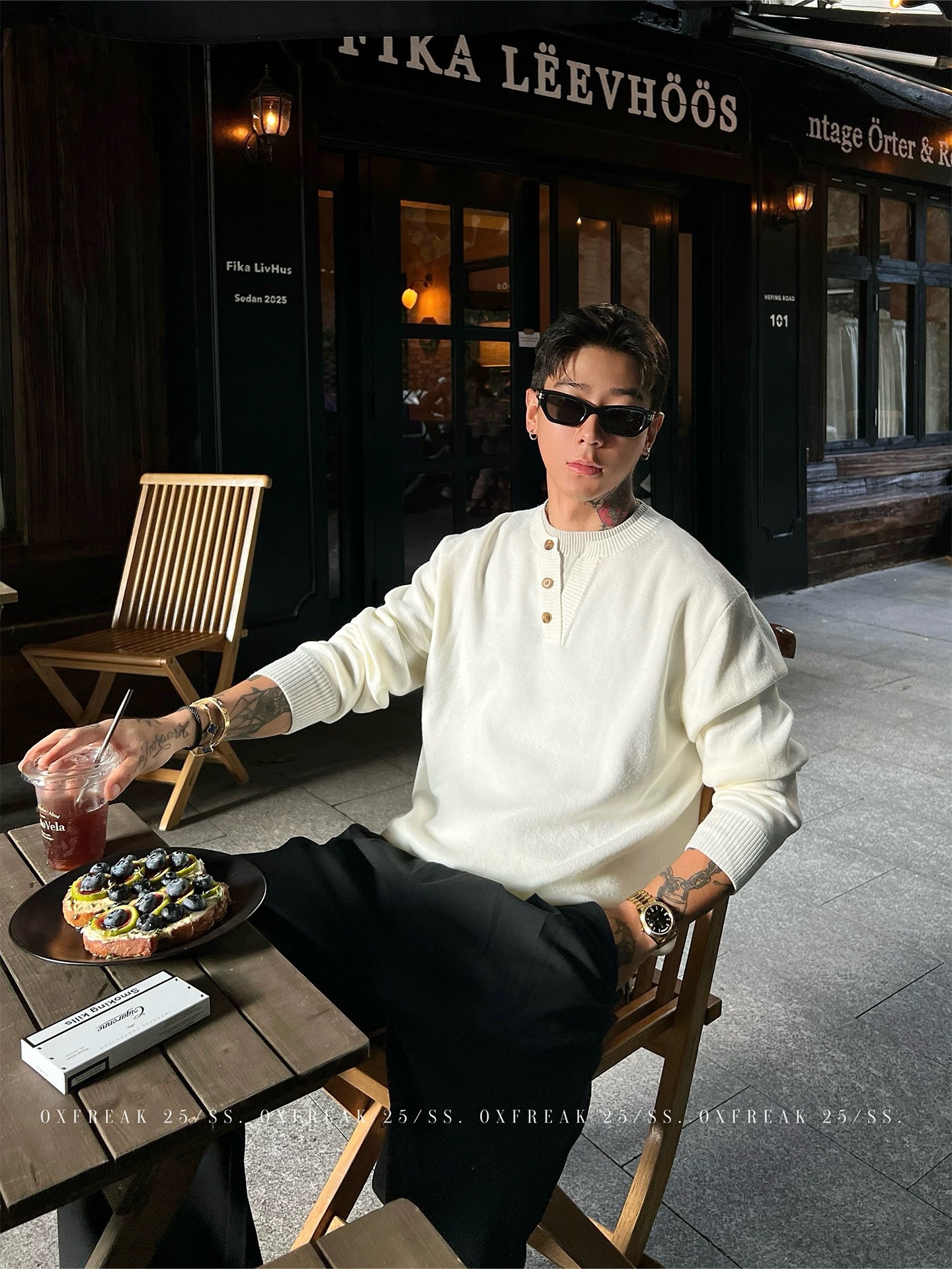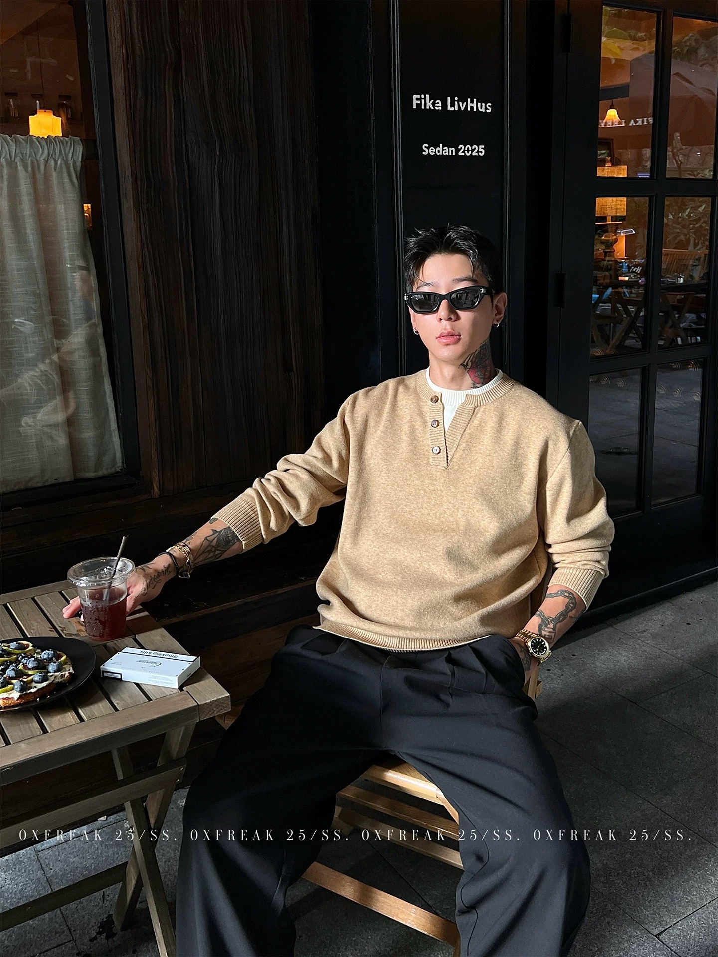 Nuevo suéter vintage japonés para hombres y mujeres otoño ins estilo perezoso bf retro suéter de botón ceroso suave