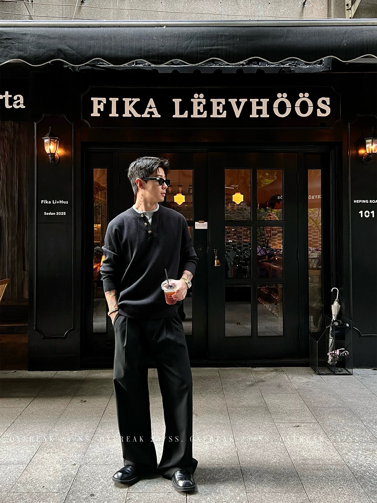 Otoño y invierno suéter de hombre cuello redondo overhead bottom suéter de lana sluggish wind sweater hombre camisa de punto de moda