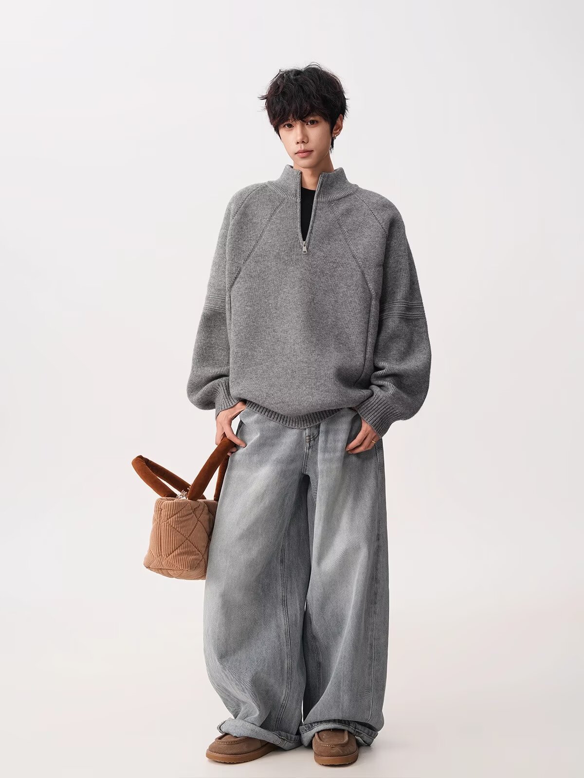 | Color | Gris [media cremallera], negro [media cremallera], gris [cuello redondo], negro [cuello redondo], albaricoque [cuello redondo], gris [cardigan], negro [cardigan] |