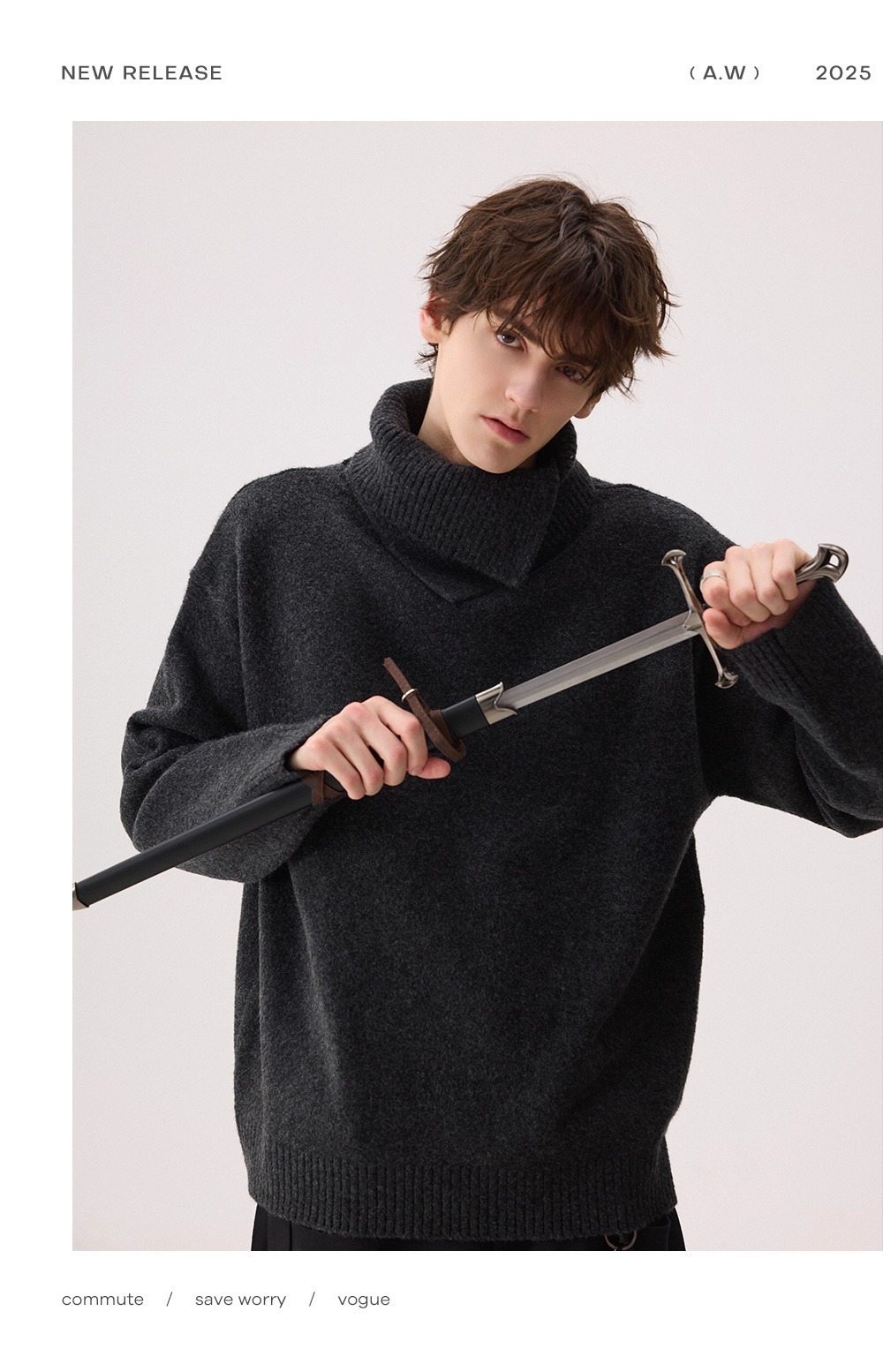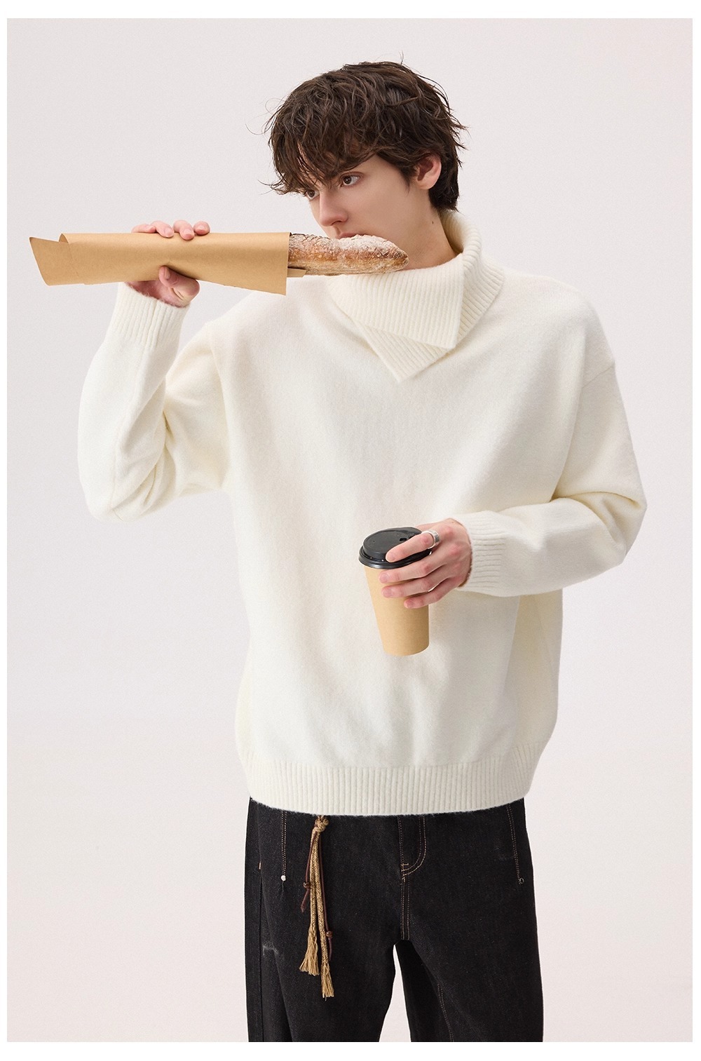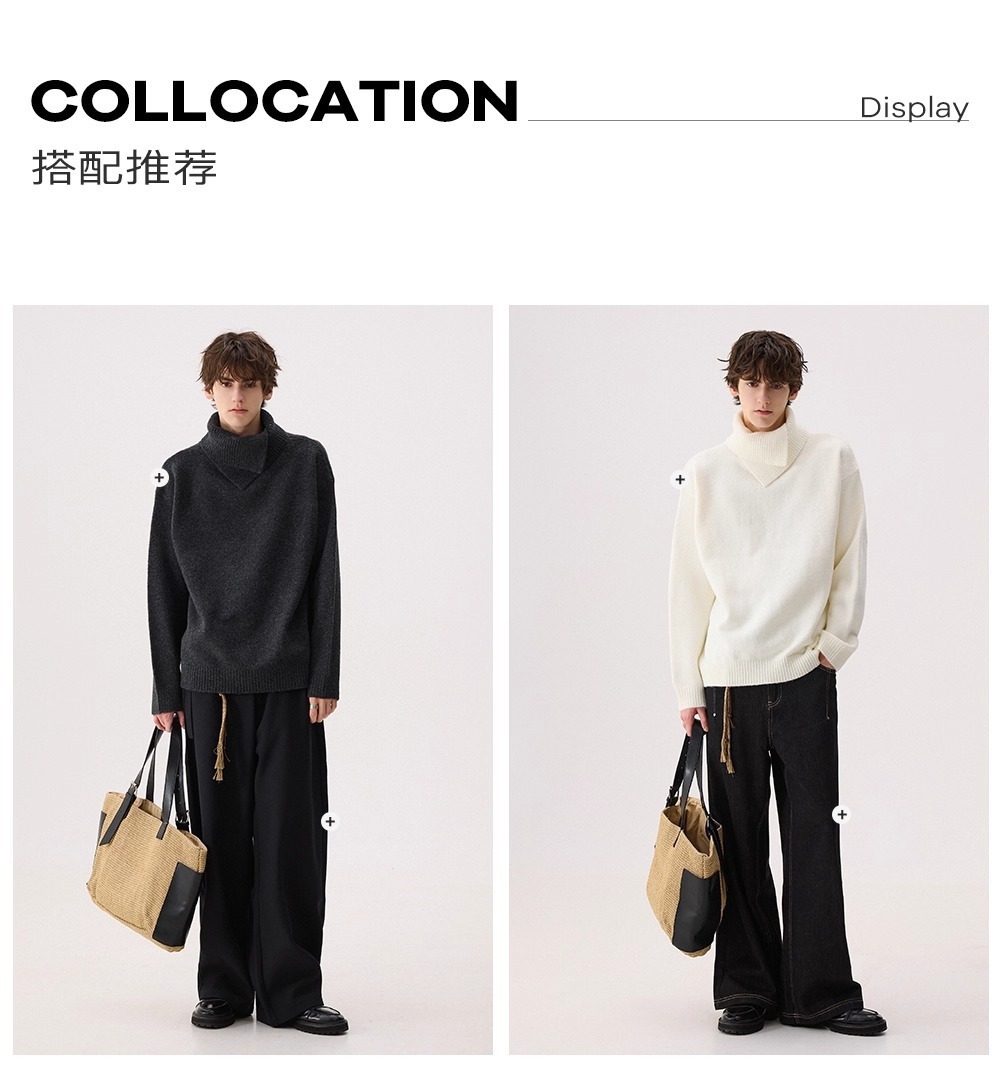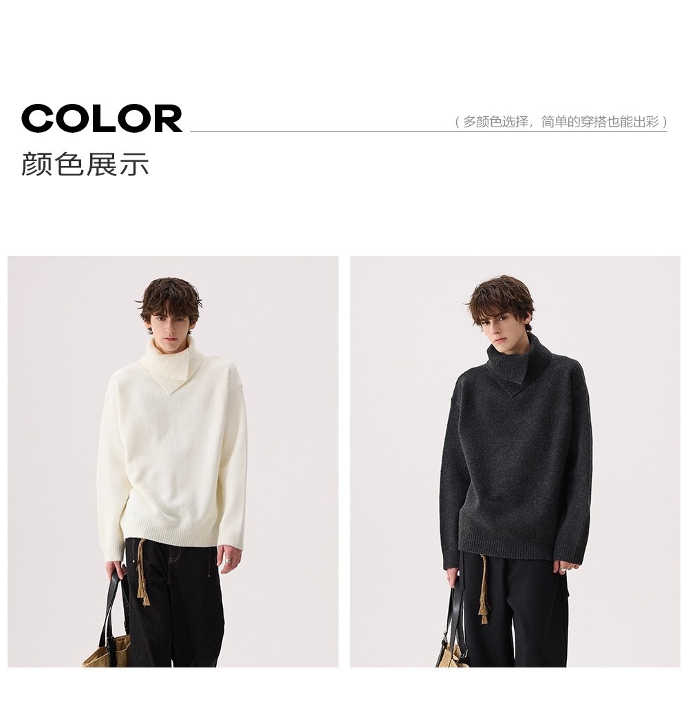 Explosiones transfronterizas de tamaño europeo de tamaño grande forma de doble cuello de jersey de punto suéter hombre perezoso otoño invierno fábrica al por mayor