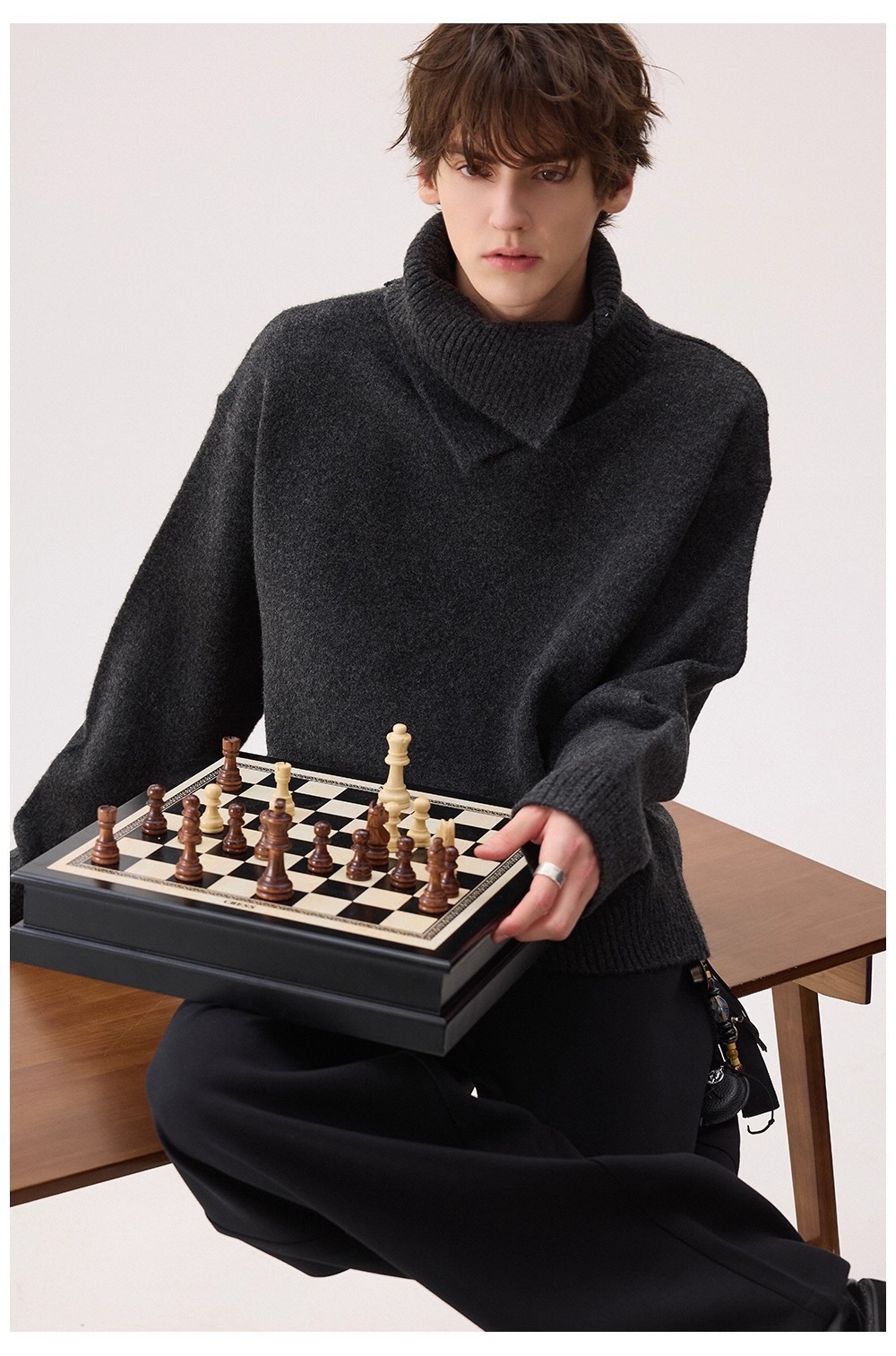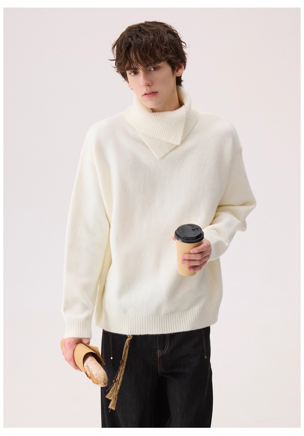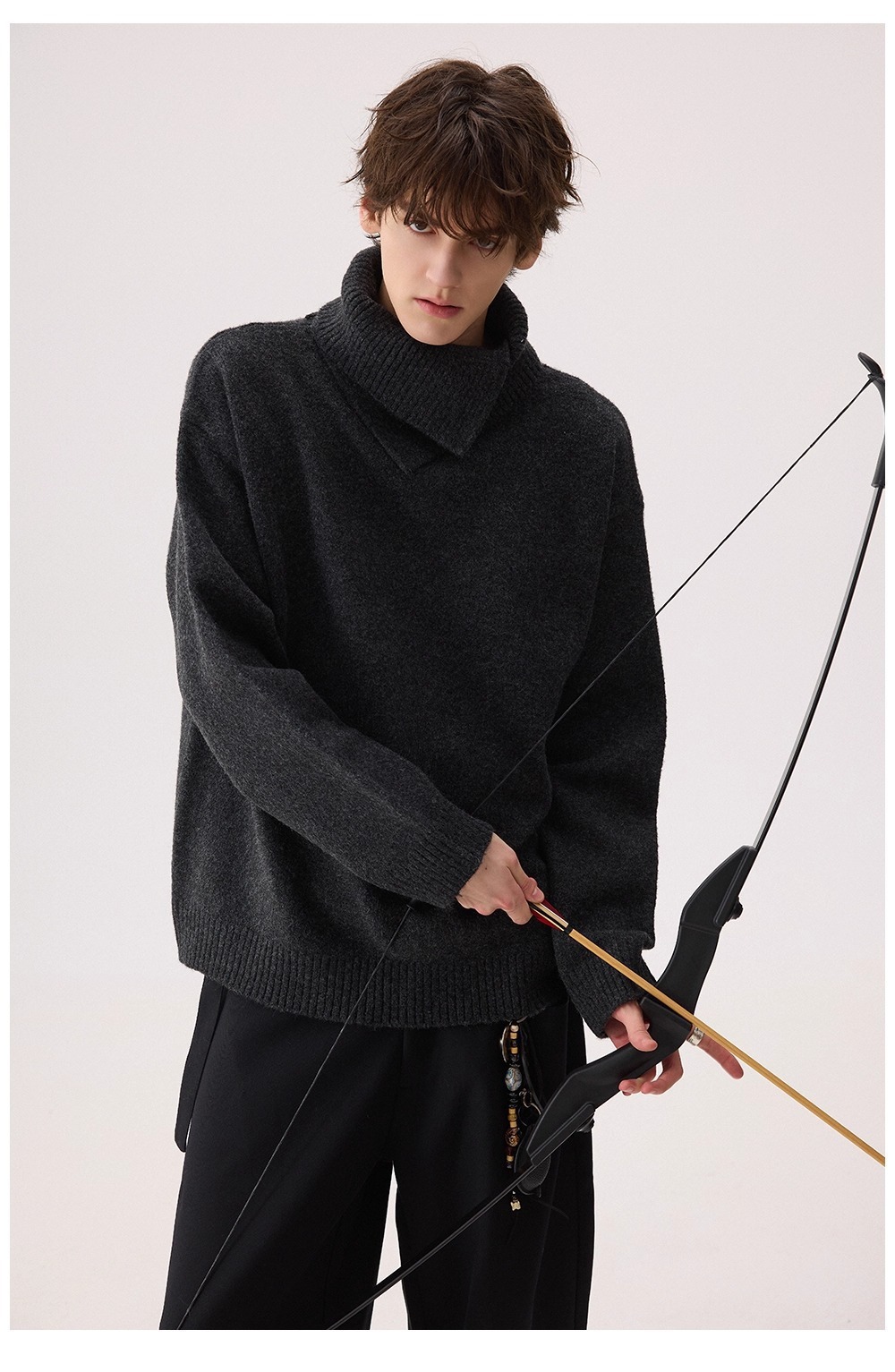 Explosiones transfronterizas de tamaño europeo de tamaño grande forma de doble cuello de jersey de punto suéter hombre perezoso otoño invierno fábrica al por mayor