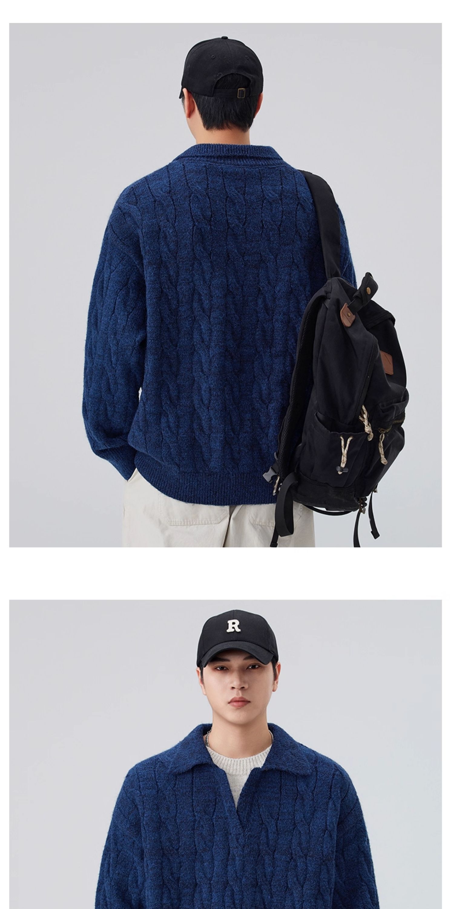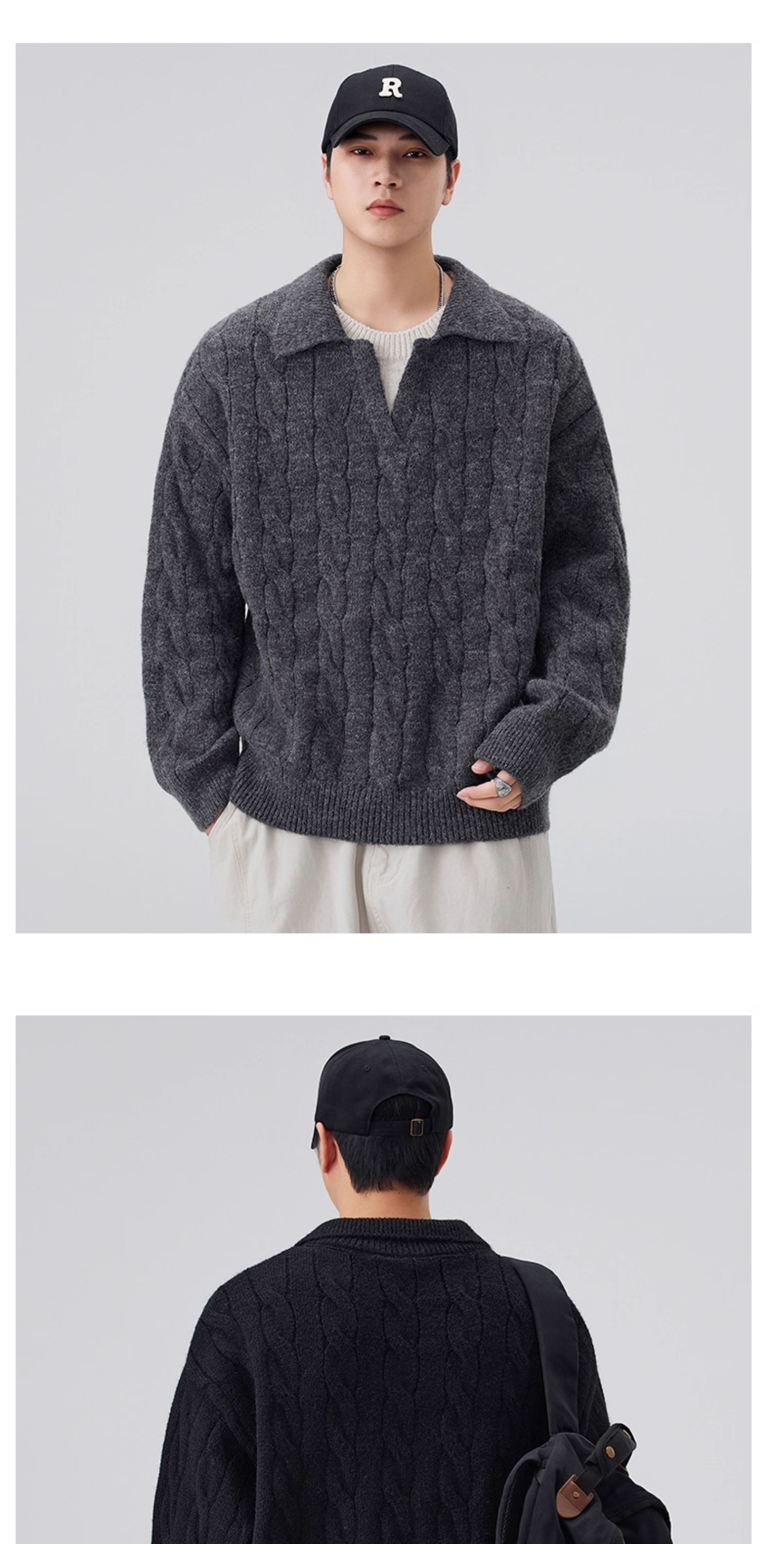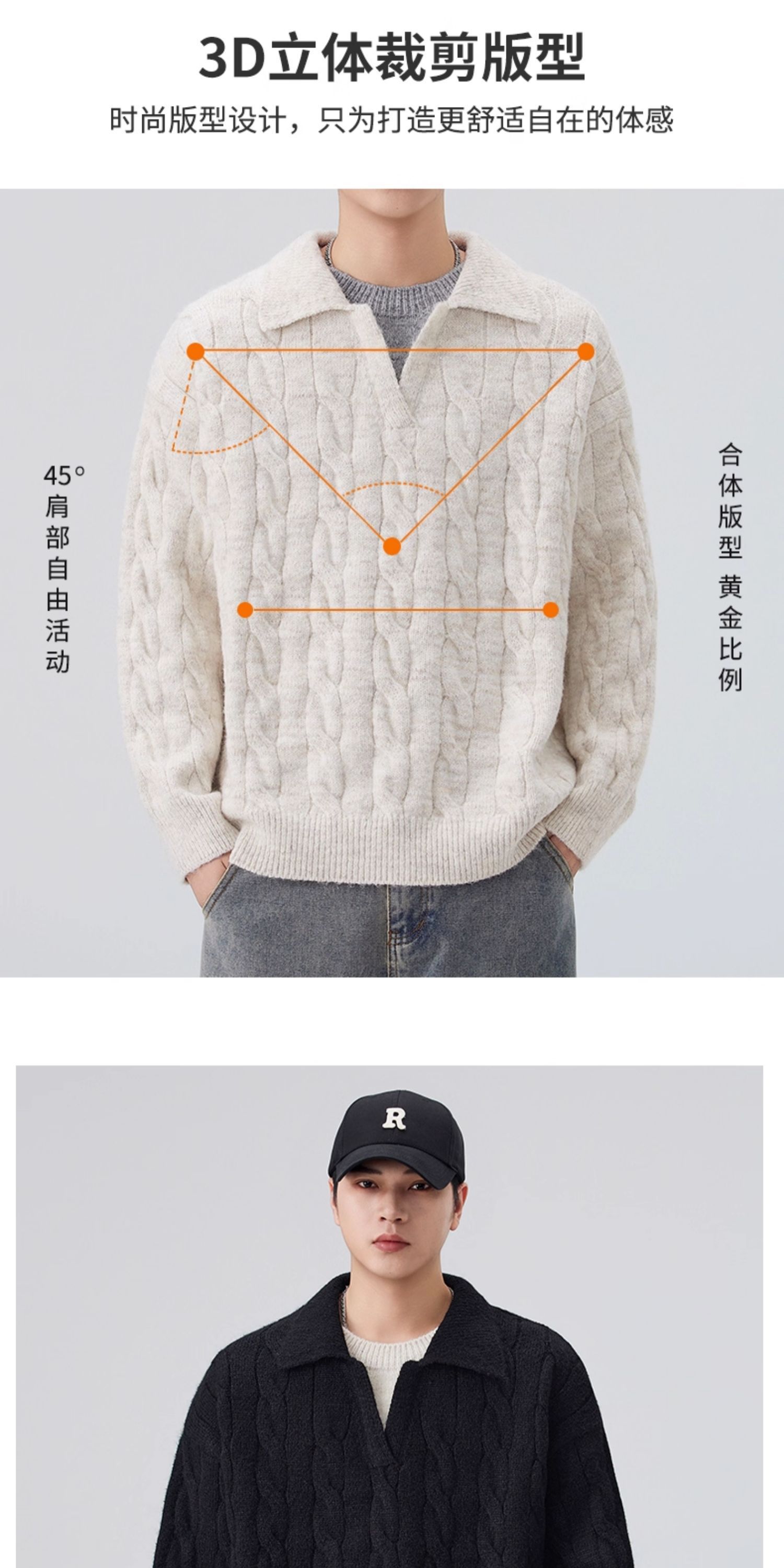 Otoño y invierno de moda masculina casual overhead suéter de punto nuevo con solapa suelta comercio exterior masculino suéter cálido