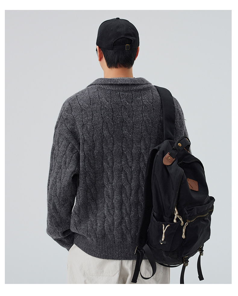 Explosiones transfronterizas de tamaño europeo de diseño de turbillo de tamaño grande sensación de camisa de punto suéter masculino botón de alta sensación otoño invierno fábrica al por mayor