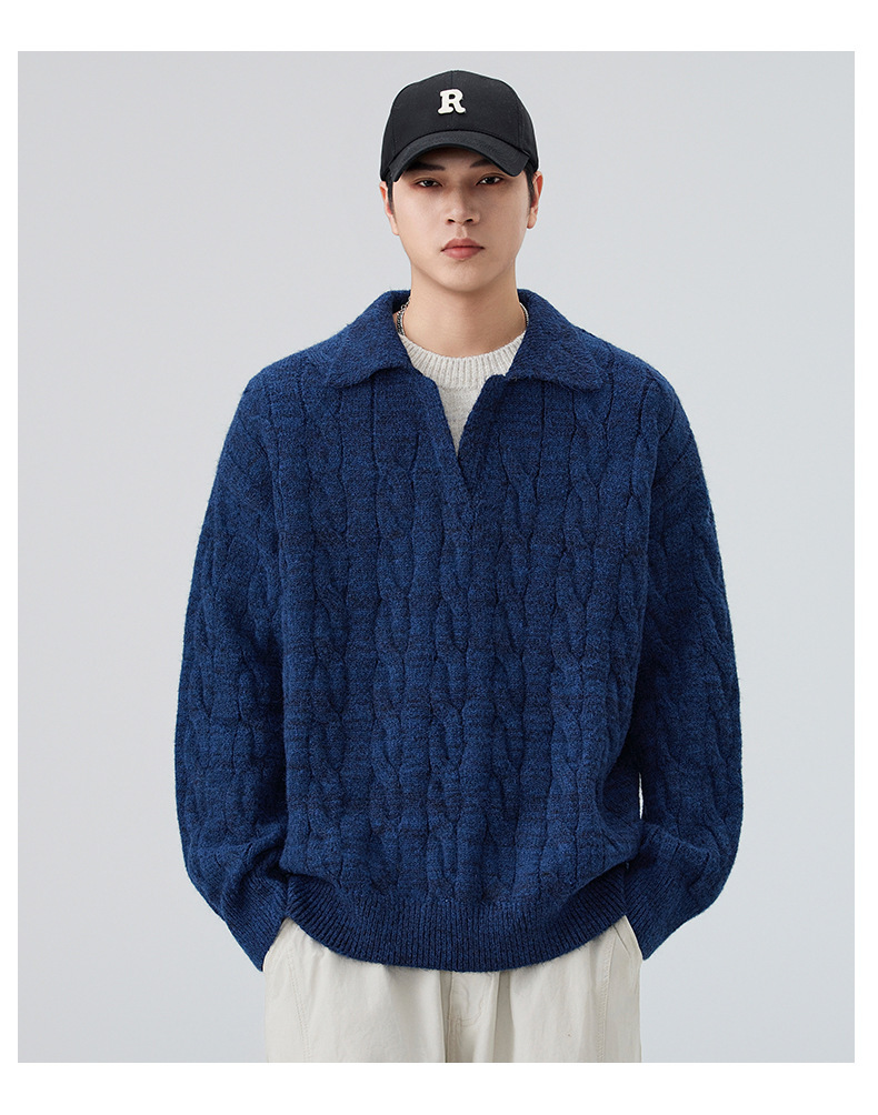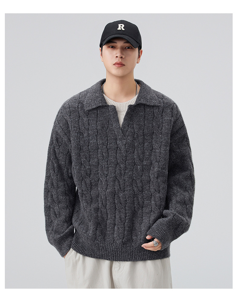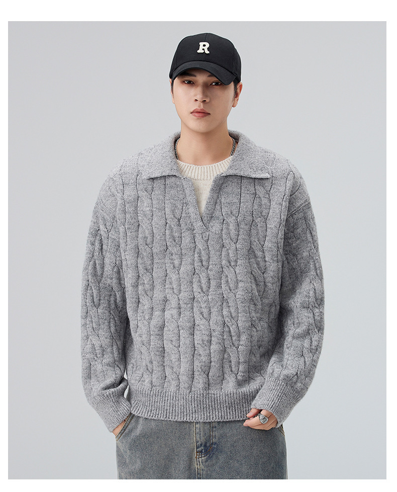 Suéter Masculino 2025, Otoño e Invierno, Estilo Japonés, Grueso, Patchwork, Versión Coreana, Prenda de Punto Moderna, Capa Base, Suéter Masculino al por Mayor