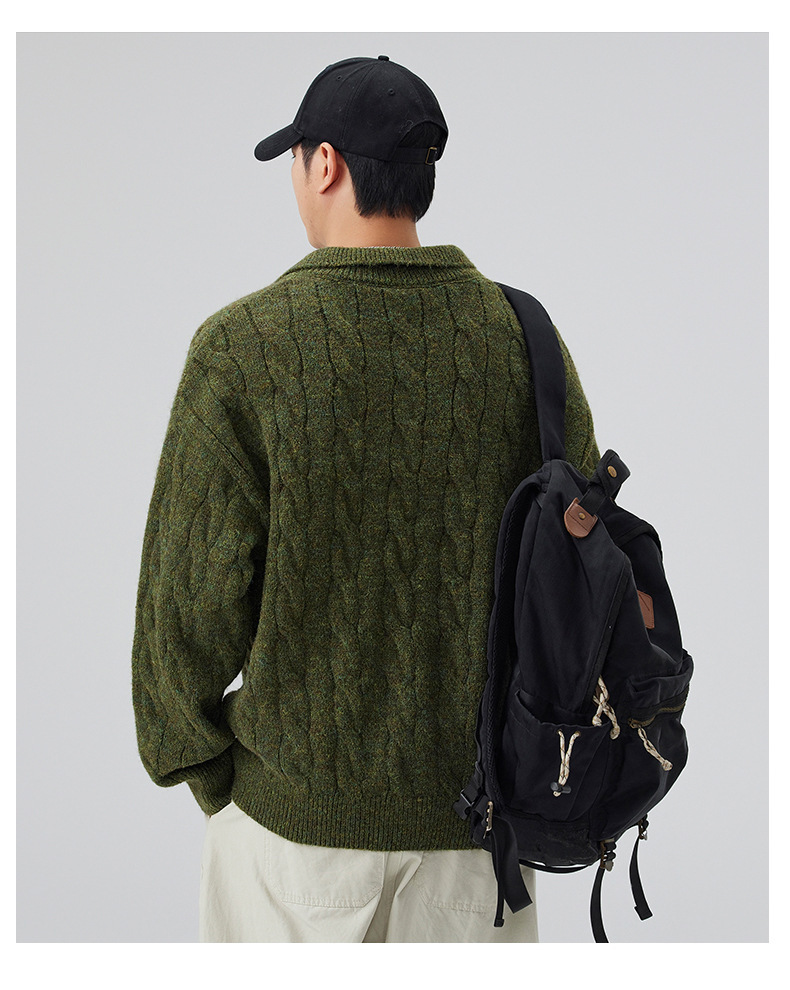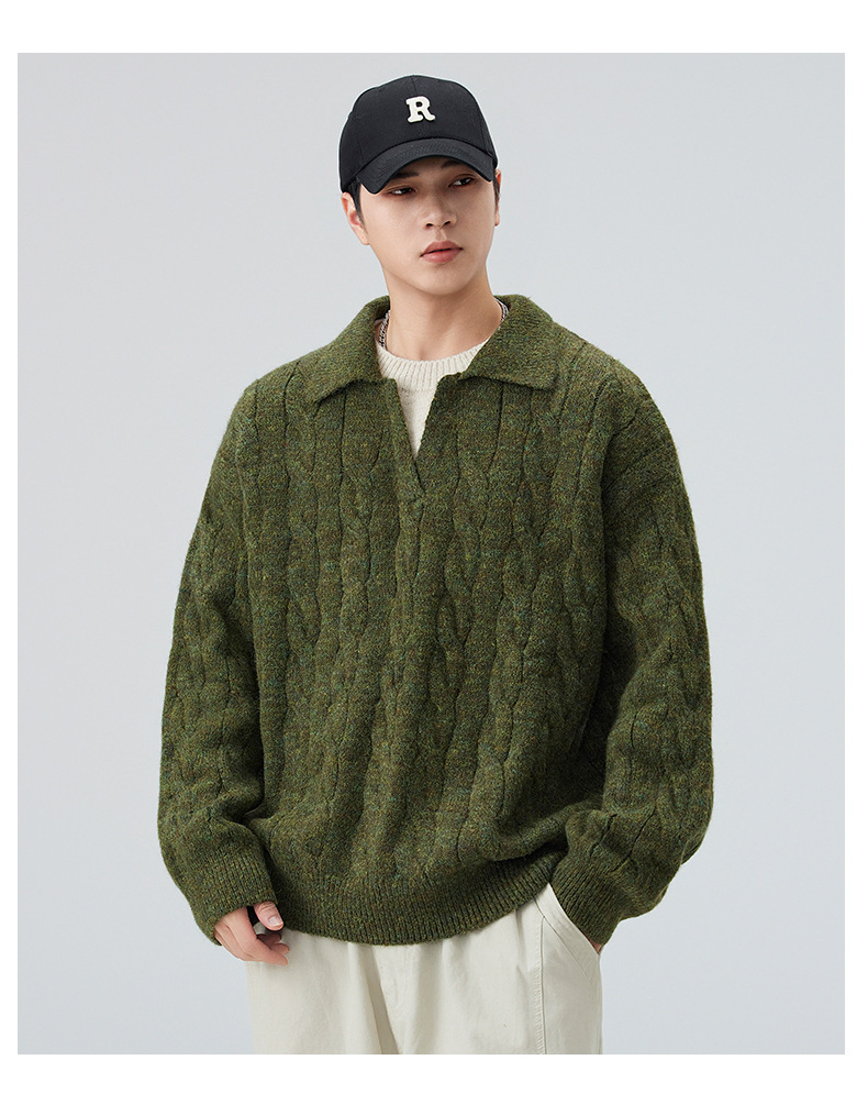 Hombres un suéter de cuello medio alto de vello camisa de punto 2025 otoño y invierno nuevo estilo de vello de cuello medio chaqueta de moda de hombre