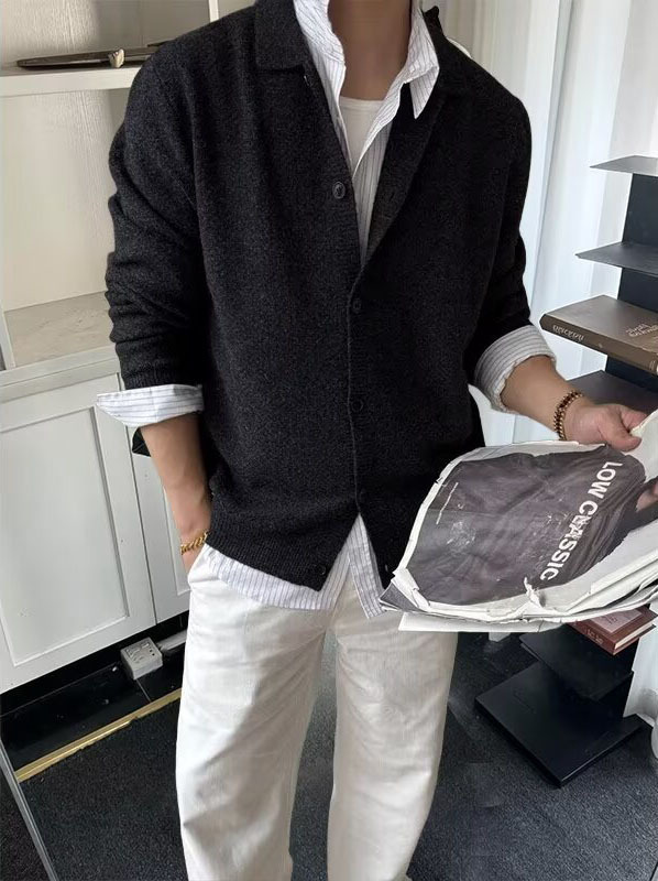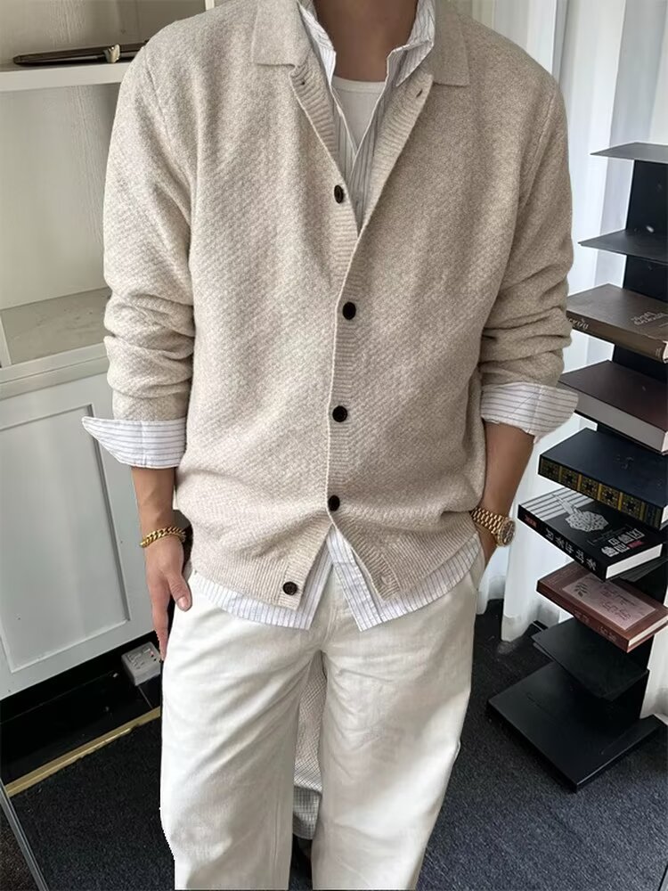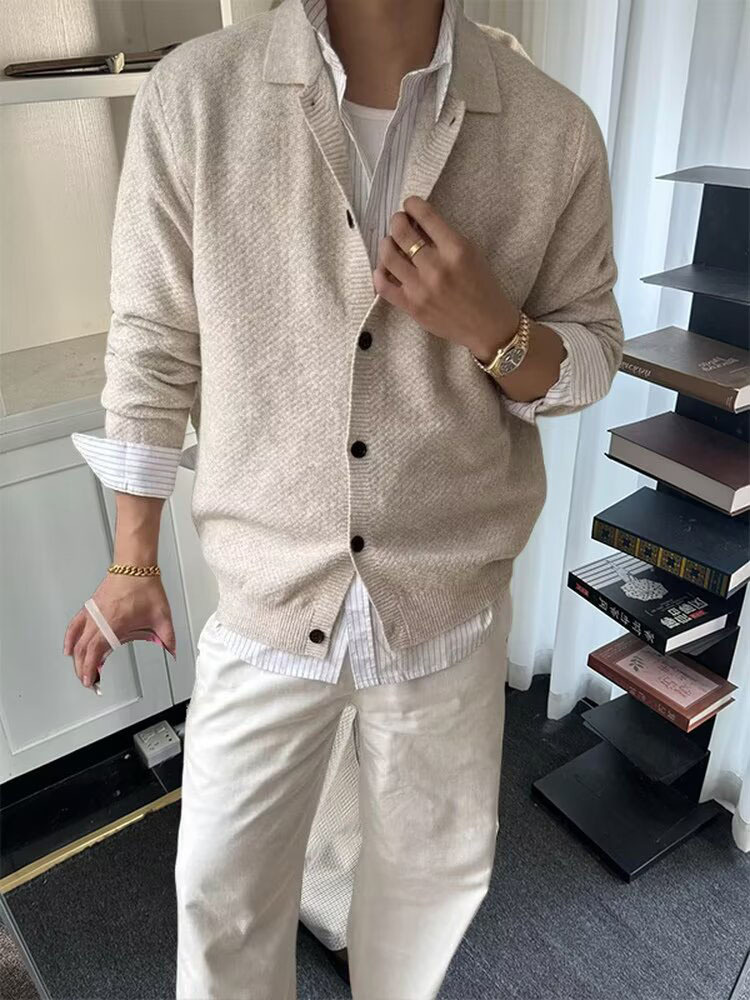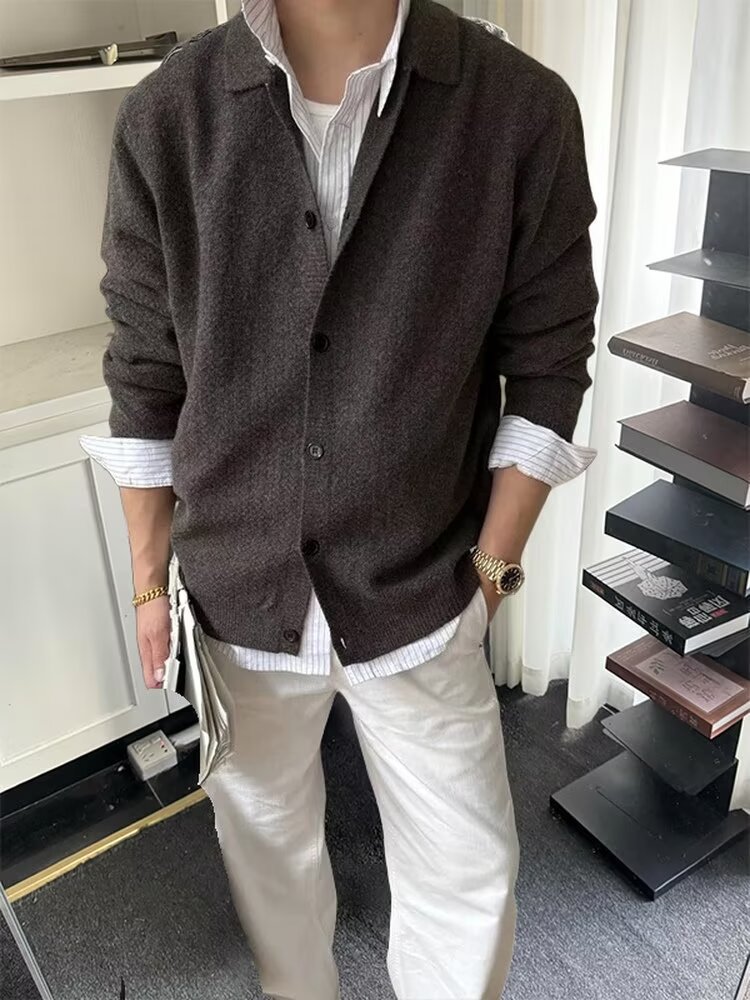 MTLCLOTHES Hombres| Cardigan con cremallera casual minimalista estilo británico Cardigan de cuello de punto suéter chaqueta de moda