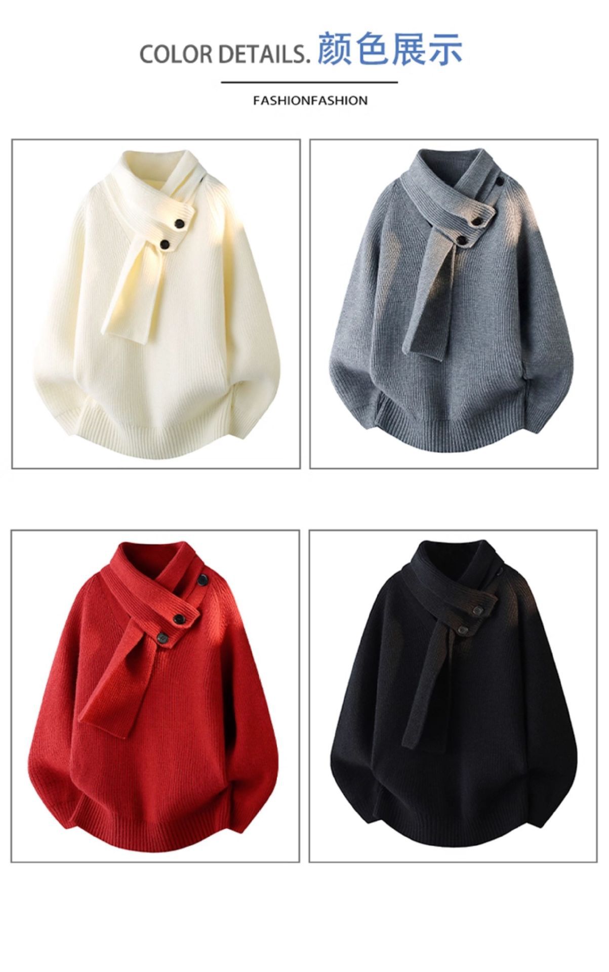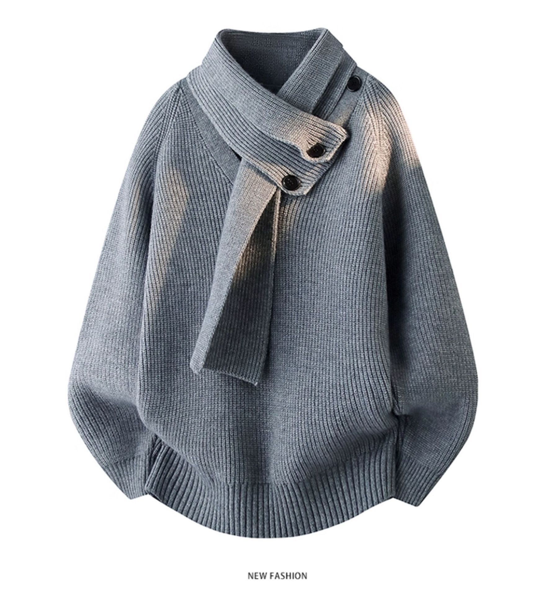 Explosiones transfronterizas de tamaño grande turban desmontable camisa de punto suéter masculino botón de sentido superior otoño invierno fábrica al por mayor