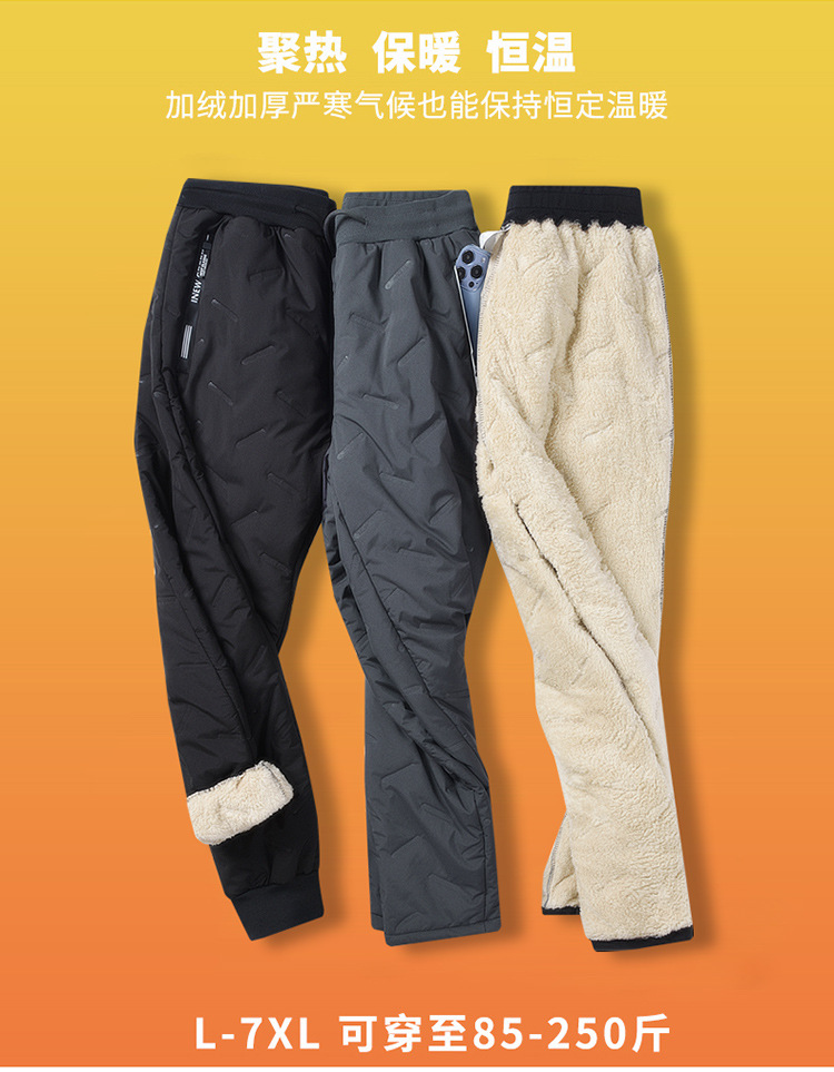 Pantalones de algodón para hombre, invierno 2024, nuevo estilo, pantalones acolchados con forro polar, lana de cordero gruesa, cortavientos, impermeables, pantalones largos cálidos.
