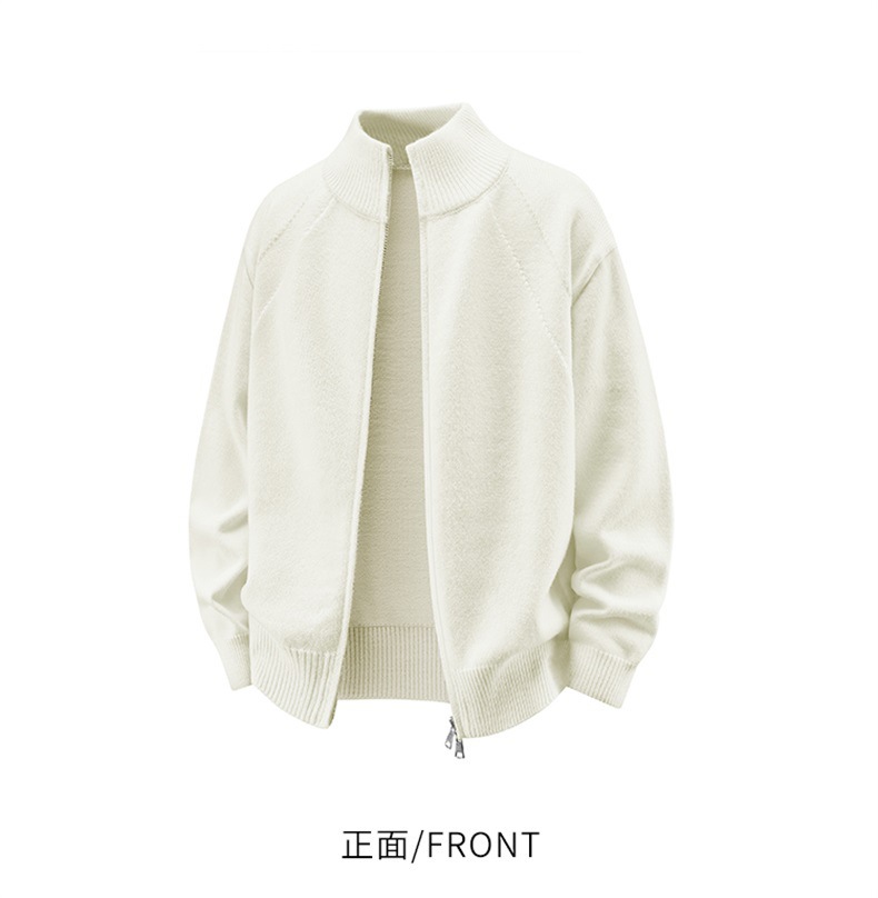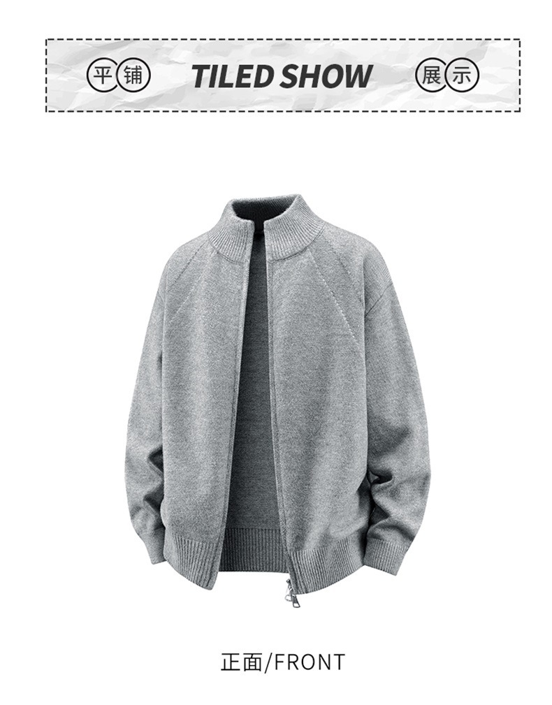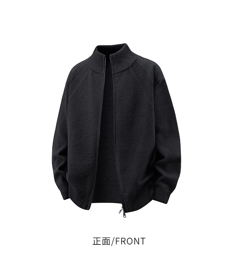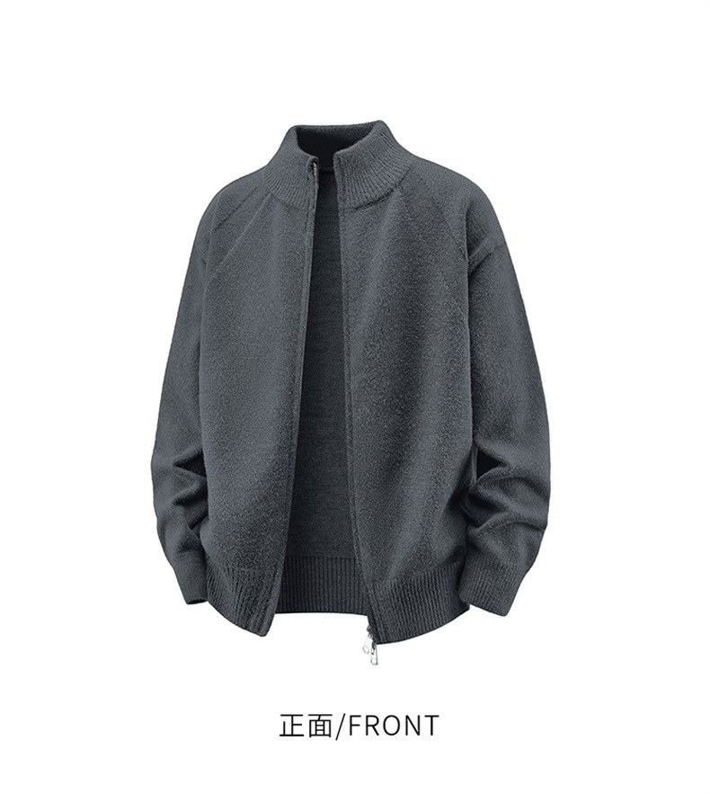 Explosiones transfronterizas de tamaño europeo de gran tamaño de cuello de pie cardigán chaqueta suéter de punto suéter de hombre doble cremallera fábrica al por mayor
