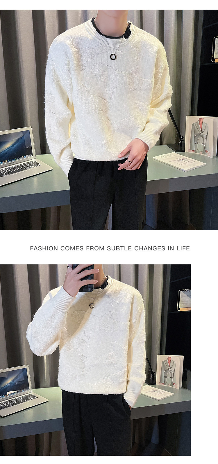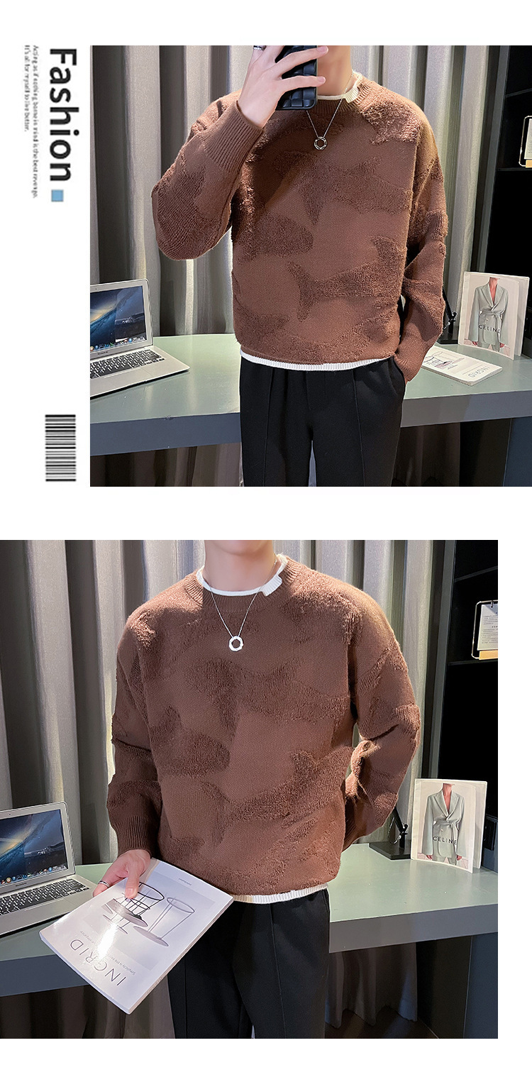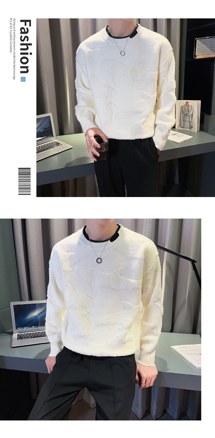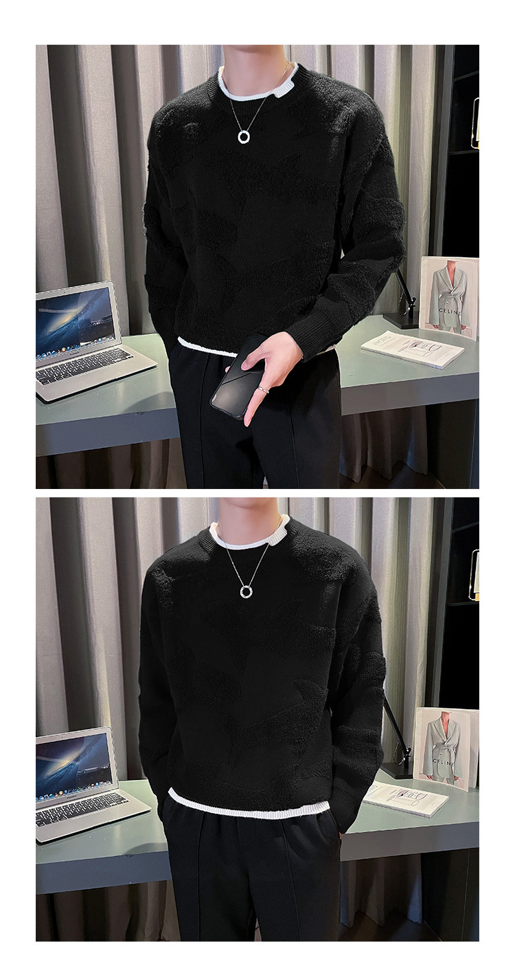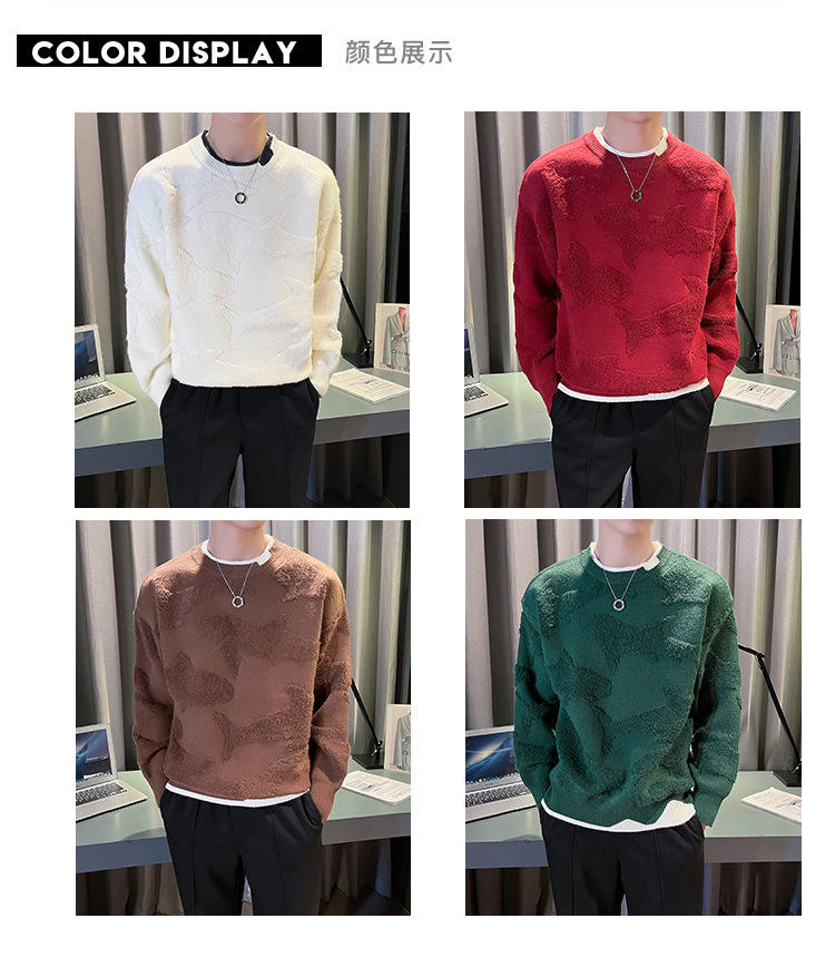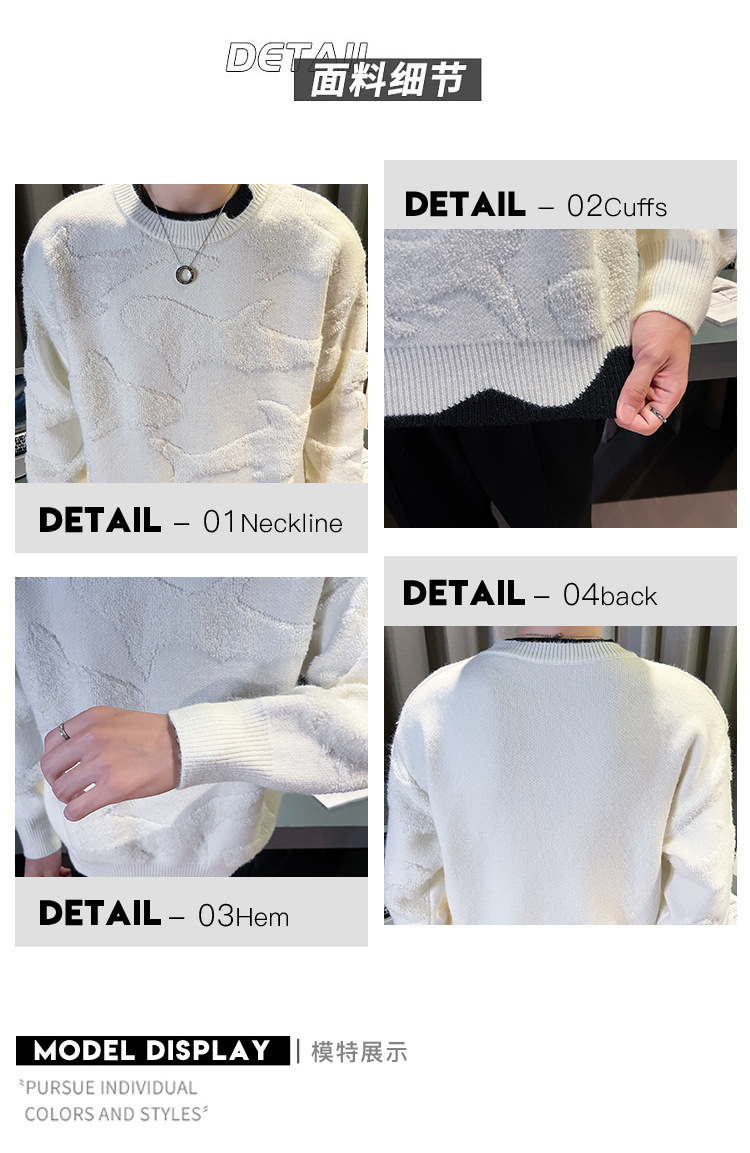 Blusa de manga larga suelta casual de calle retro europea y americana transfronteriza, suéter cálido de otoño e invierno, suéter de punto de cuello redondo para hombres