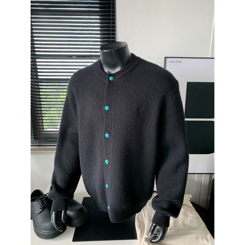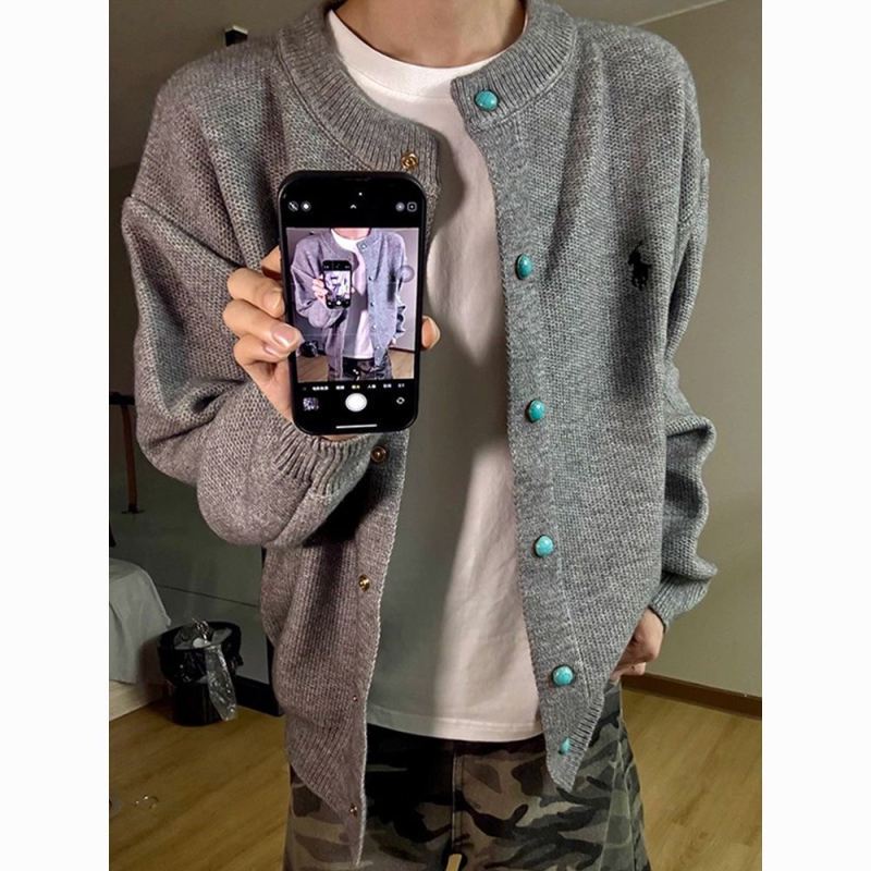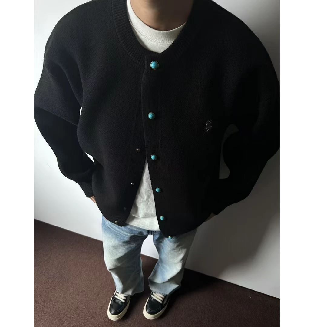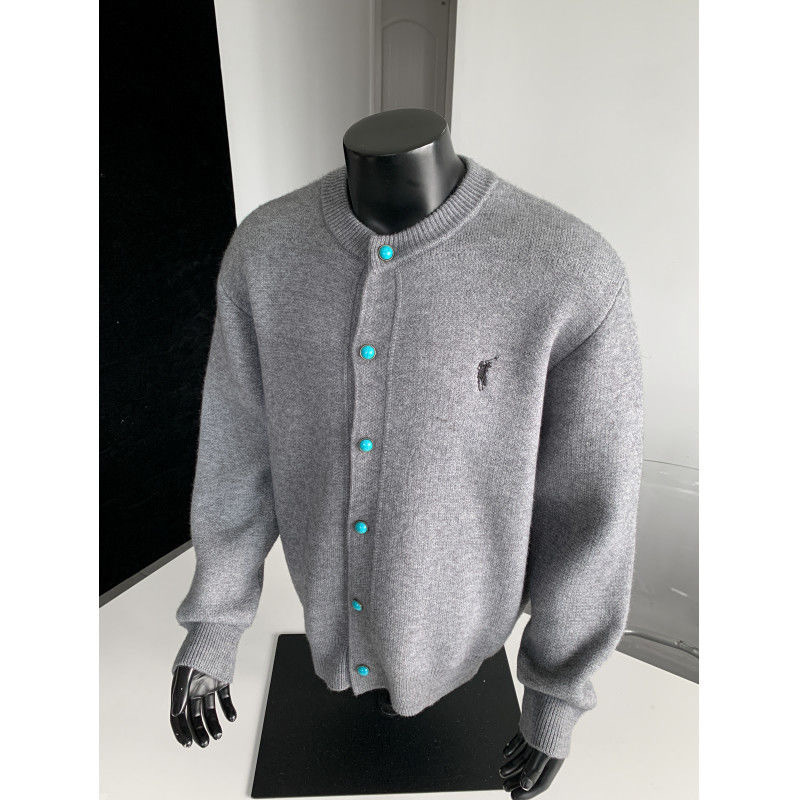 Explosiones transfronterizas de tamaño europeo bordado cardigan jersey suéter hombre chaqueta vieja fábrica de viento de dinero turquesa mayorista