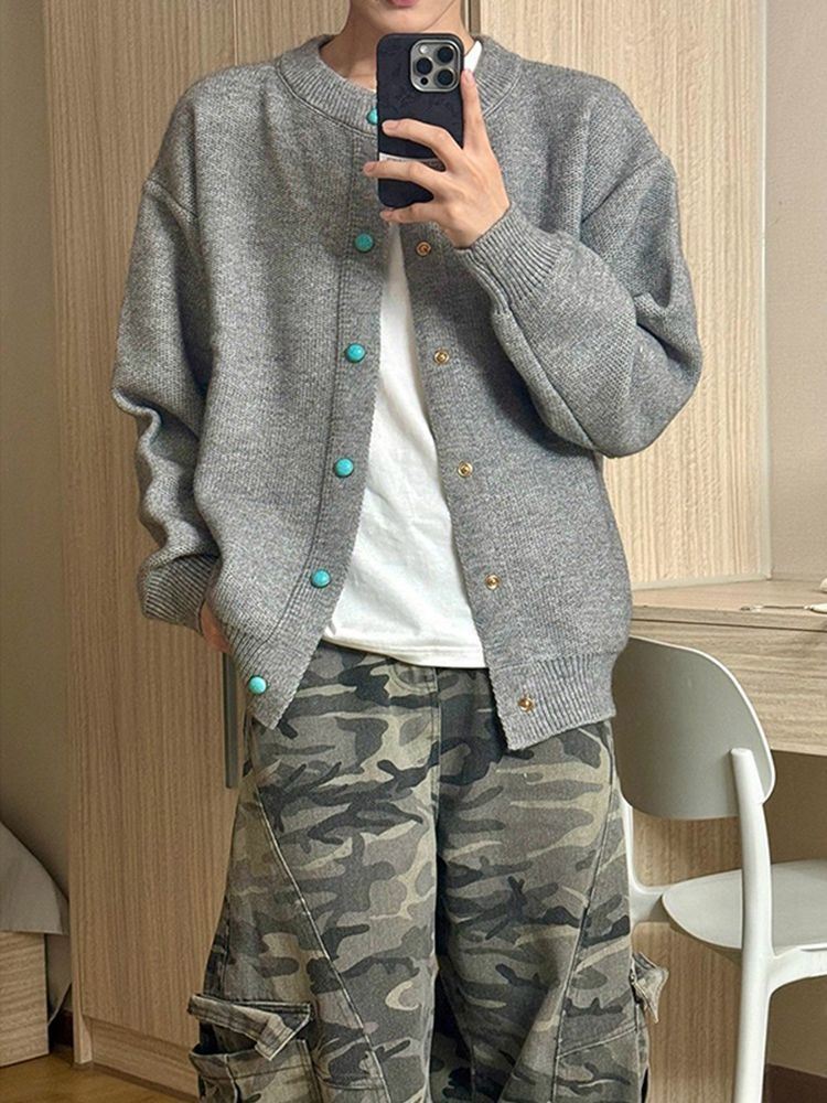 Explosiones transfronterizas de tamaño europeo suéter de jersey de gran tamaño cardigán chaqueta de color sólido fábrica de negocios al por mayor
