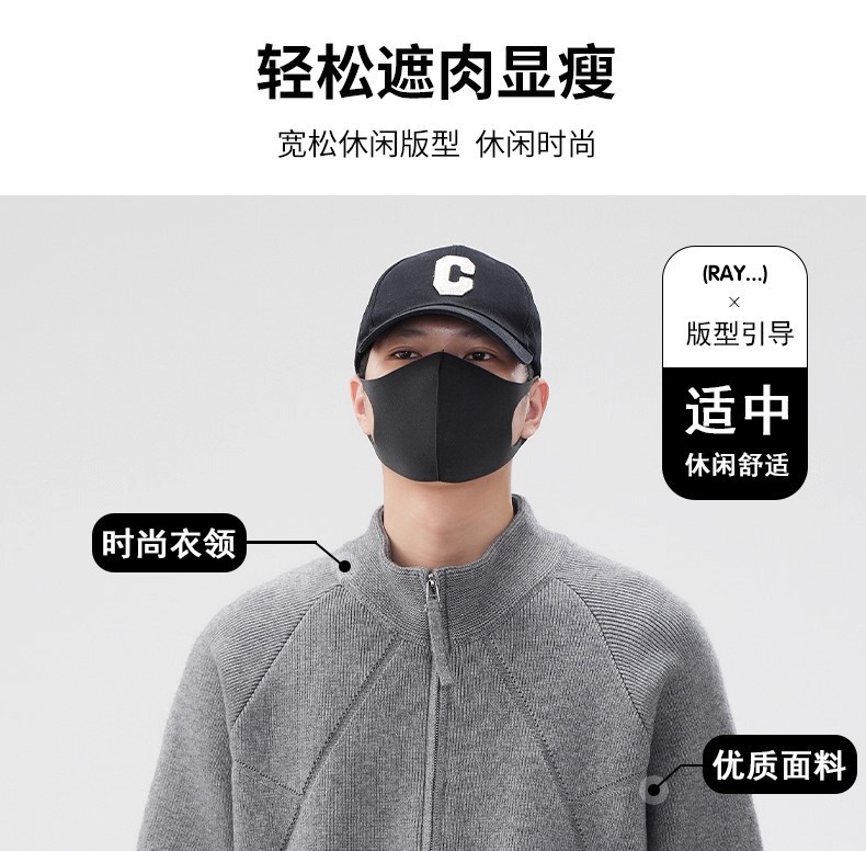 Camisas de punto Amazon primavera y otoño nuevos hombres de cuello medio alto con cremallera de manga larga de color sólido suéter de hombre