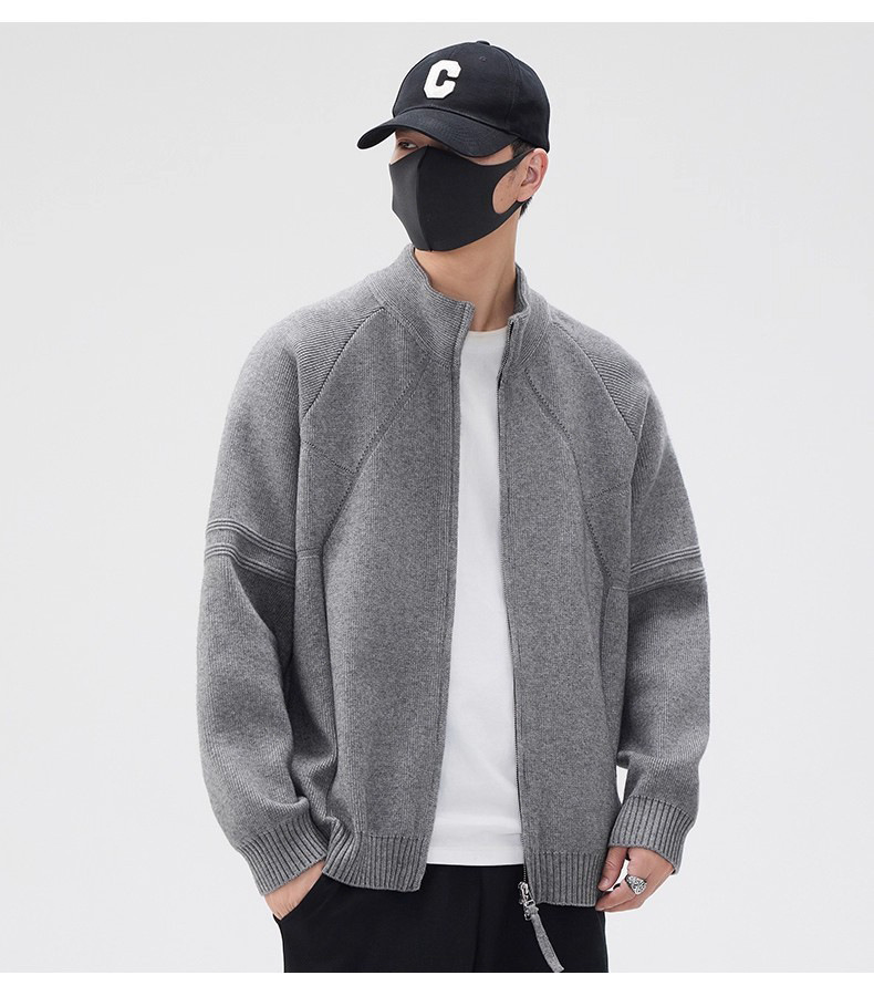 MTLCLOTHES Hombres| Nuevo invierno perezoso doble cremallera de media altura cuello flojo torcido jersey cardigan chaqueta