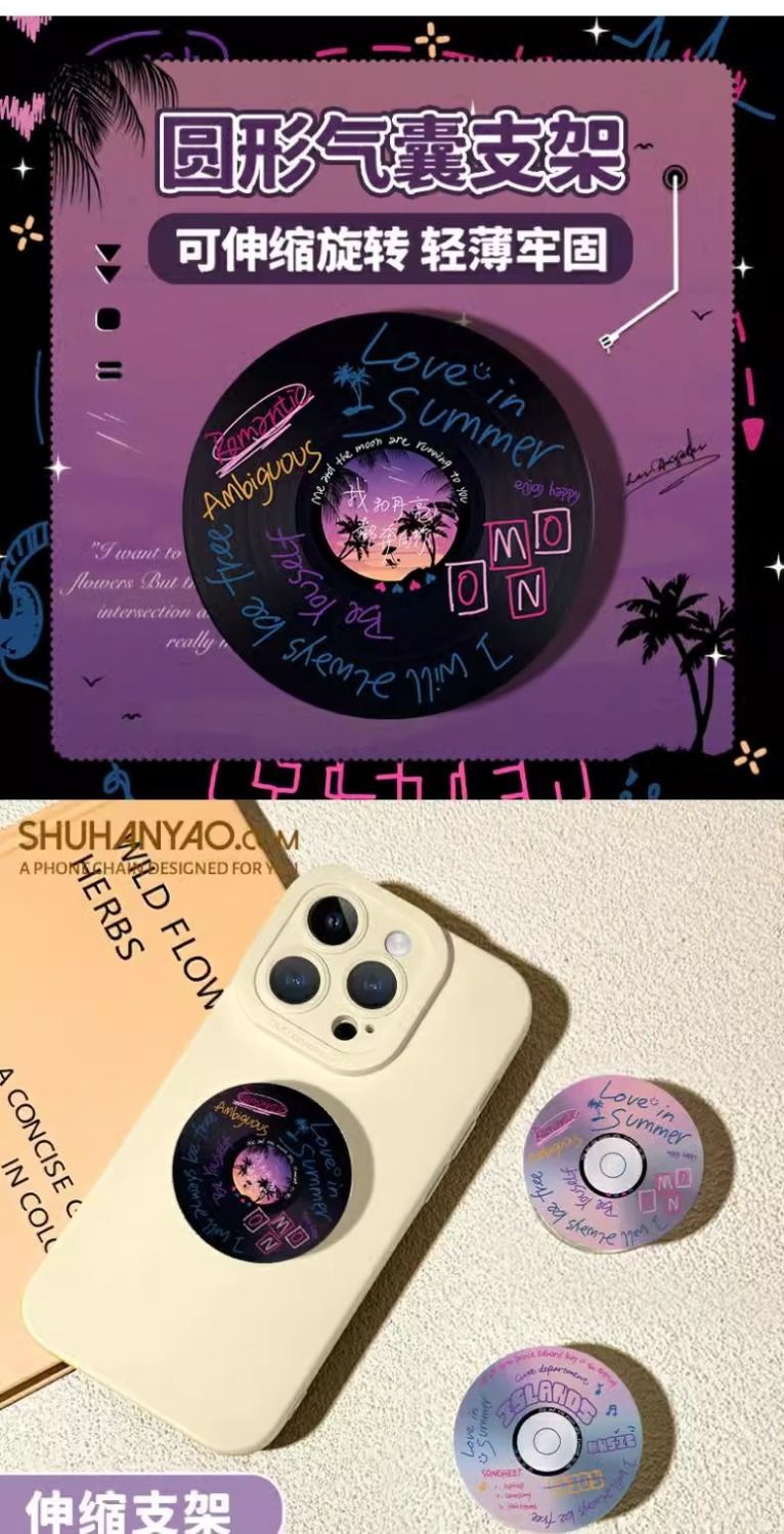 Ins disco de música redondo creativo para el soporte de airbag de teléfono móvil pegado 360 rotación retráctil perezoso perseguir el drama de escritorio
