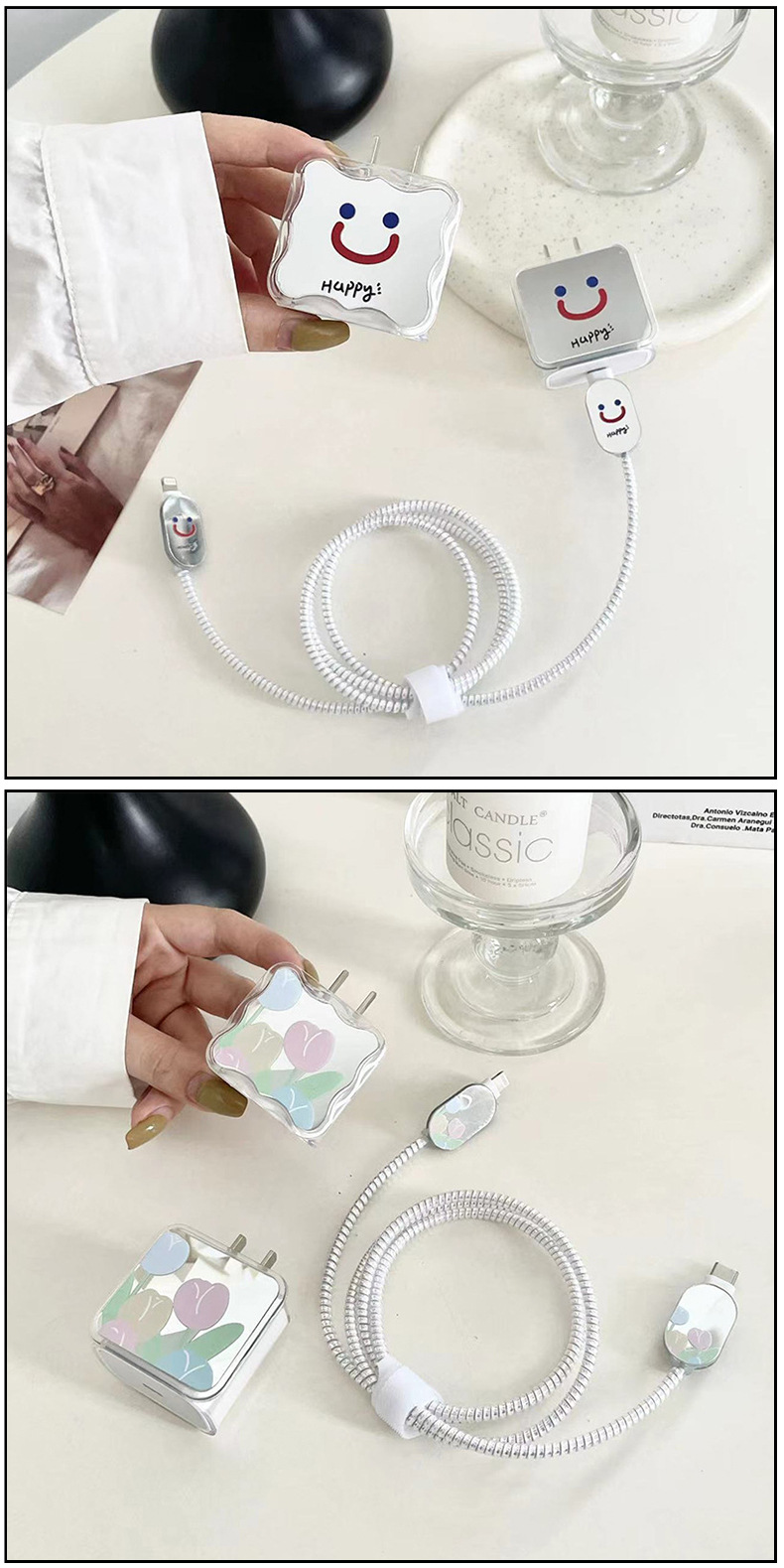 | Color | Apple 20W flor espejo cabeza de carga cubierta protectora + línea morder dispositivo + 1 M láser cuerda protectora,Apple 20W cara sonriente espejo cabeza de carga cubierta protectora + línea morder dispositivo + 1 M láser cuerda protectora |