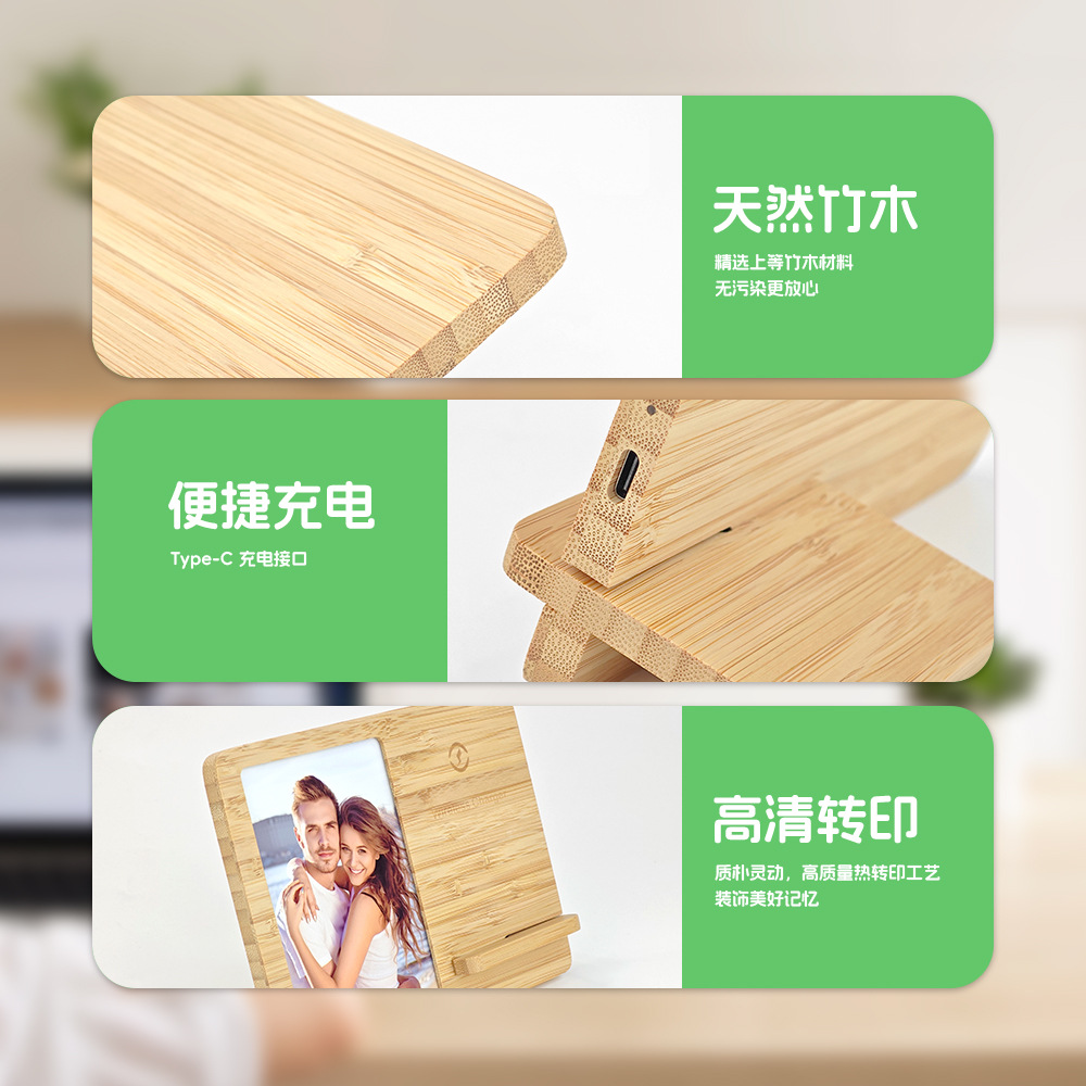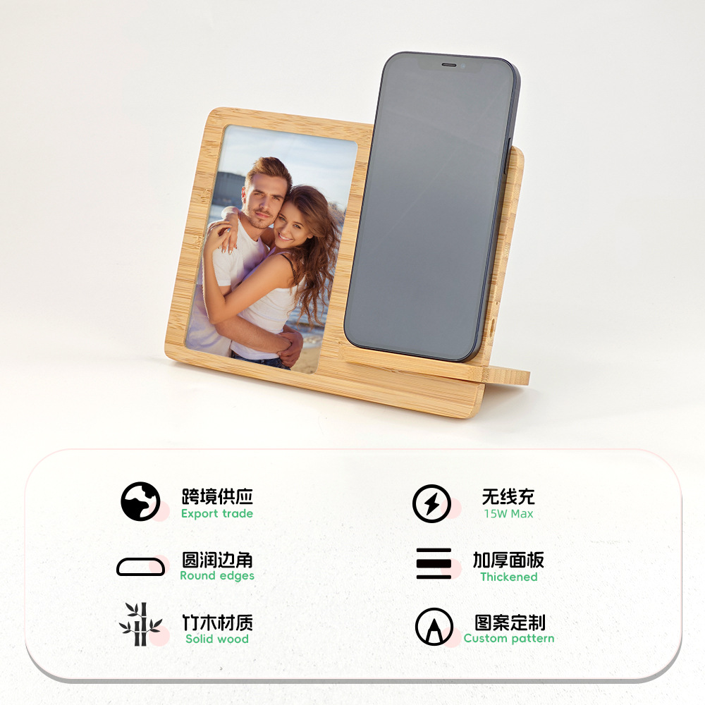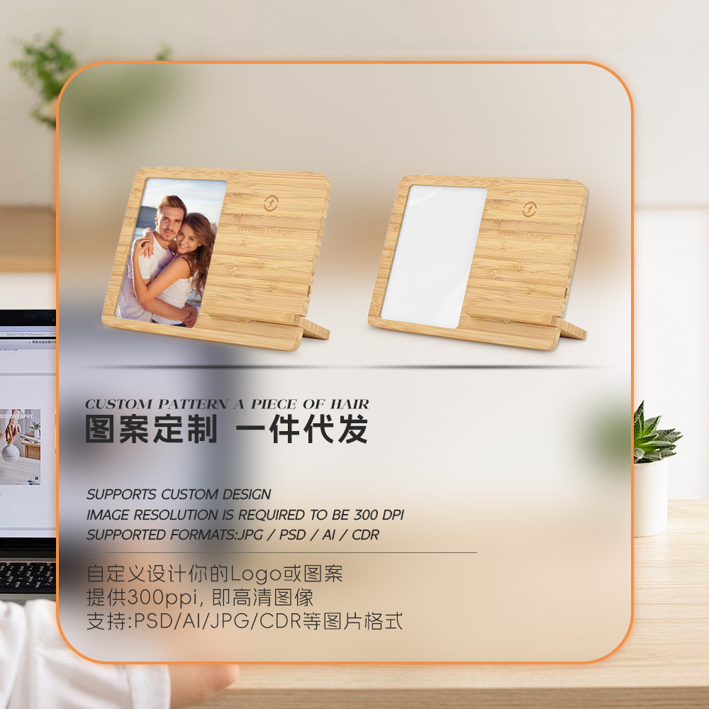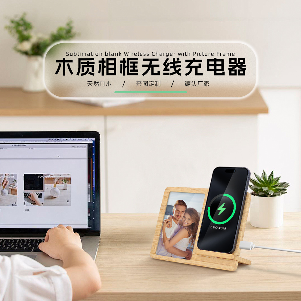 热升华竹木桌面相框无线充电器DLY空白素材批发