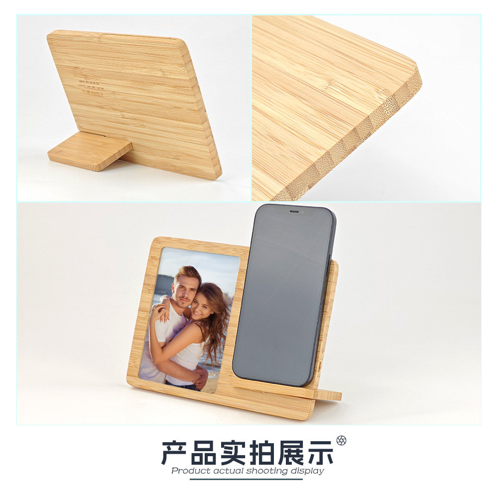 Base de bambú para sublimación, soporte de escritorio, marco de fotos, soporte de carga inalámbrica, material en blanco DLY, venta al por mayor