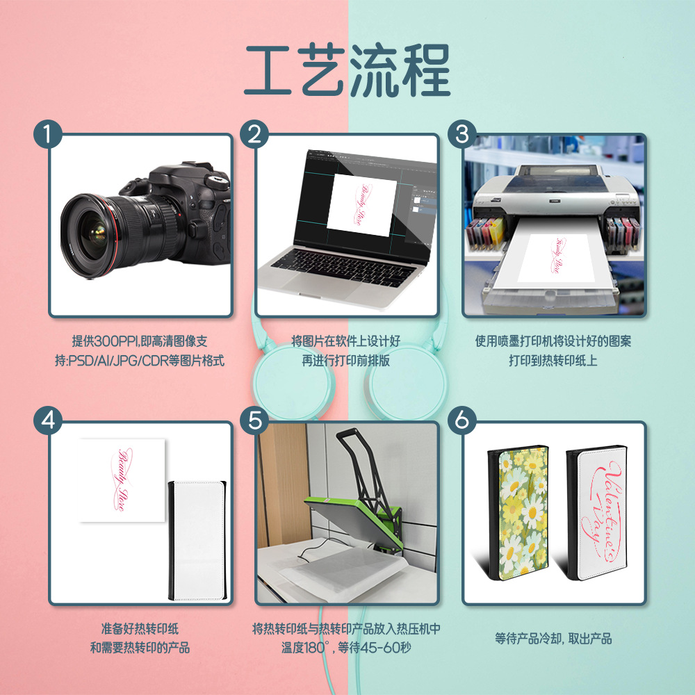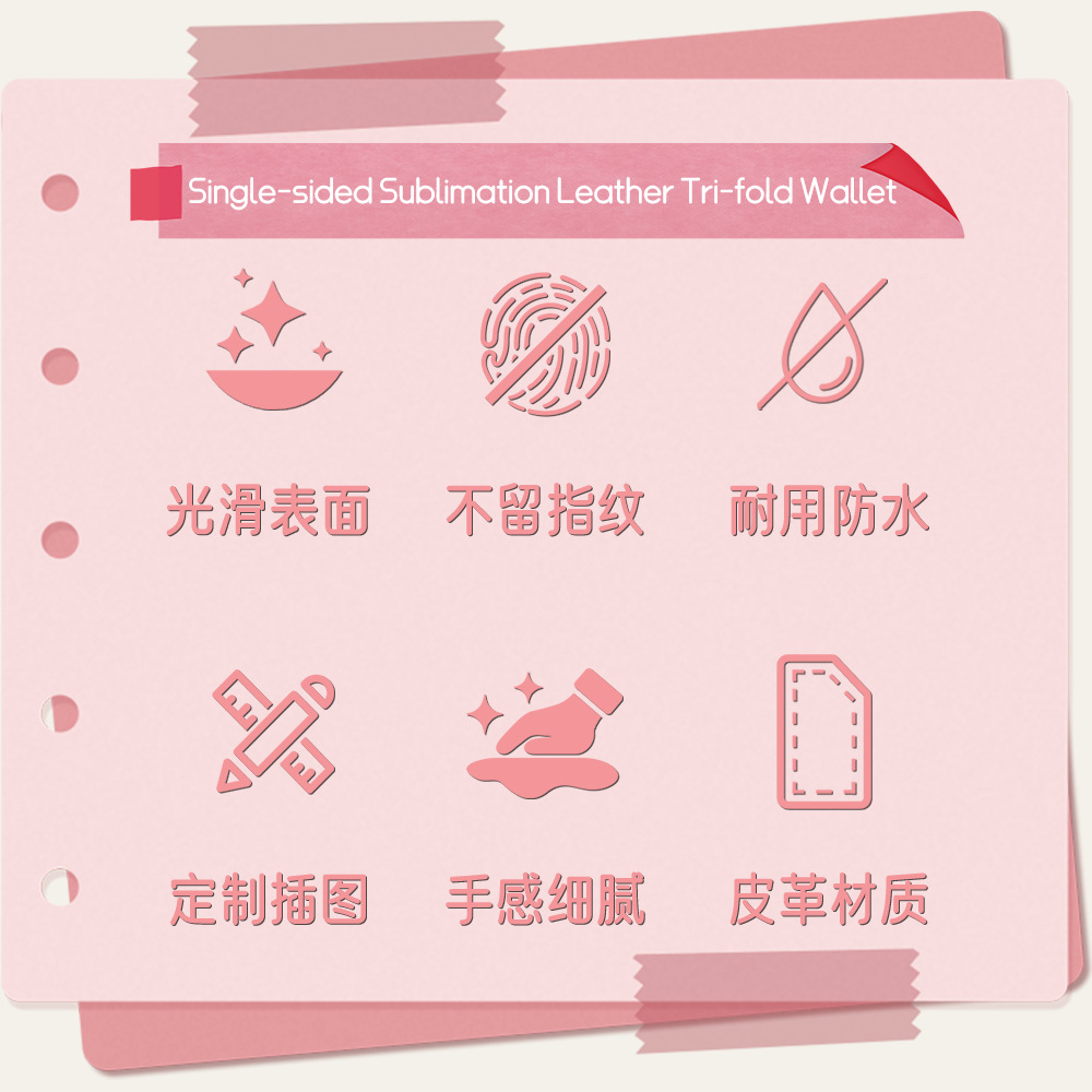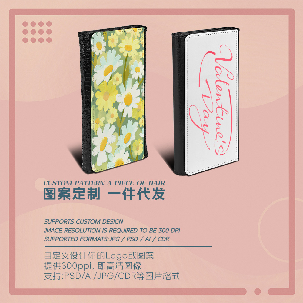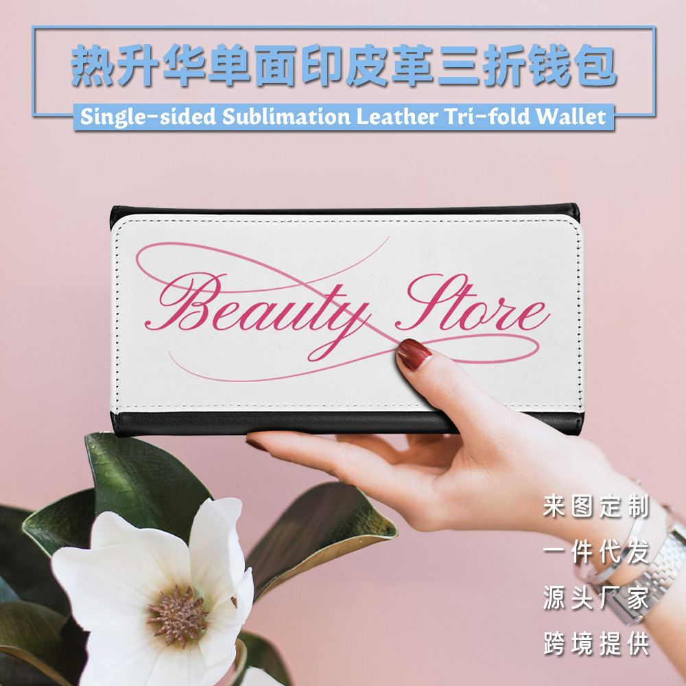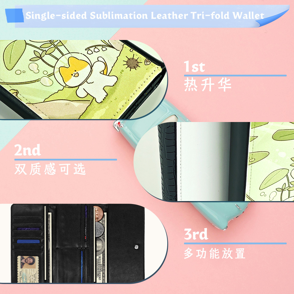 Venta directa de fábrica, sublimación en blanco, cuero impreso de una cara, billetera triple, posición larga de múltiples tarjetas, billetera de mano al por mayor