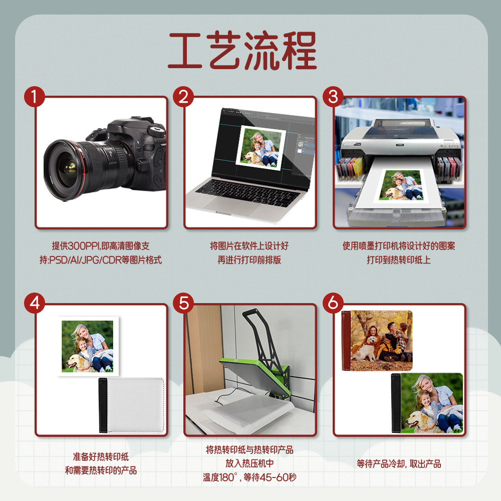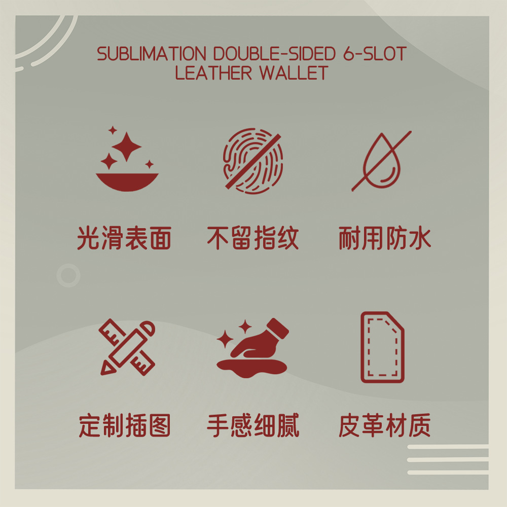 【名称】厂家直销热转印双面印6卡位空白钱包素材批发