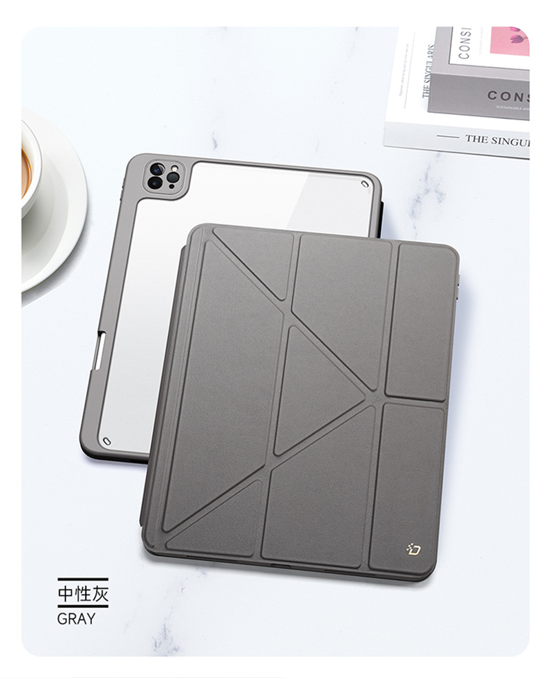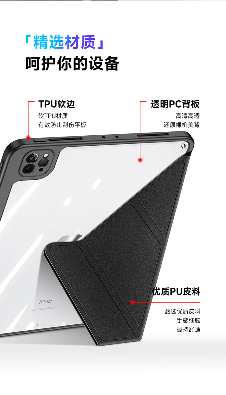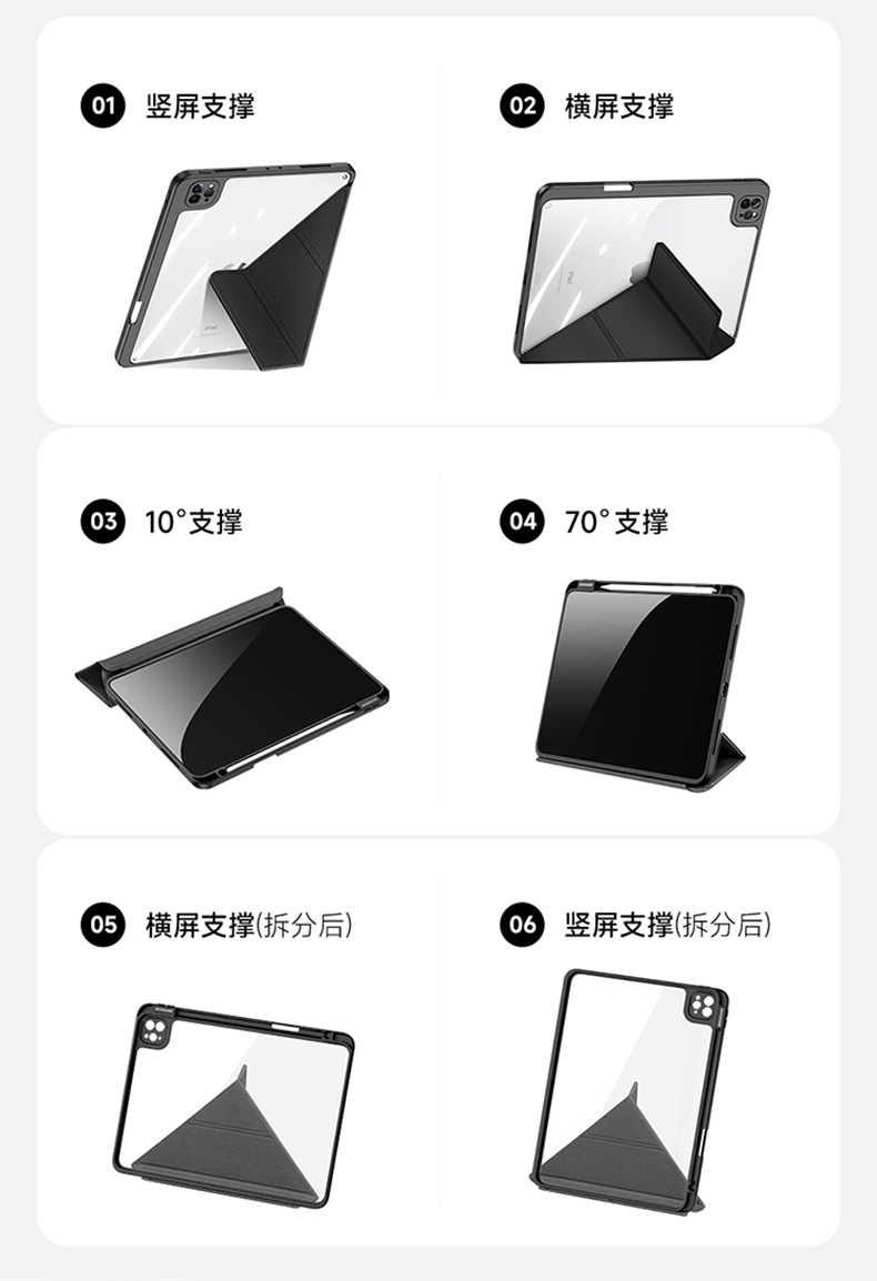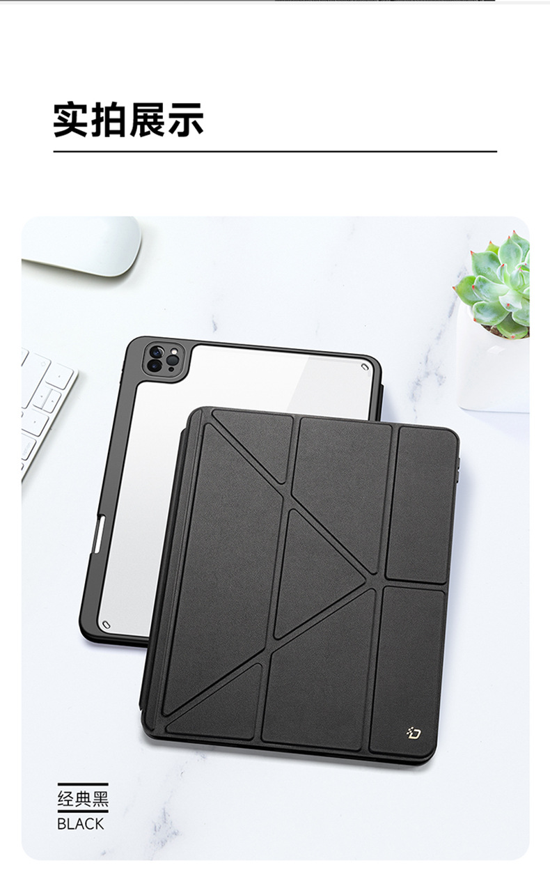 适用iPadPro11分离式保护套 iPad10亚克力透明三折平板保护壳支架