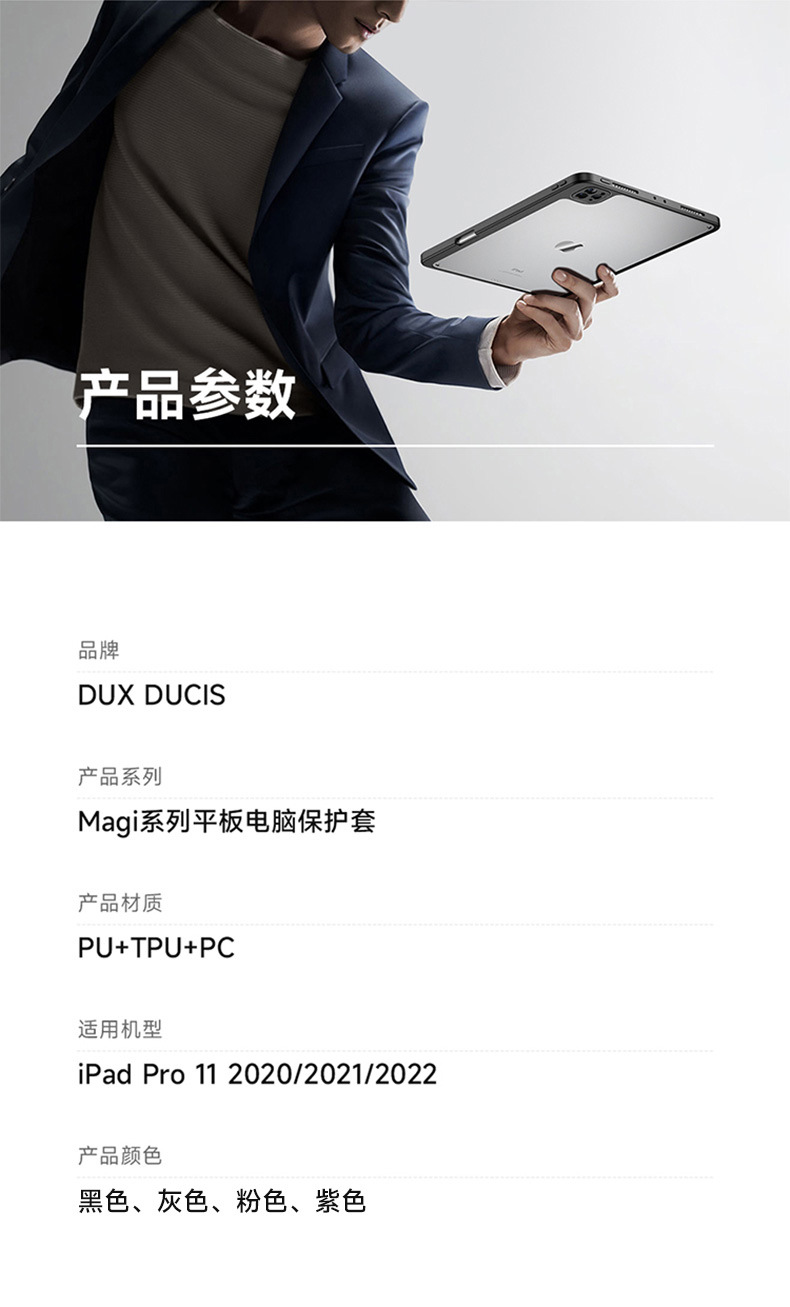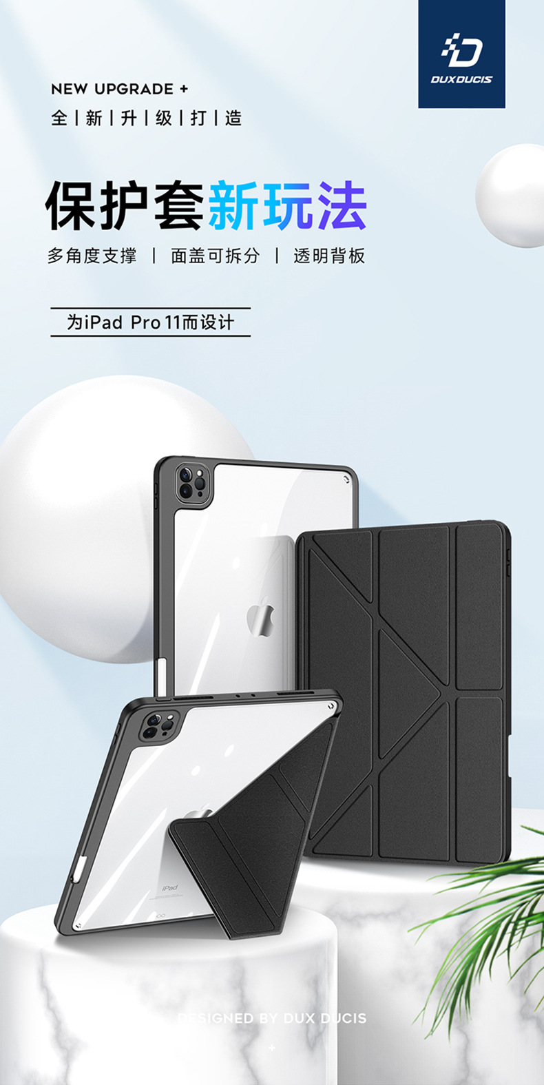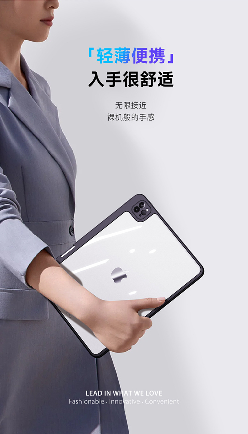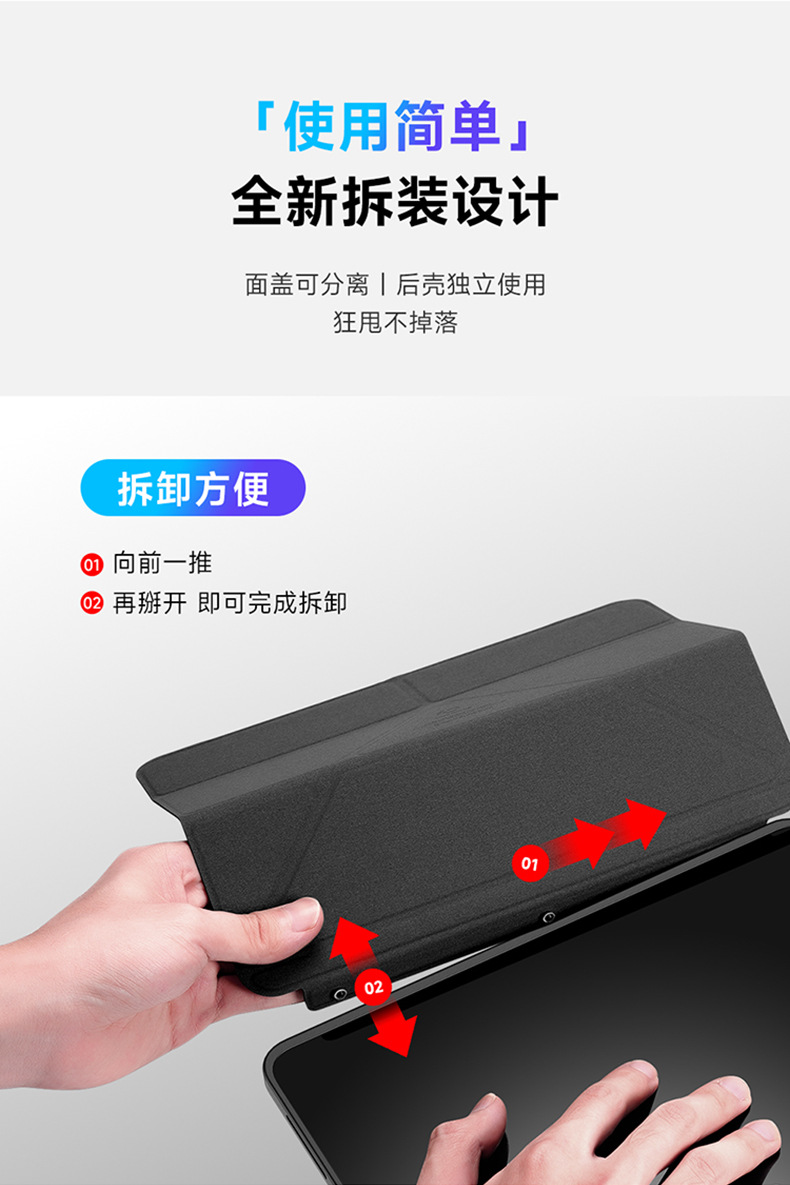 适用iPadPro11分离式保护套 iPad10亚克力透明三折平板保护壳支架