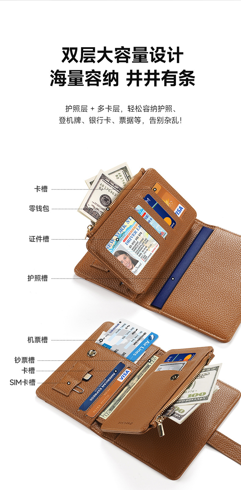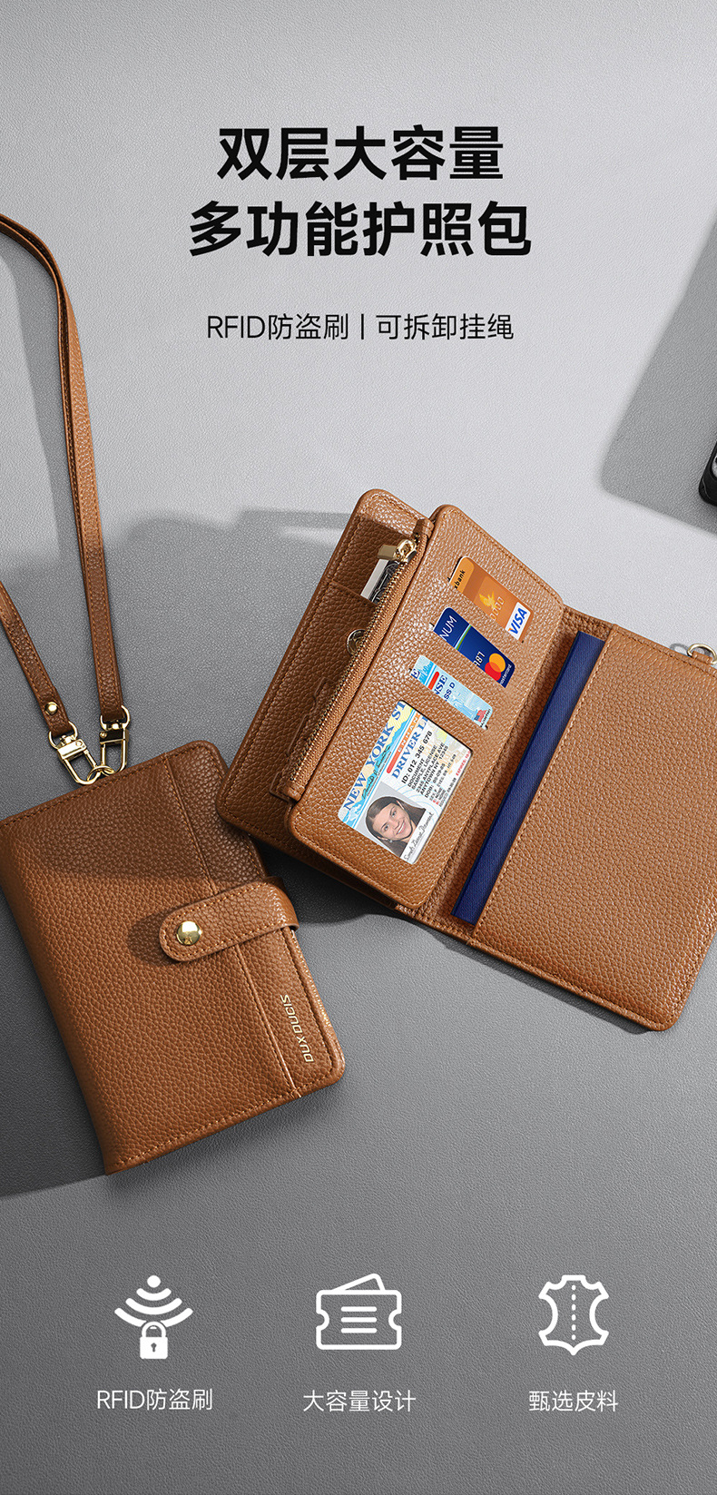 | Número de artículo | Cordón de bolsa de pasaporte con múltiples tarjetas PU |