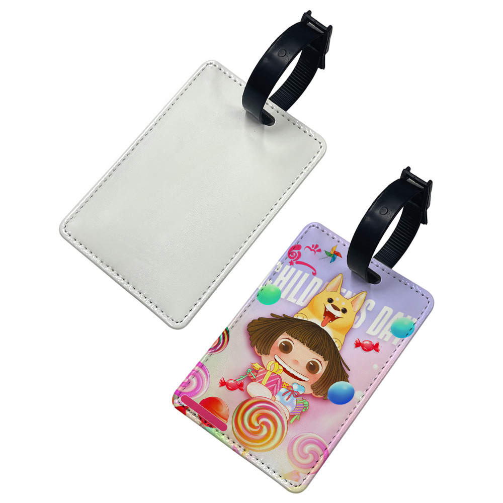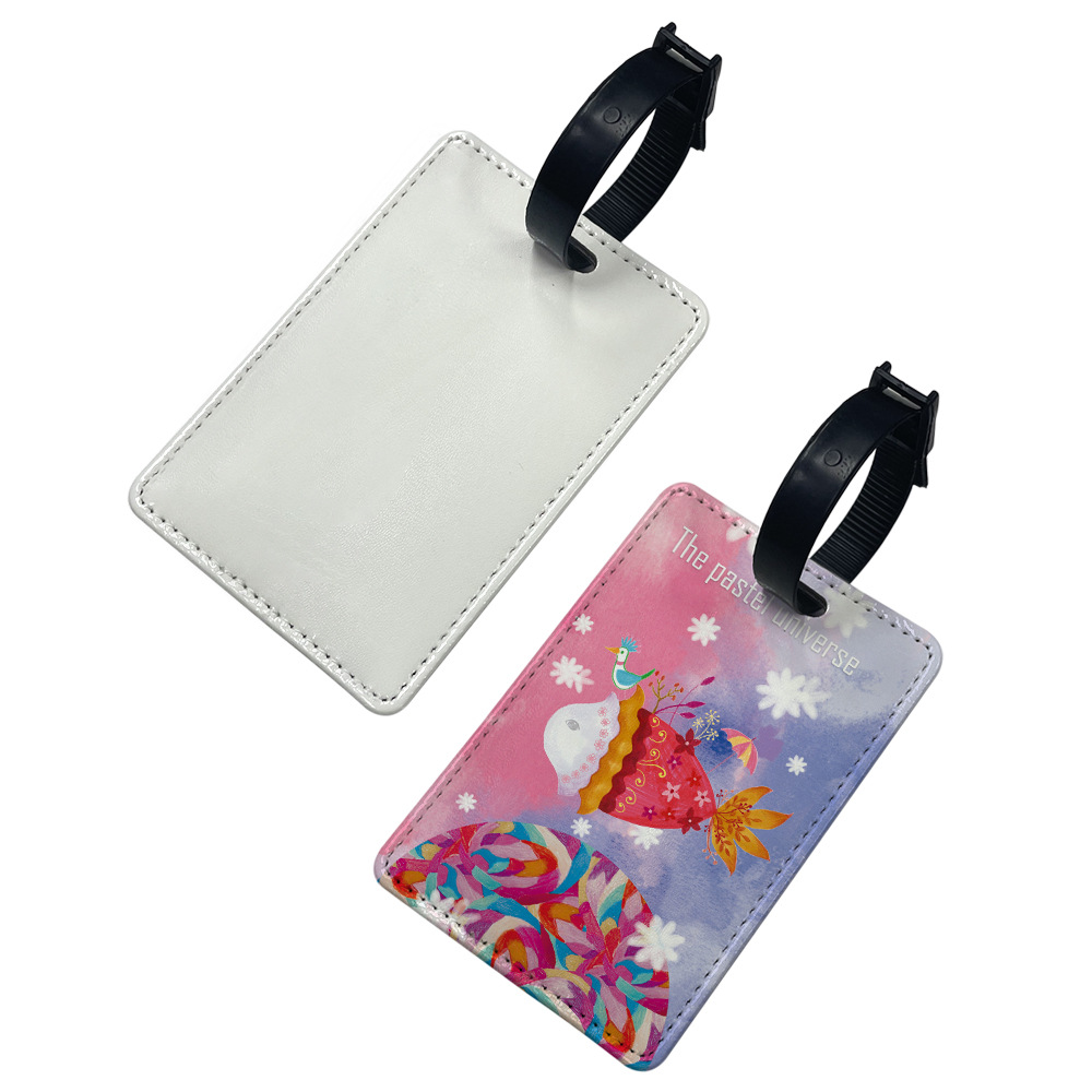 Fábrica directa sublimación caliente etiqueta de equipaje maleta cuero lista con tarjeta de inserción