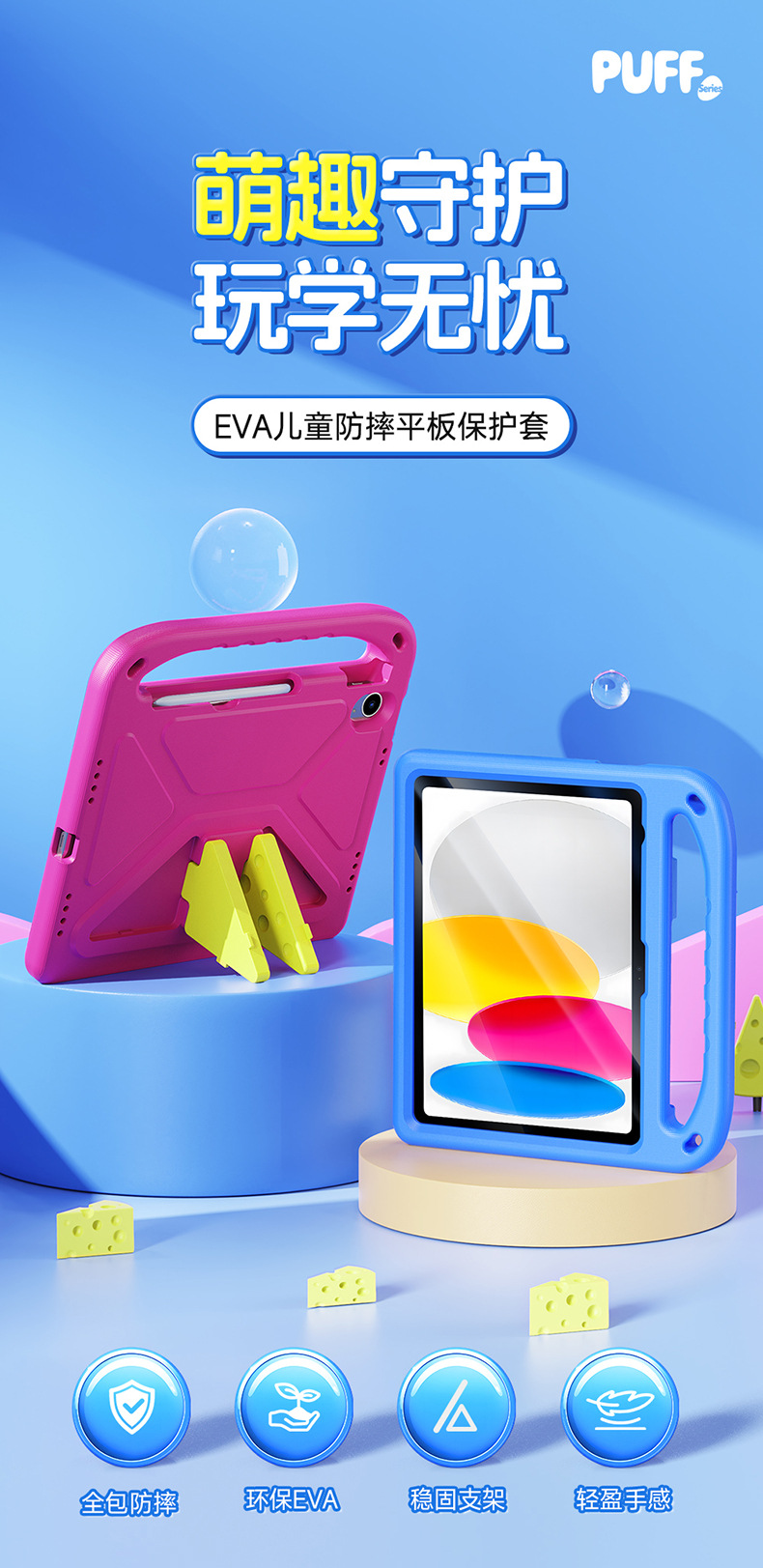 Aplicable iPadmini7 Carcasa protectora de tableta de dibujos animados iPad10.2 Material EVA de protección ambiental Funda protectora portátil al por mayor