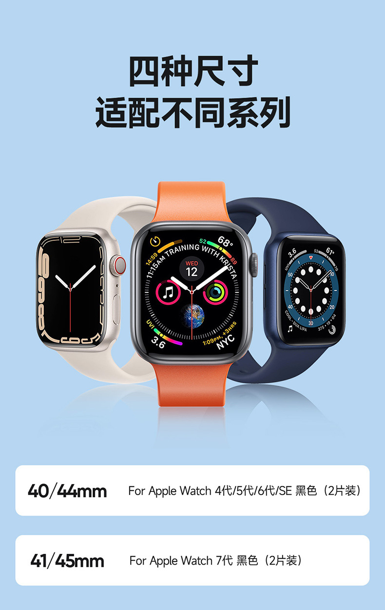 | Tamaño | Apple Watch 40mm (dos piezas),Apple Watch 41MM,Apple Watch 44mm (dos piezas),Reloj de Apple 45mm (dos piezas),Apple Watch 42MM (paquete de dos),Apple Watch 46MM (paquete de dos) |