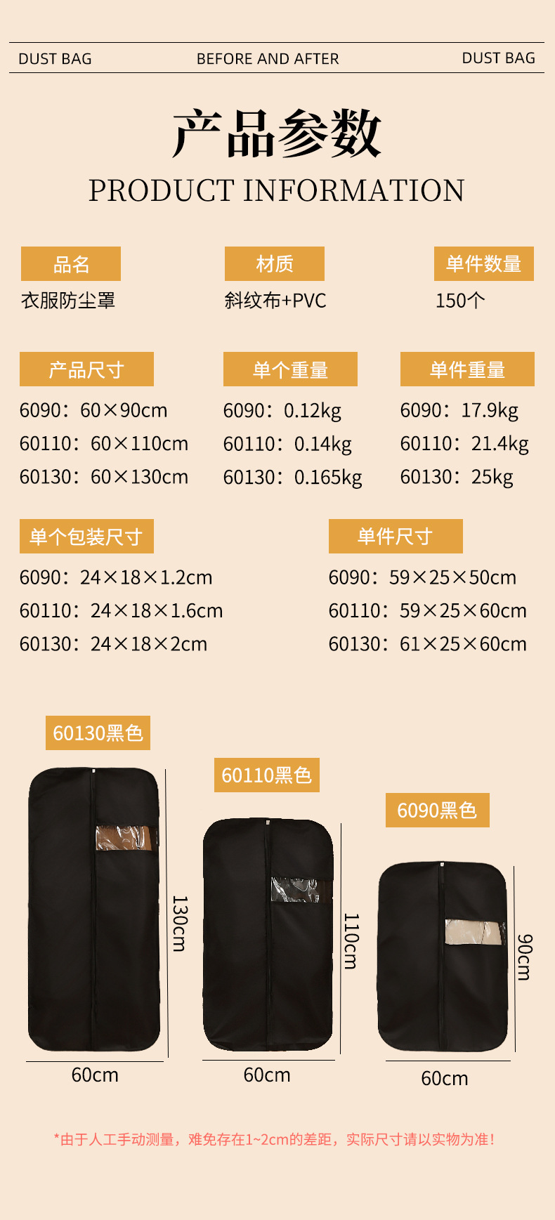| Categoría | Cubierta de polvo, bolsa, funda de ropa |
