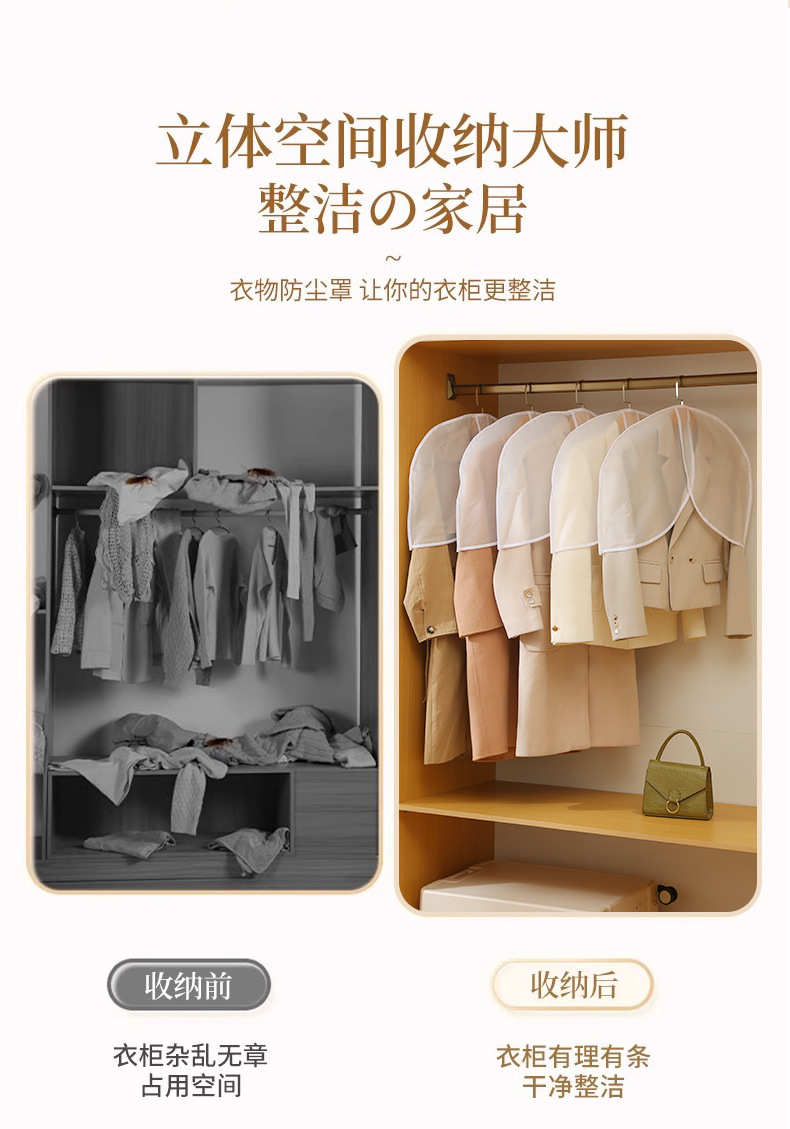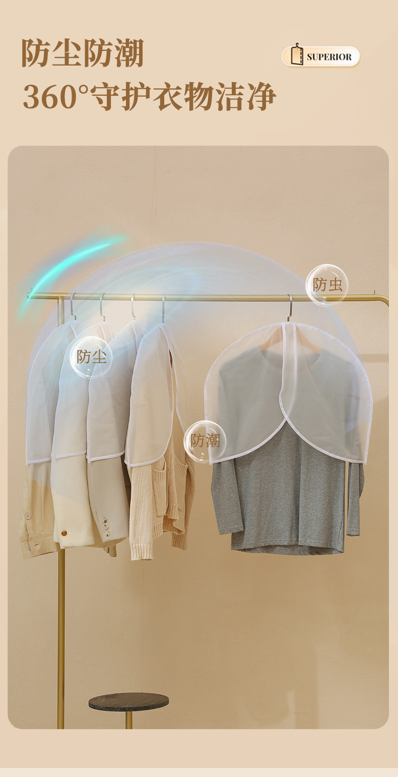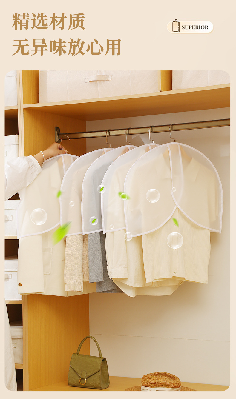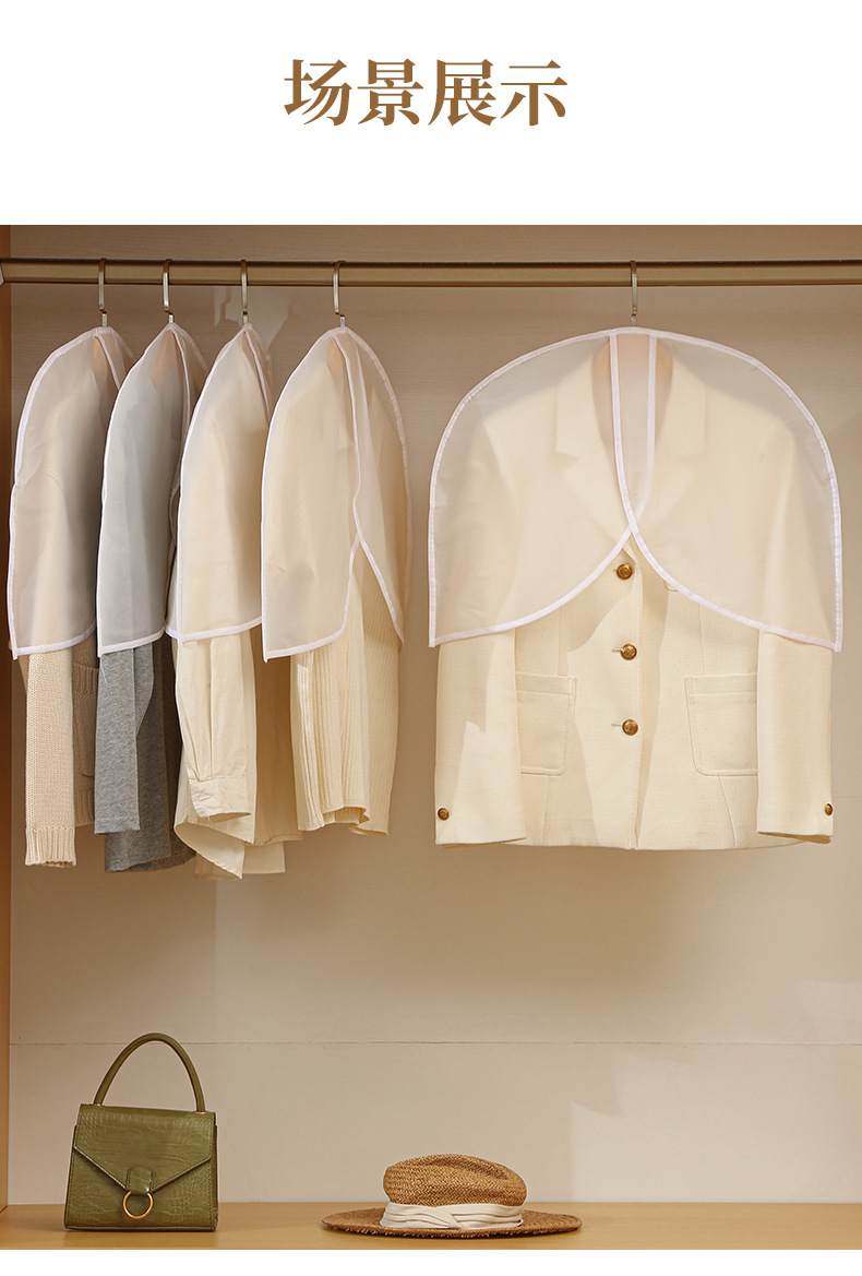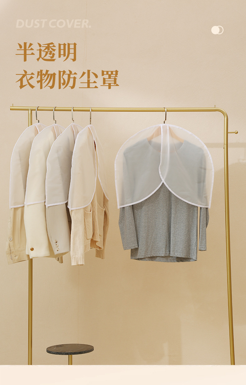 cubierta de ropa a prueba de polvo de medio cuerpo, nuevo conjunto de trajes cortos caseros, cubierta de polvo esmerilada, bolsas de ropa a prueba de agua tridimensionales