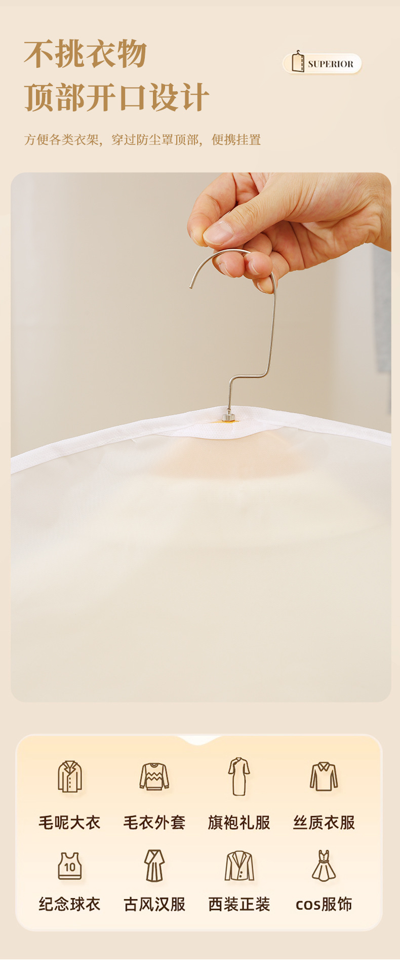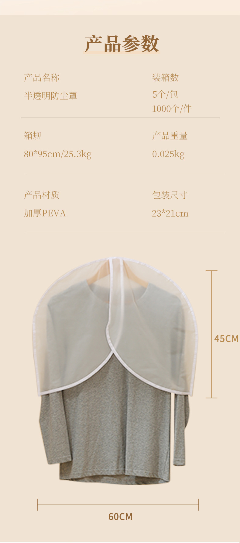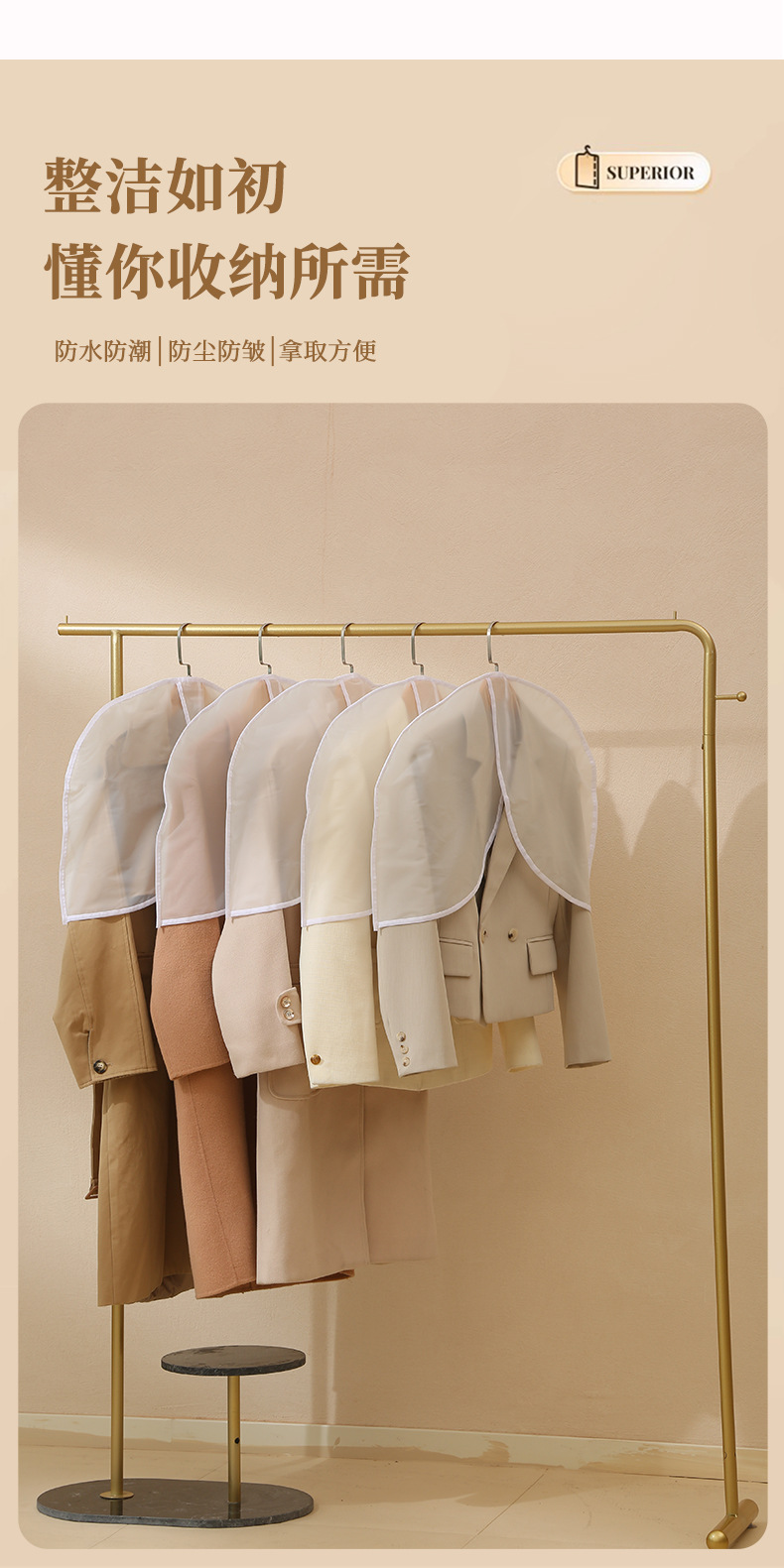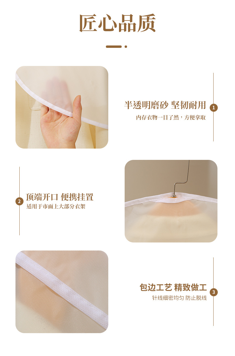 cubierta de ropa a prueba de polvo de medio cuerpo, nuevo conjunto de trajes cortos caseros, cubierta de polvo esmerilada, bolsas de ropa a prueba de agua tridimensionales