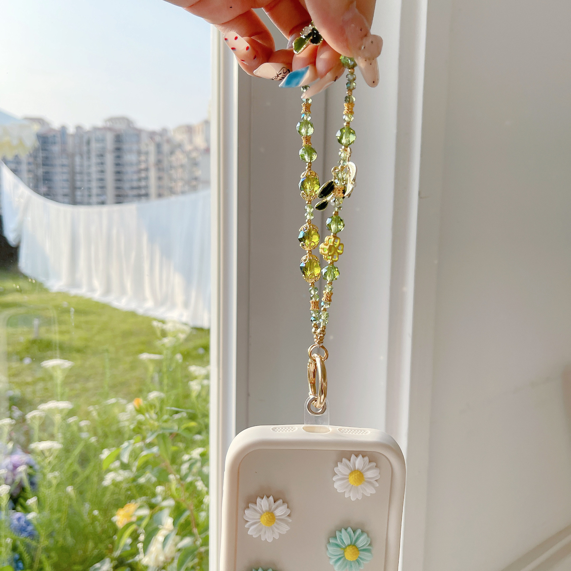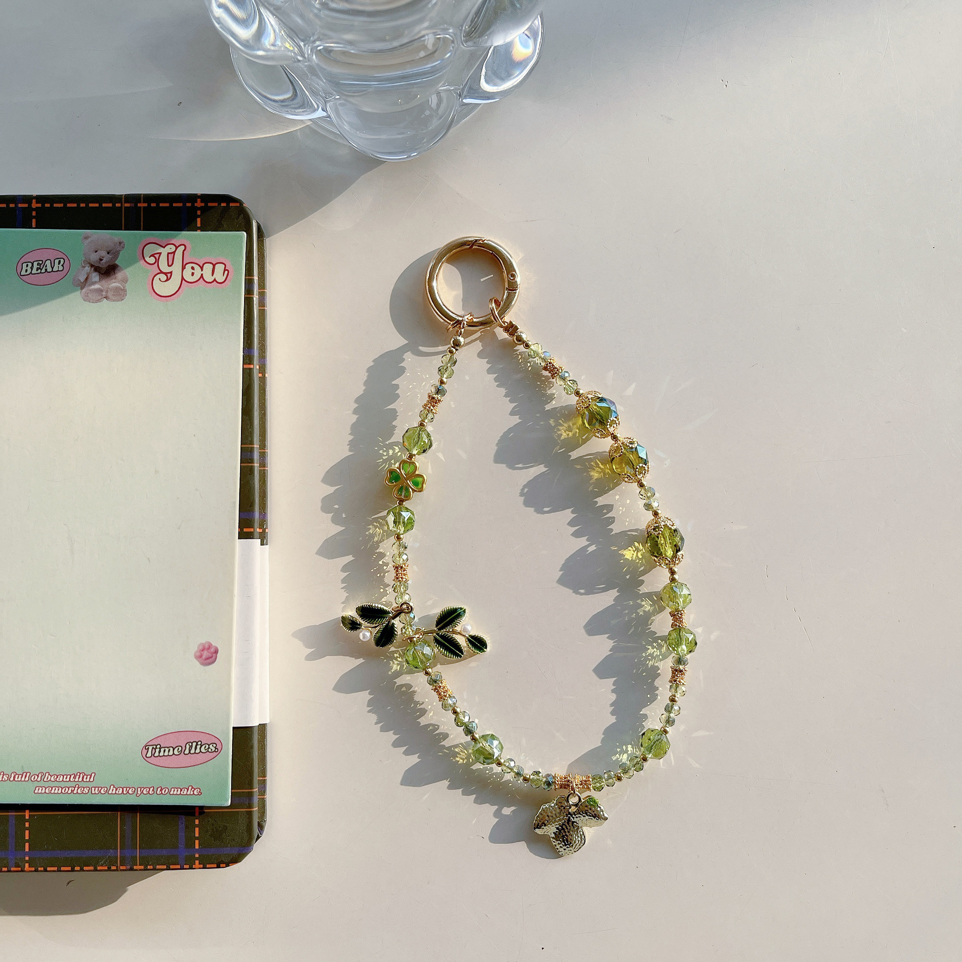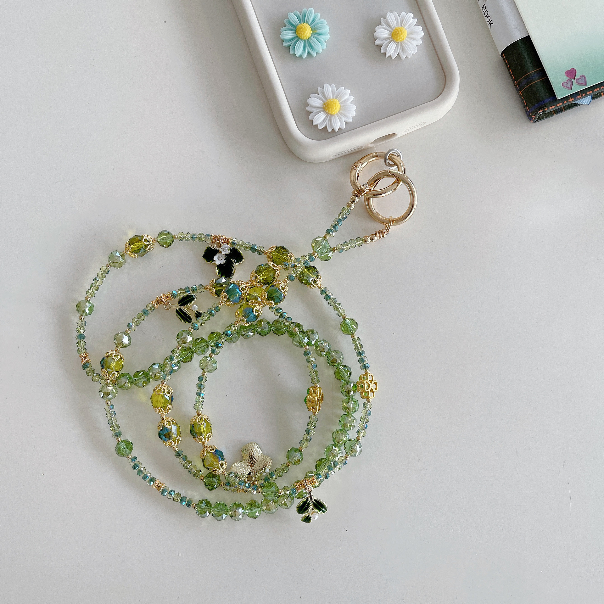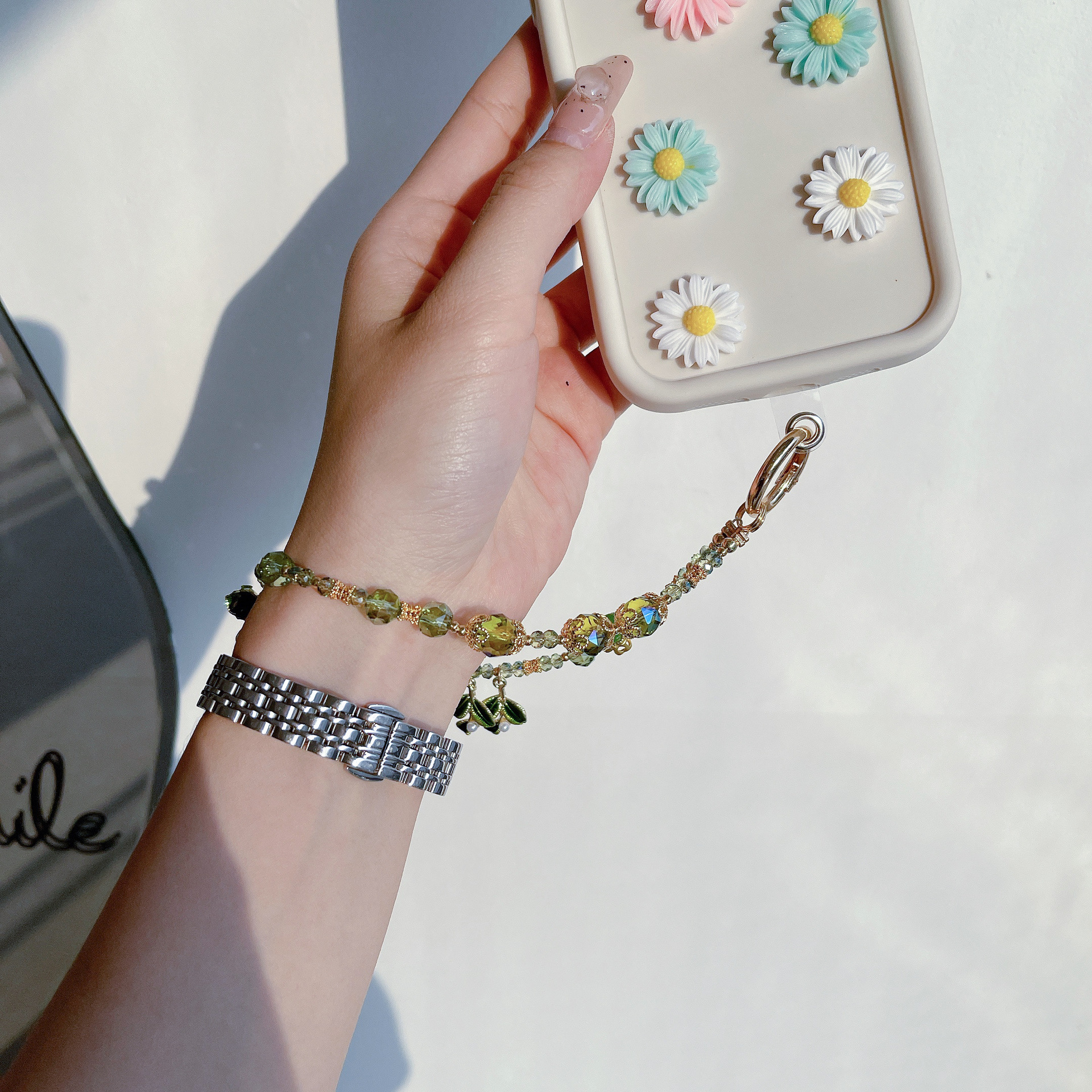 Boutique hecho a mano de alta gama para teléfono móvil cadena larga de hoja verde de aleación cordón de teléfono móvil de moda colgante de mensajero largo
