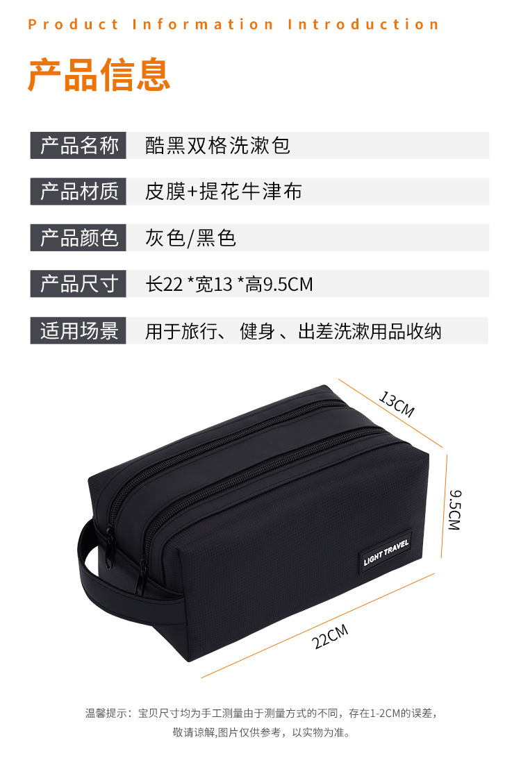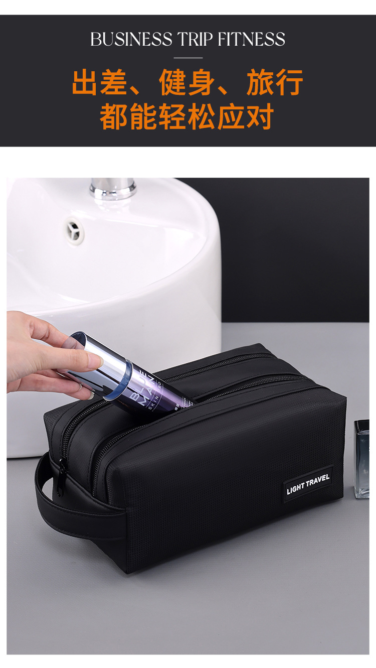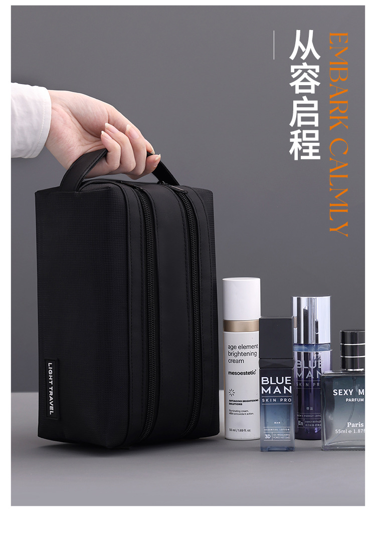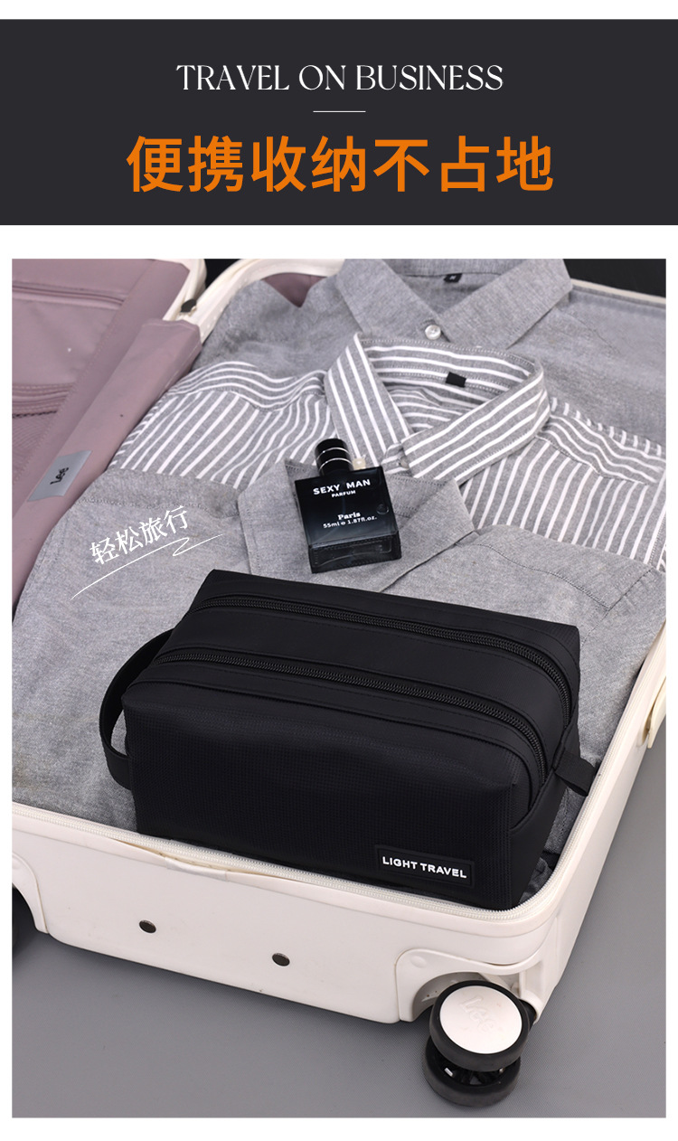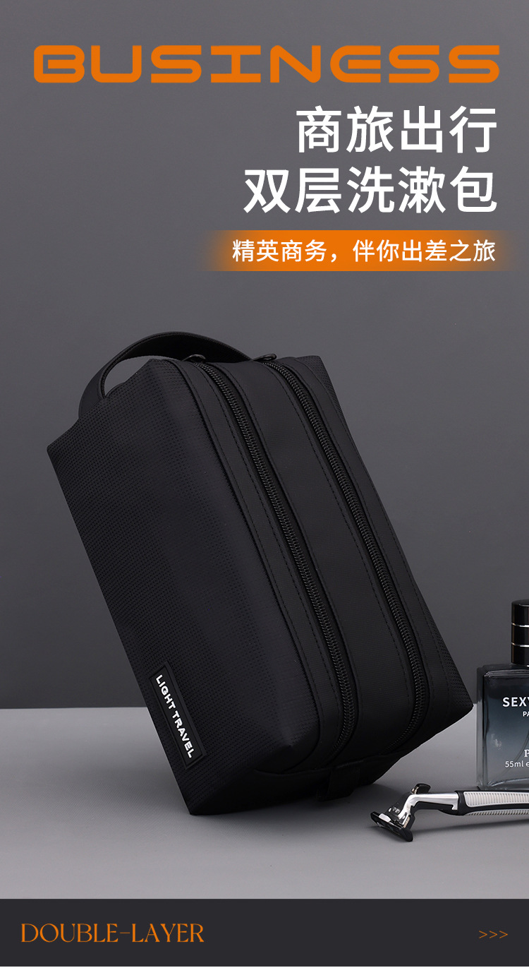 Bolsa de lavado simple con doble cremallera separada en seco y húmedo, bolsa de almacenamiento de lavado portátil para hombres de viaje de negocios de gran capacidad