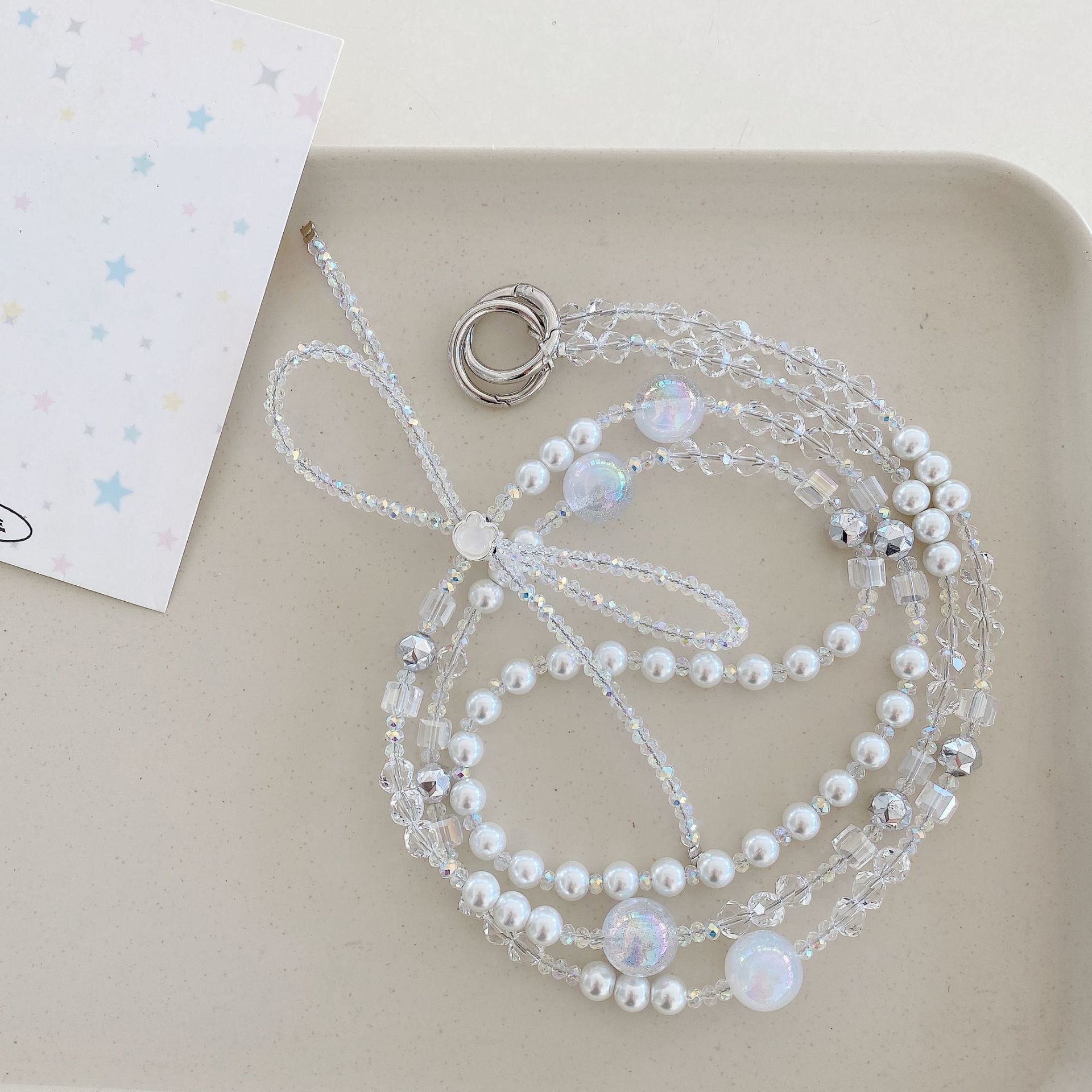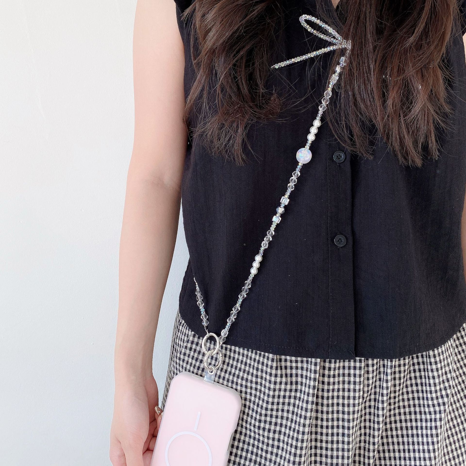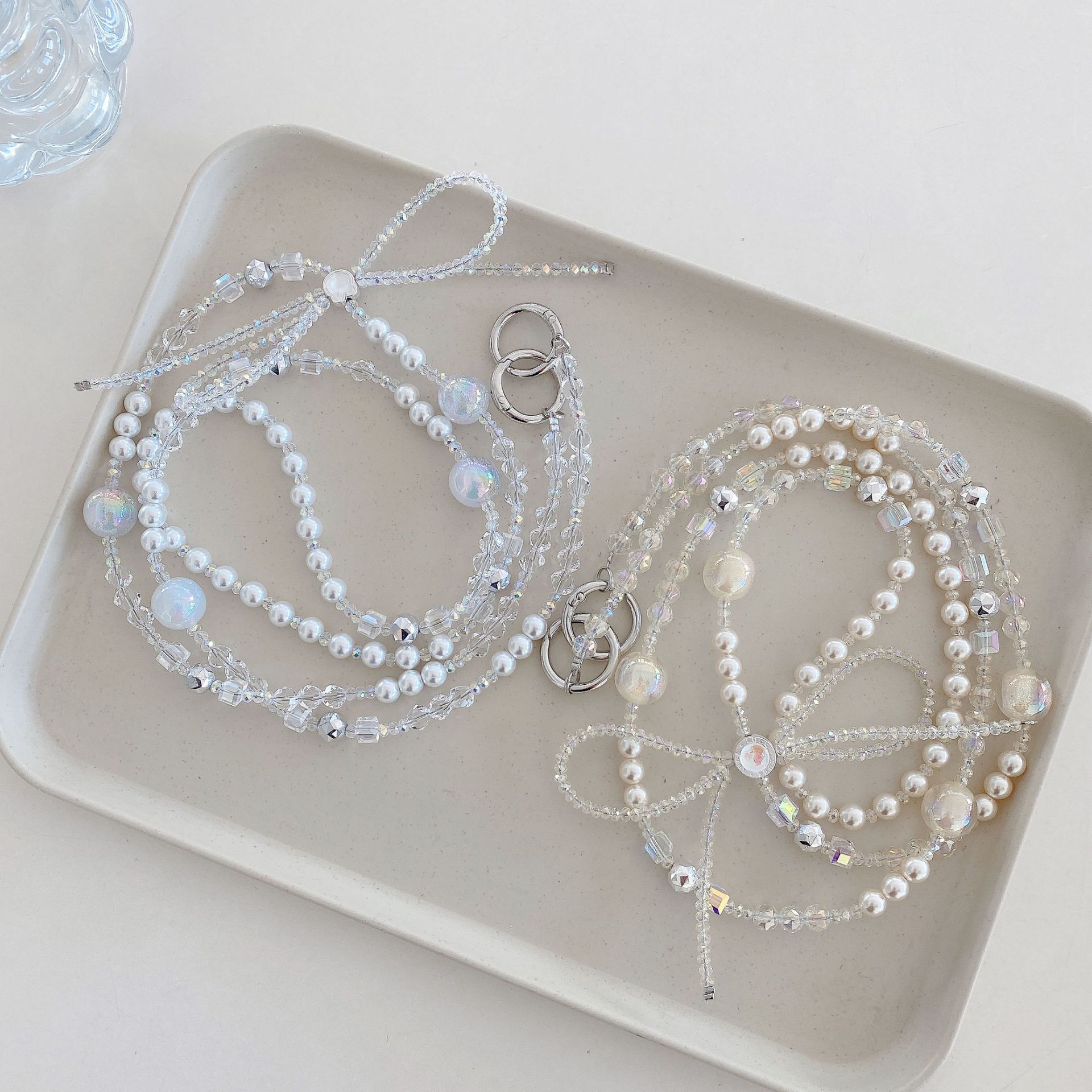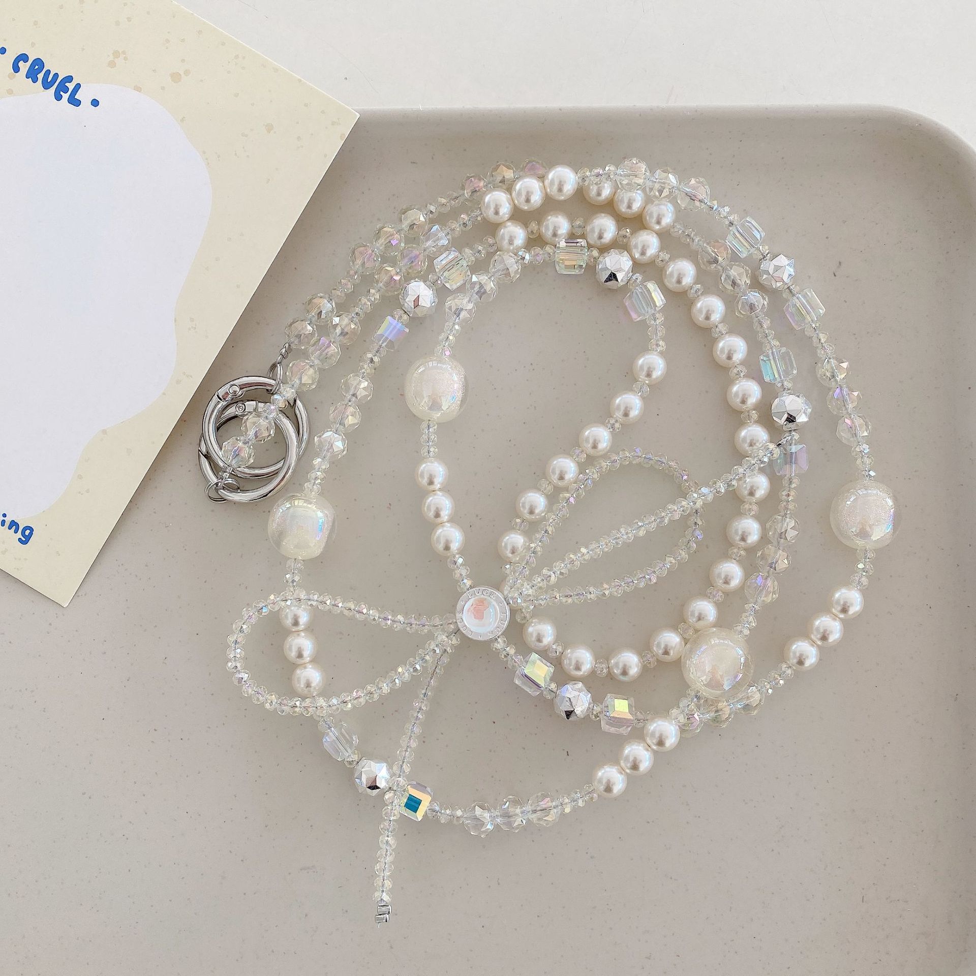 Boutique hecho a mano cadena colgante de alta gama arco fresco de cuatro colores cadena larga cordón de teléfono móvil de moda mensajero largo/colgante