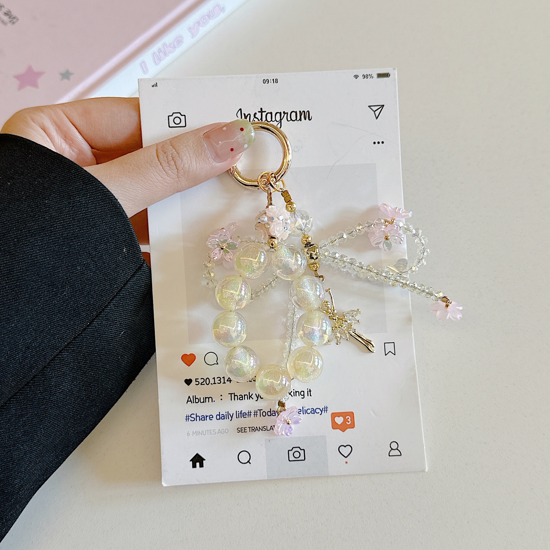 Cadena de colgar para teléfono móvil de alta gama hecha a mano boutique, cadena de colgar para niña de ballet, cordón para teléfono móvil de moda, cadena/colgante corto