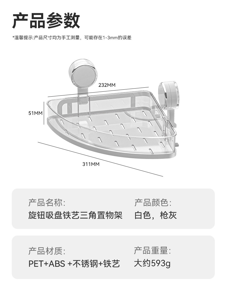 | Modelo | Estante triangular de hierro forjado con ventosa de perilla |