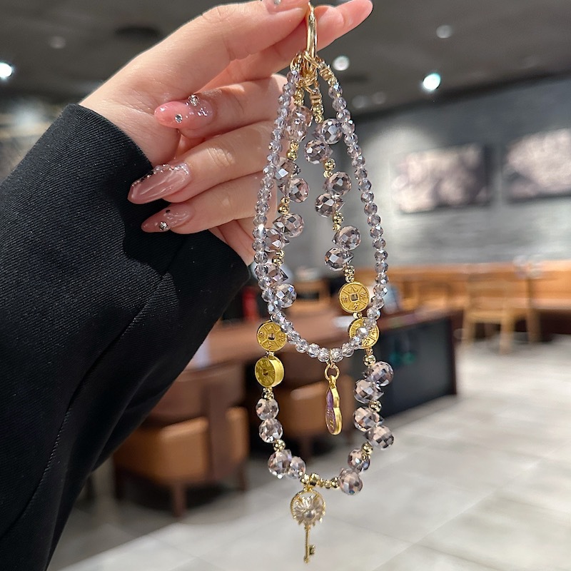 Boutique hecho a mano de alta gama teléfono móvil cadena colgante mariposa cuentas de vidrio cadena larga cordón de teléfono móvil de moda colgante de mensajero largo