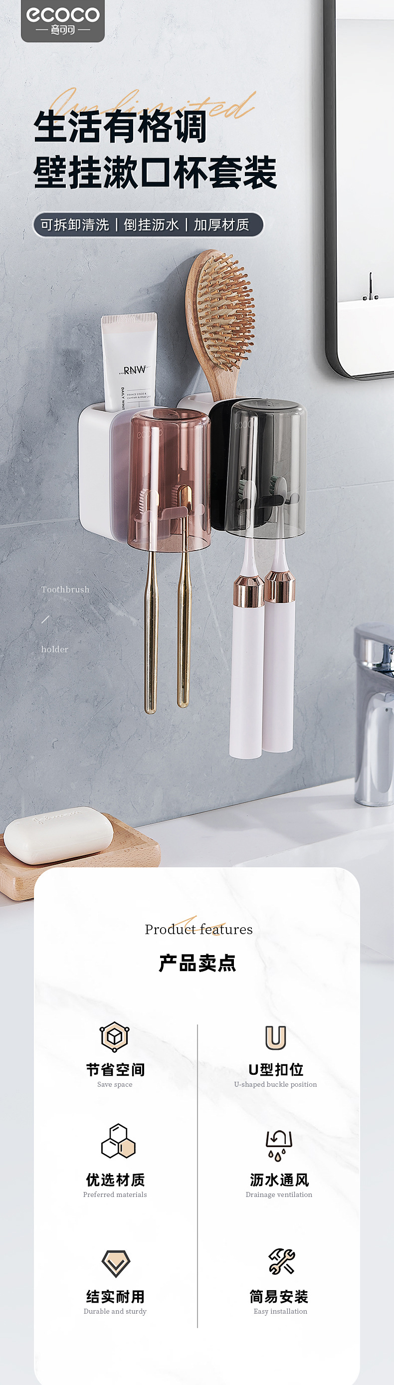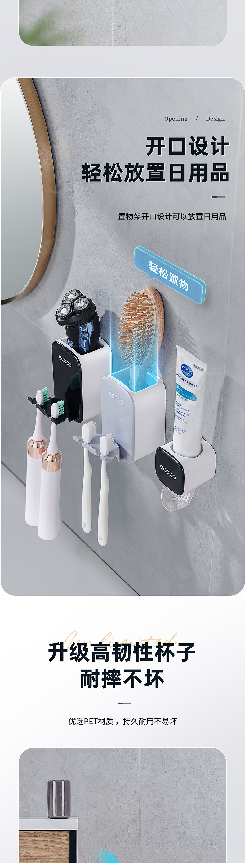 | Color | Estante de cepillo de dientes negro + taza negra, estante de cepillo de dientes negro + taza rosa, estante de cepillo de dientes gris + taza negra, estante de cepillo de dientes gris + taza rosa |