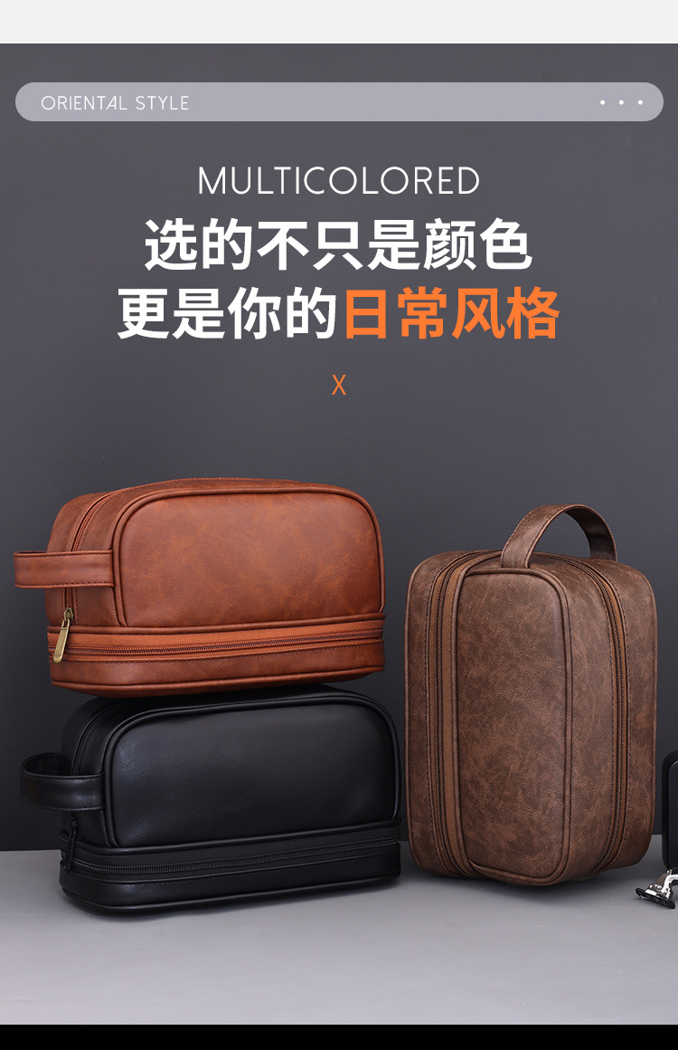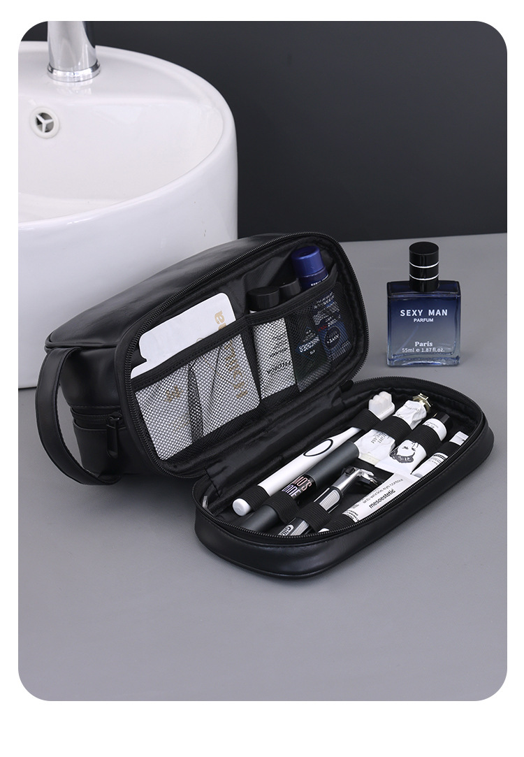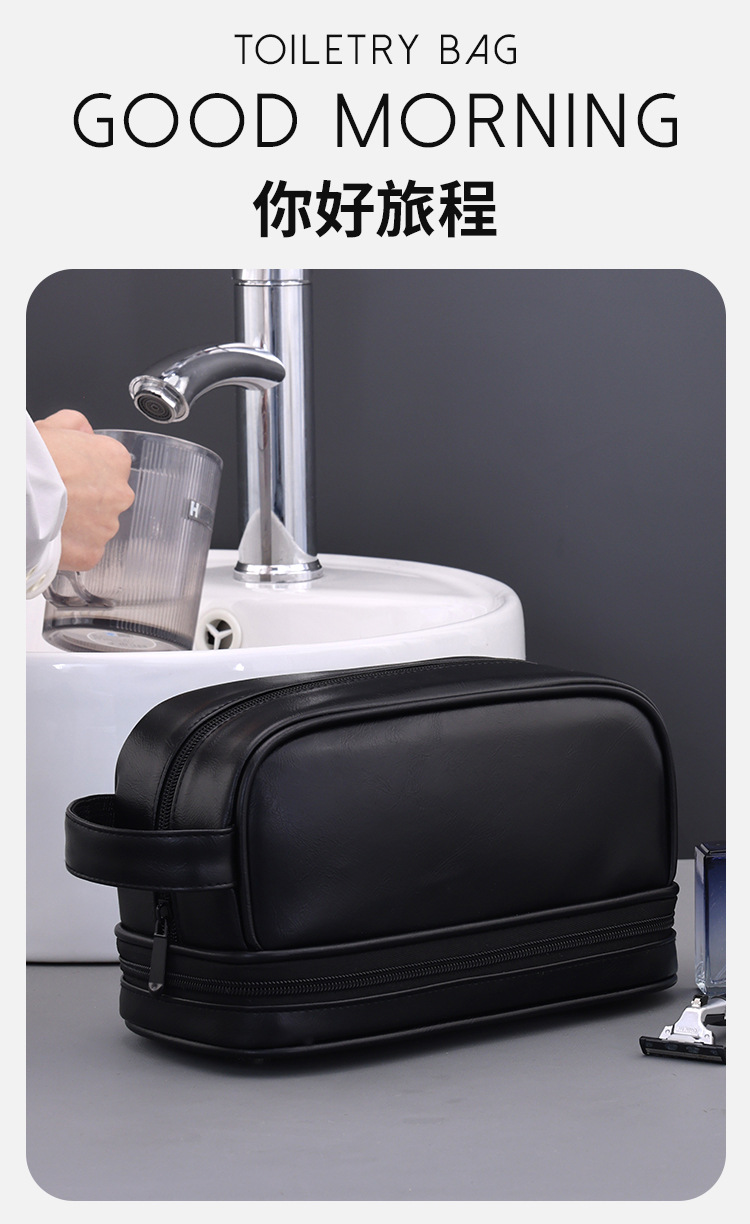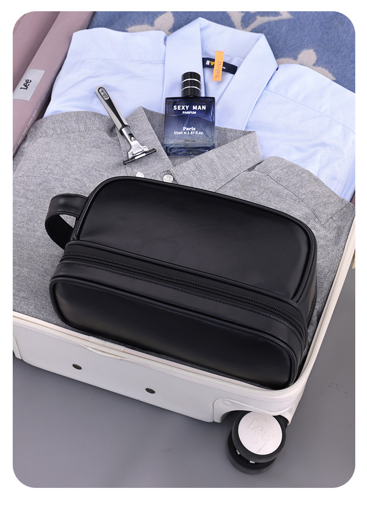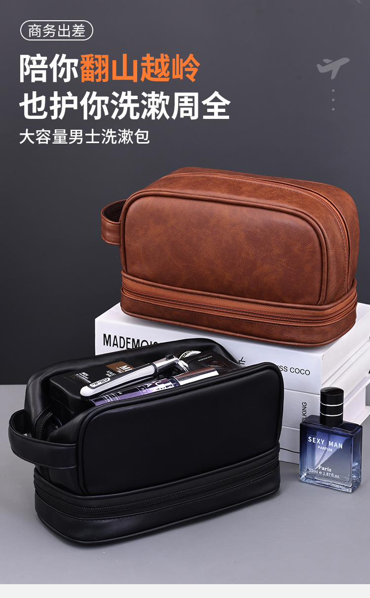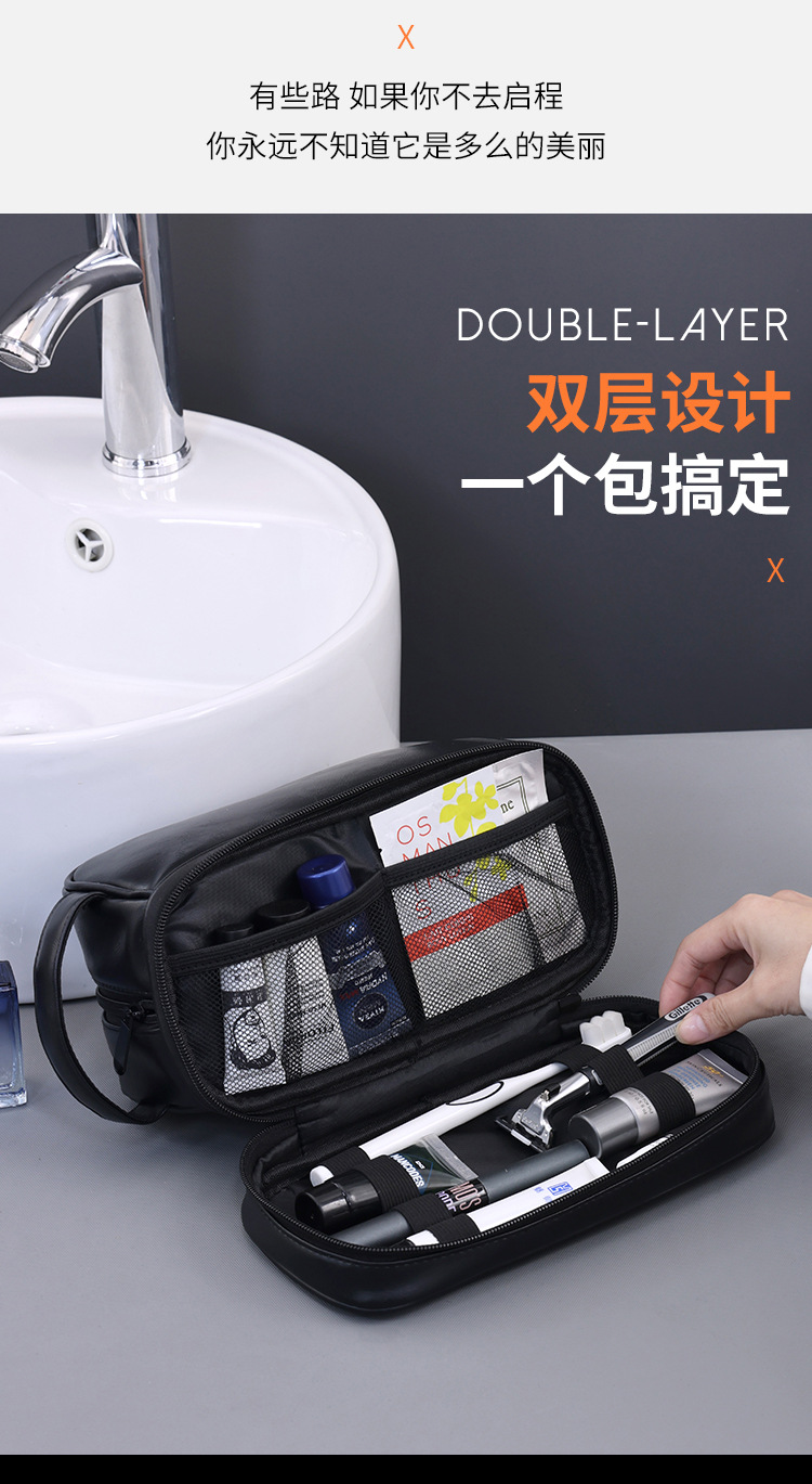 Nuevos productos transfronterizos pu doble bolsa de lavado para hombres viajes de negocios artículos de viaje paquete de lavado bolsa de almacenamiento de cosméticos