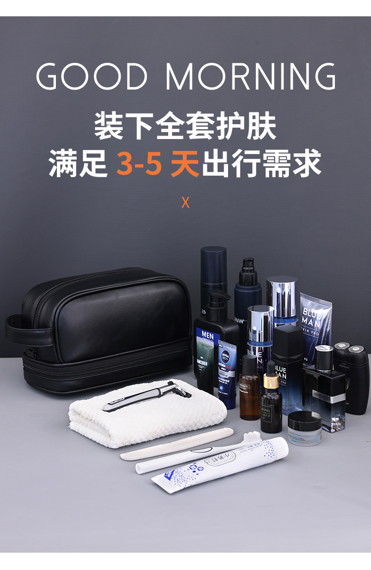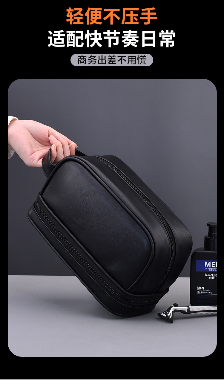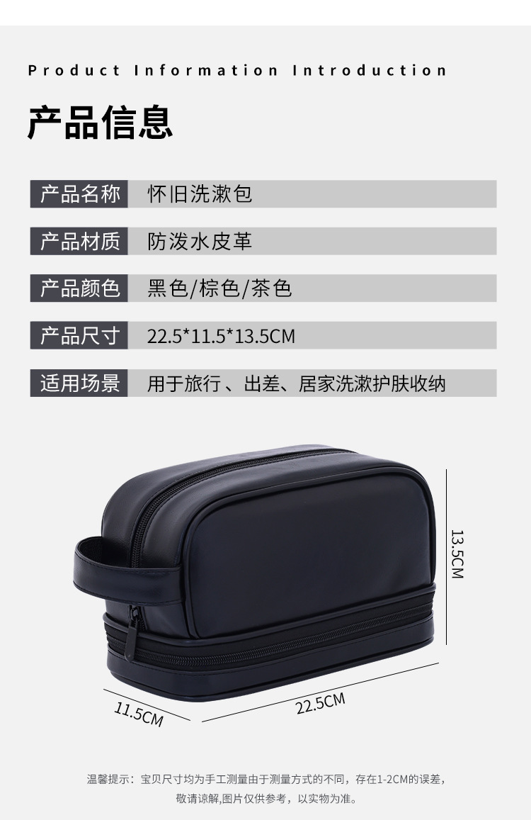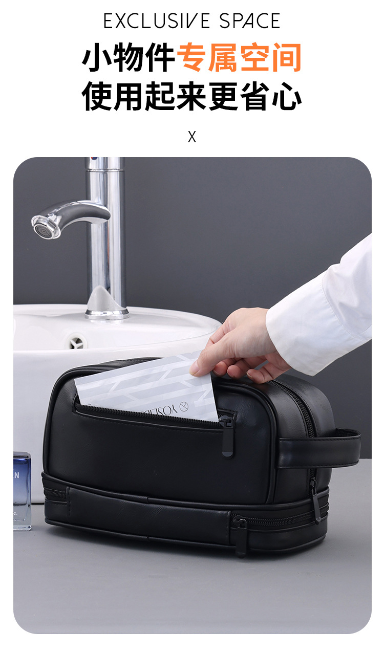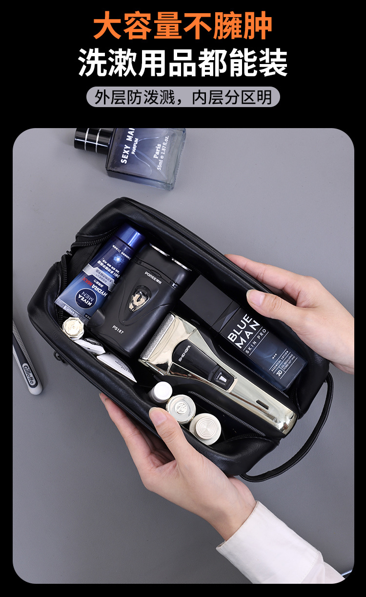 Nuevos productos transfronterizos pu doble bolsa de lavado para hombres viajes de negocios artículos de viaje paquete de lavado bolsa de almacenamiento de cosméticos