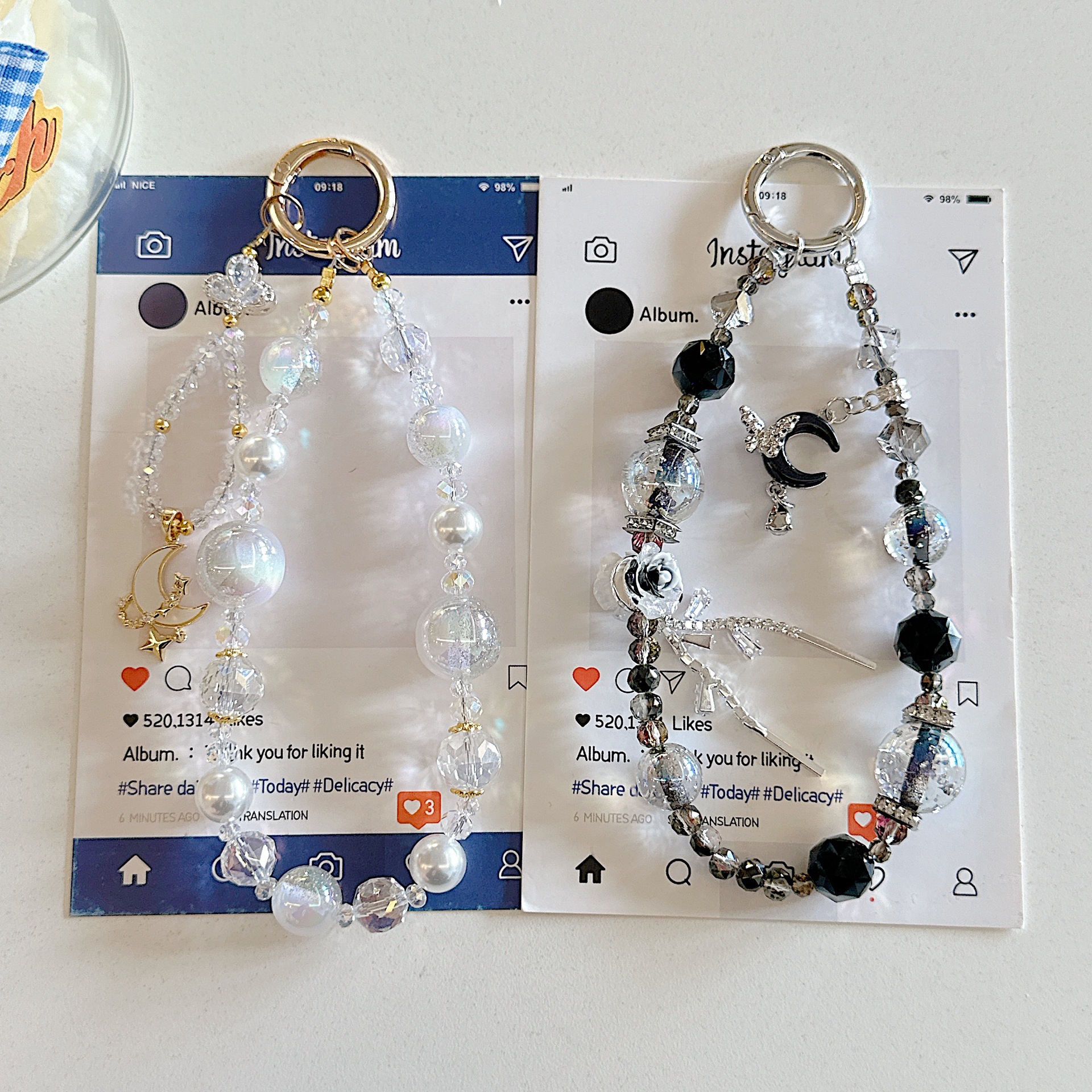 Cadena de teléfono móvil de alta gama hecha a mano de boutique, cadena de pulsera de luna de cielo estrellado, cordón de teléfono móvil de moda, mochila/colgante corto