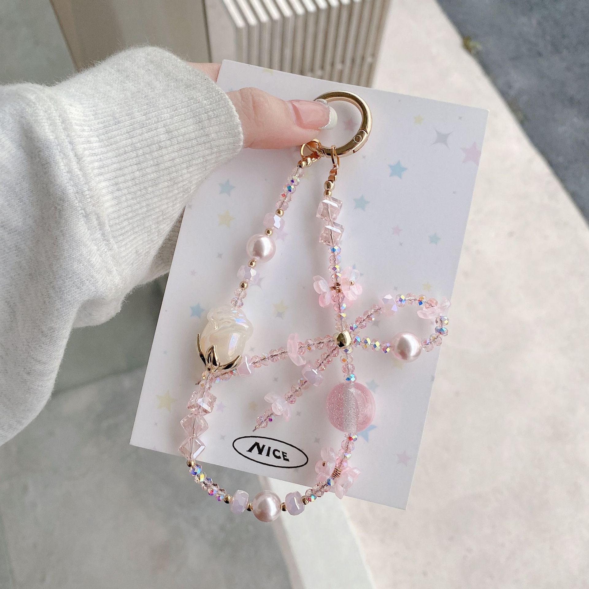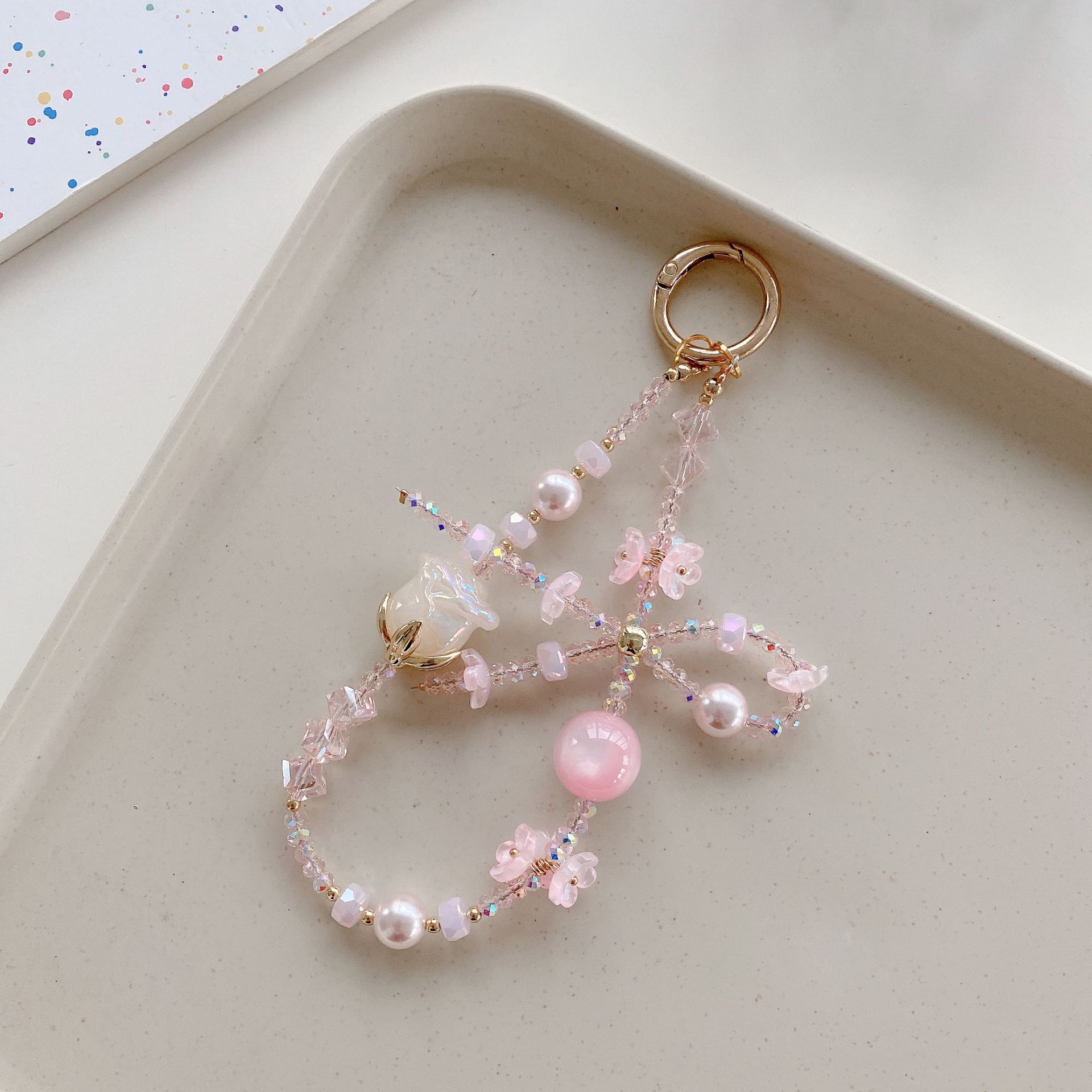Boutique hecho a mano de alta gama teléfono móvil cadena colgante mujer tulipán rosa cadena larga cordón de teléfono móvil de moda colgante de mensajero largo