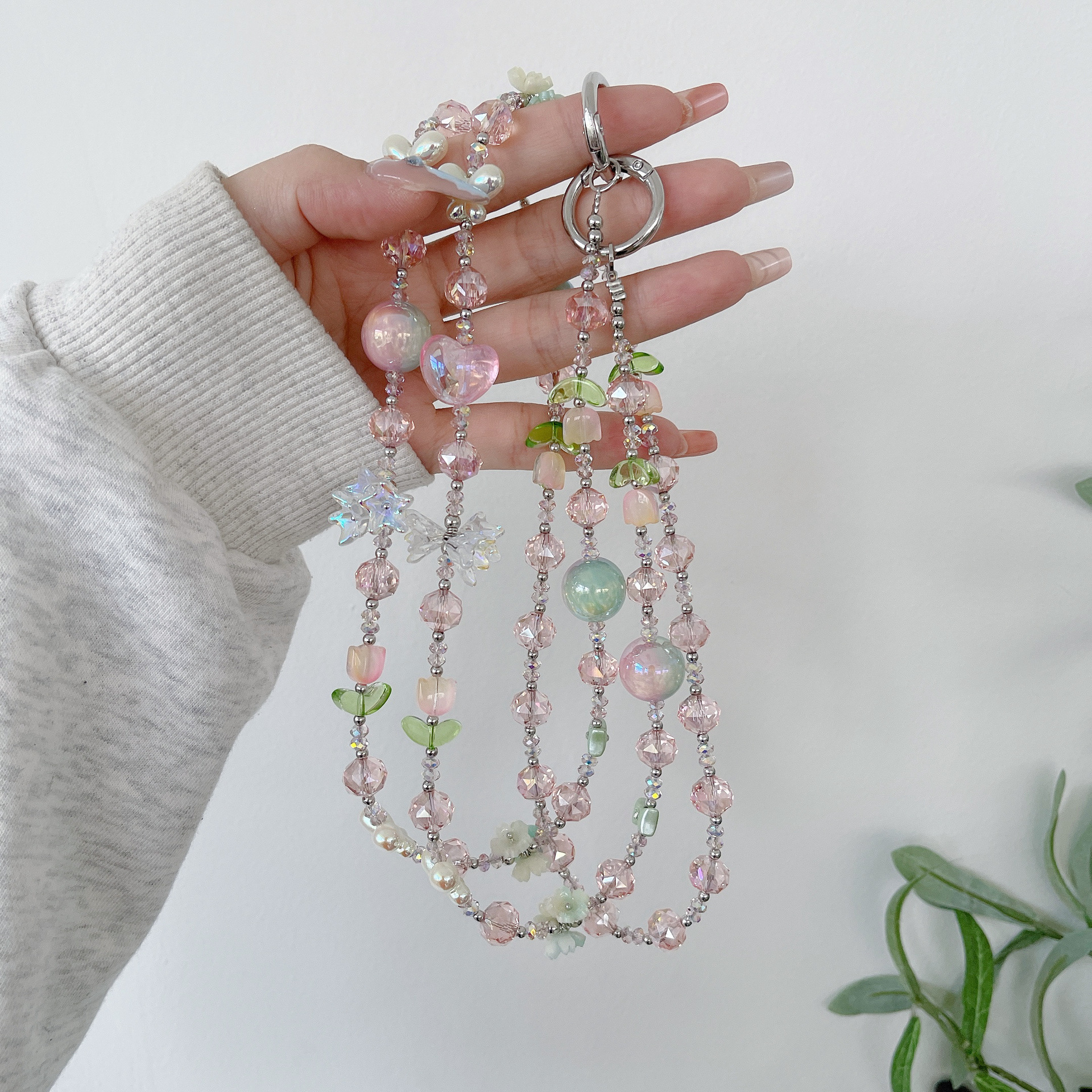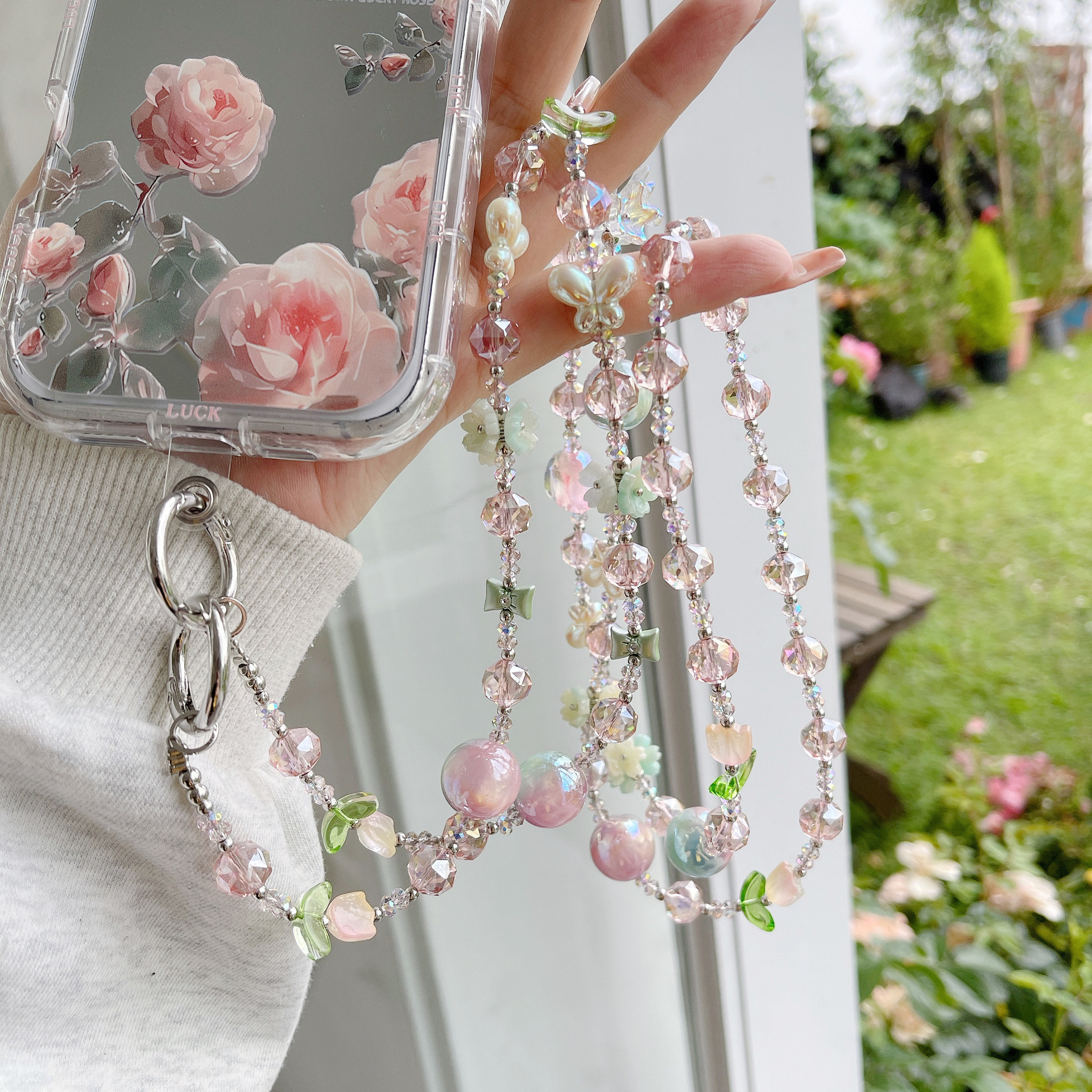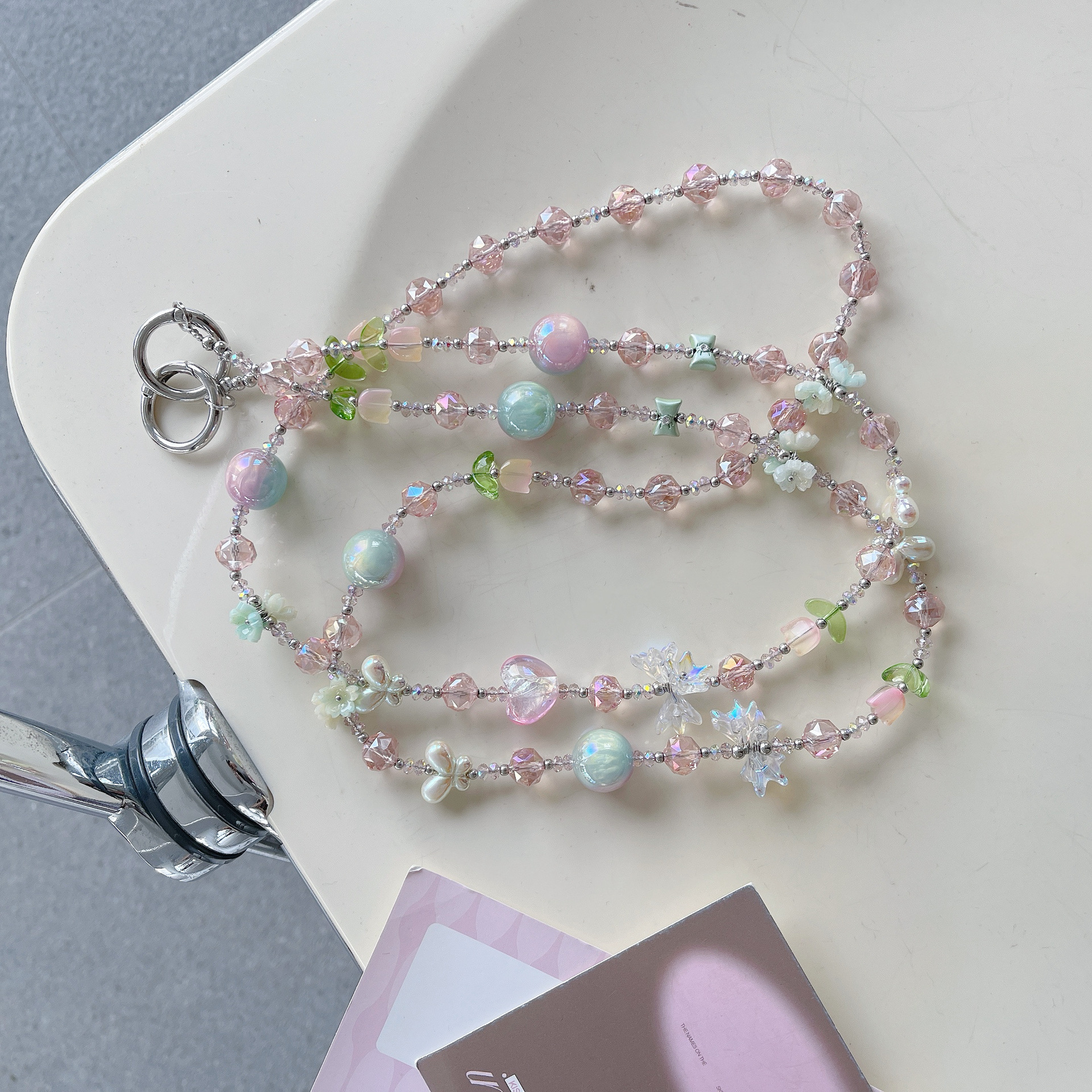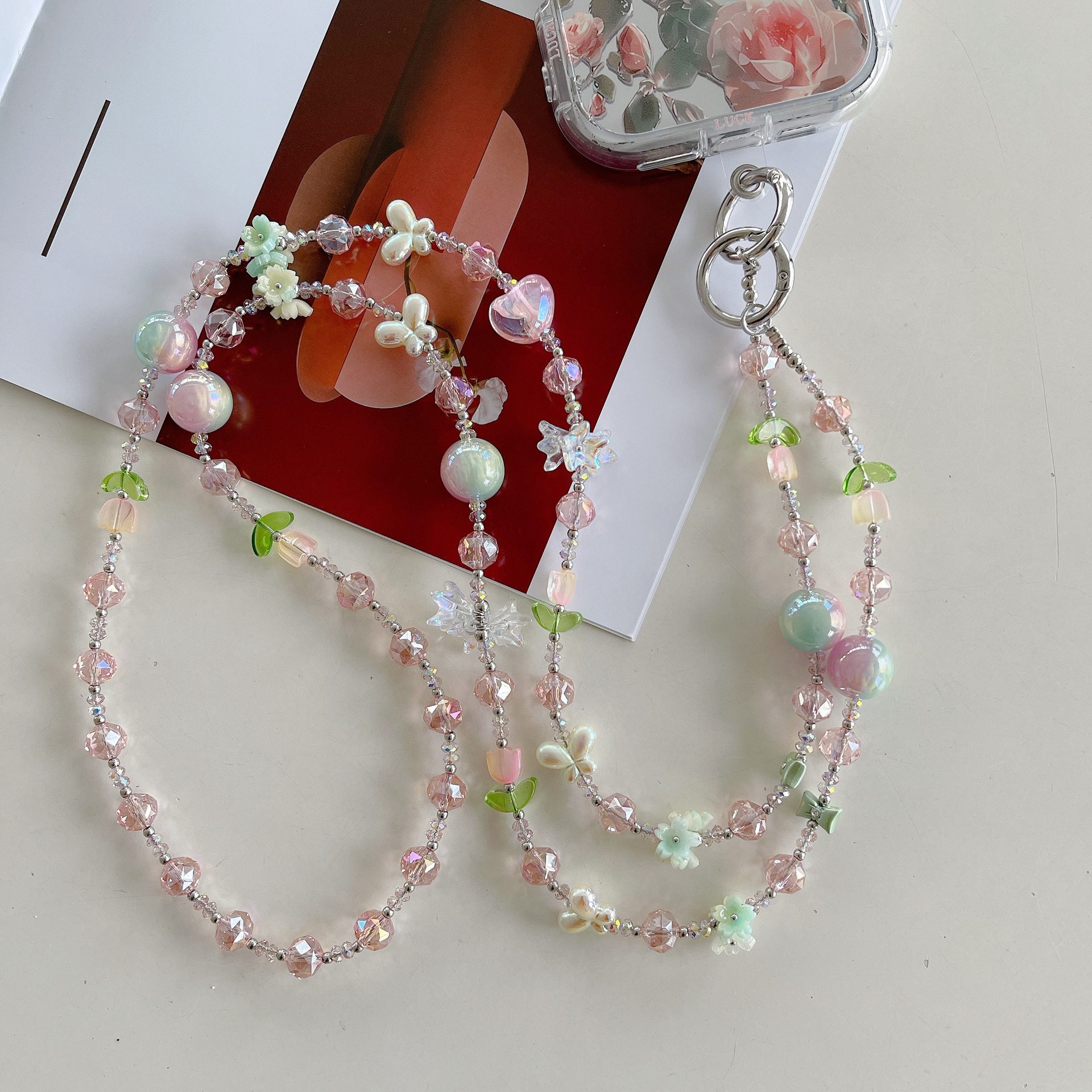 Cadena de teléfono móvil de alta gama hecha a mano boutique, cadena larga de cristal colorido femenino, cordón de teléfono móvil de moda, colgante de mensajero largo