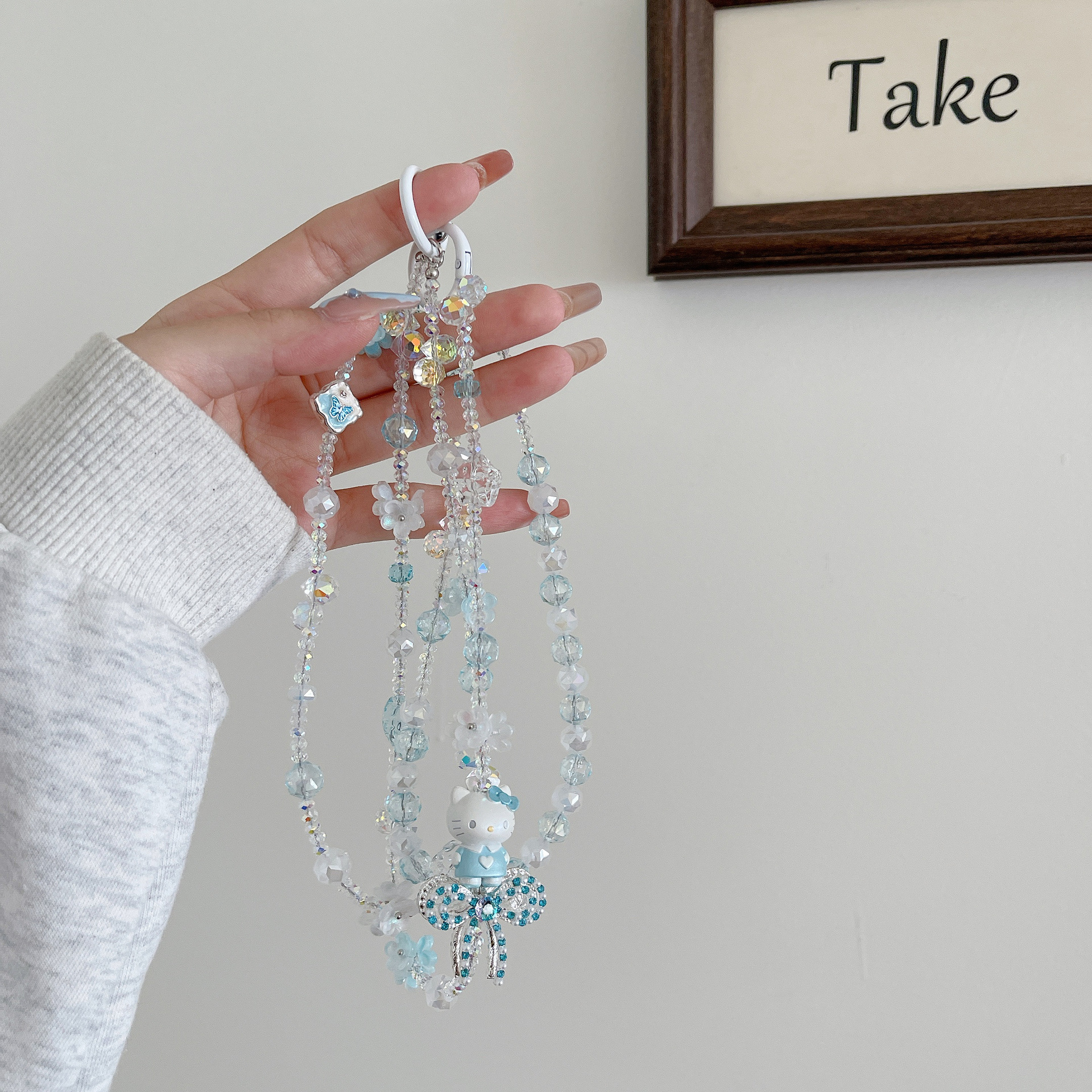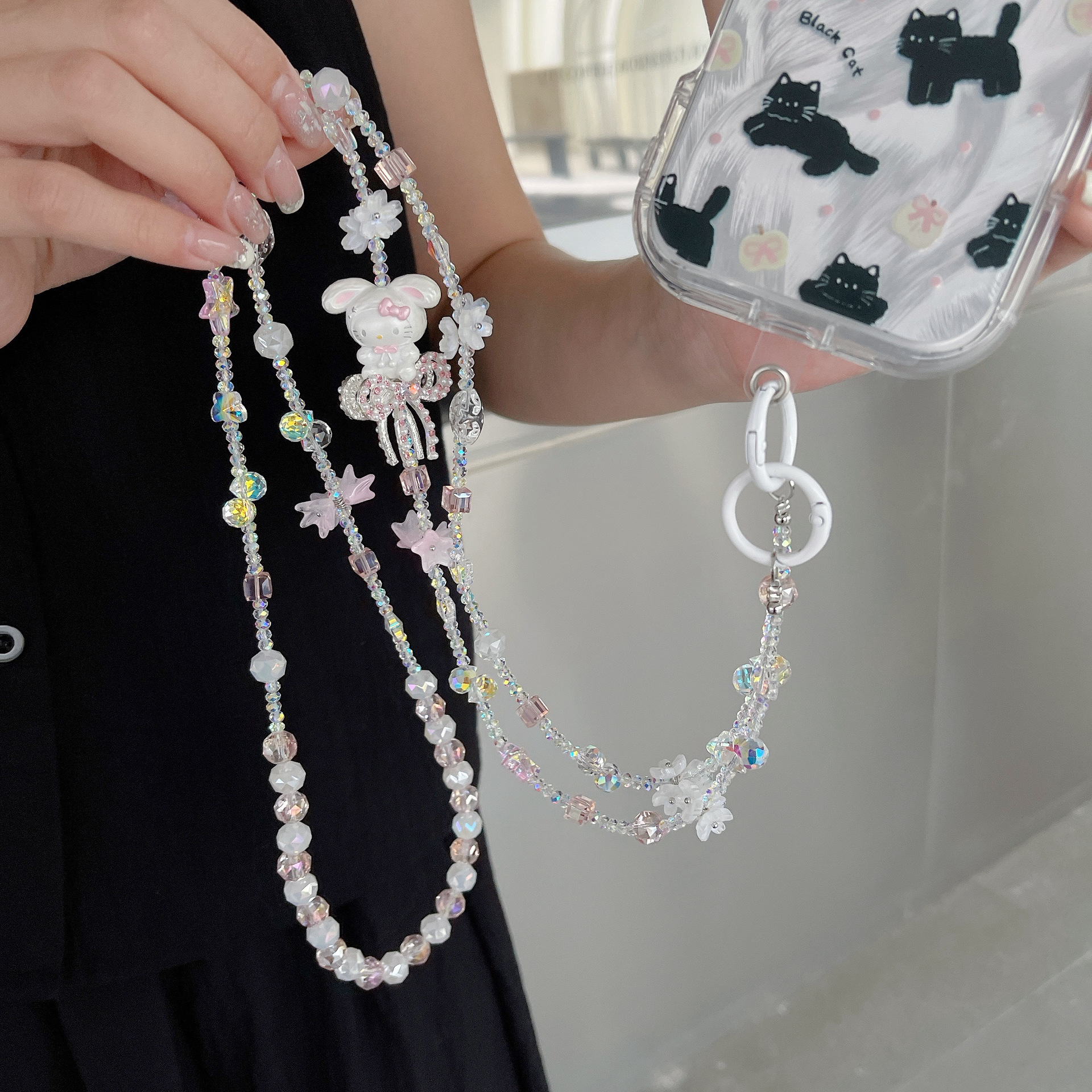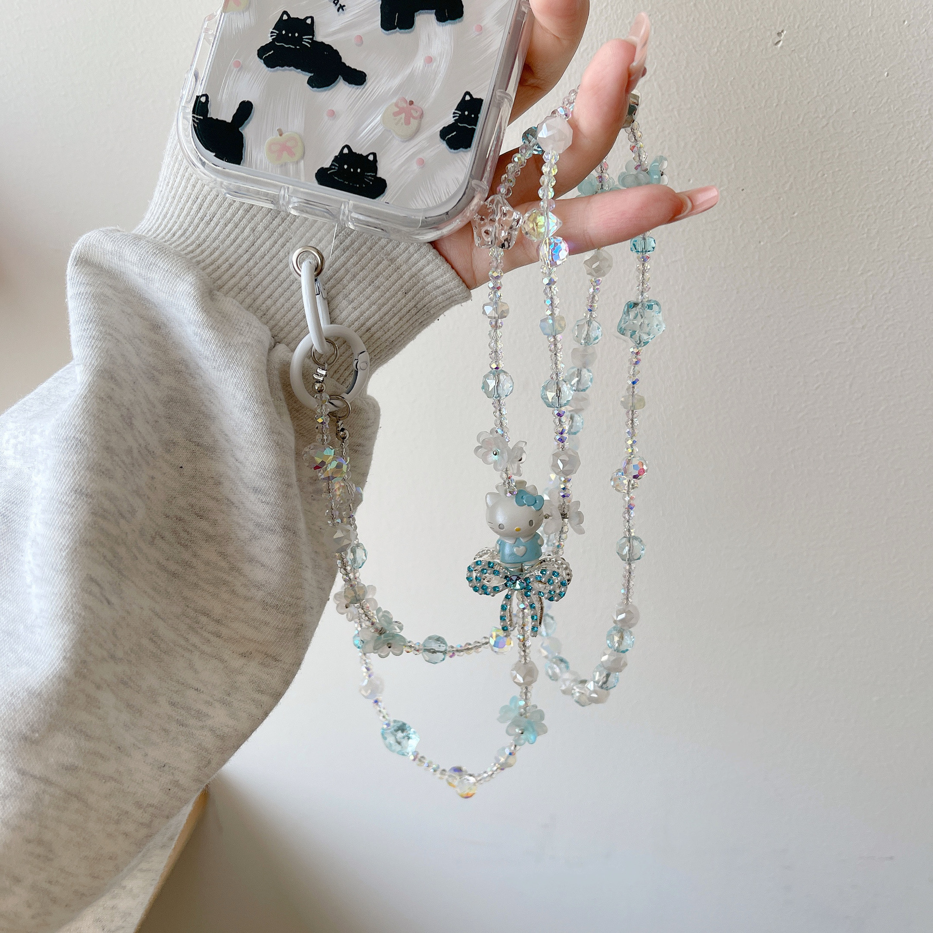 Boutique hecho a mano de alta gama para teléfono móvil cadena larga de gato KT lindo femenino cordón de teléfono móvil de moda colgante de mensajero largo
